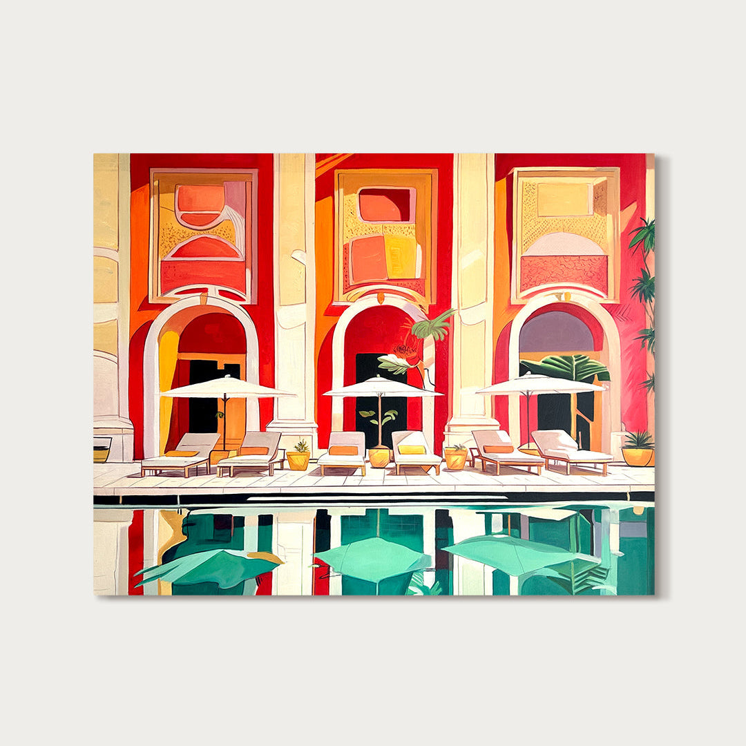In essence, Lilly Muth's paintings beckon us to venture into a different world—one where architecture, pools, geometry, nature, and a kaleidoscope of colors converge to create a captivating dreamscape that transcends the ordinary and invites us to explore the boundless realms of artistic fantasy.
