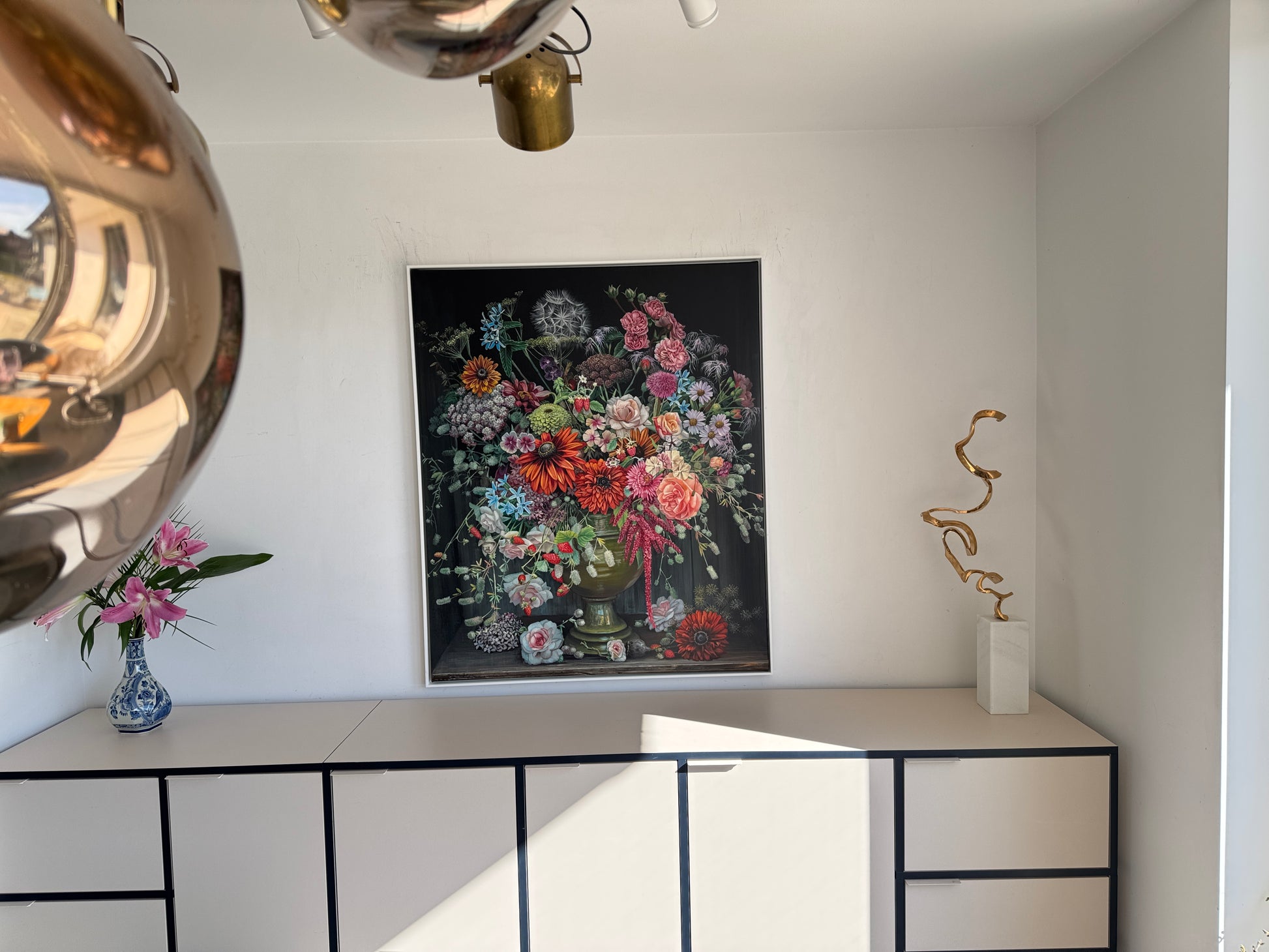 In her artistic process, Husslein encapsulates the transient ecstasy of a fleeting moment, often when flowers are resplendent in full bloom. Her canvases frequently orchestrate an array of botanical species, harmoniously coexisting within a vase, transcending the boundaries of temporal accuracy. Rather than fixating on botanical fidelity, her oeuvres spotlight the interplay of colors, illumination, textures, and intricate minutiae, which collectively imbue her works with an enigmatic allure, captivating the observer.