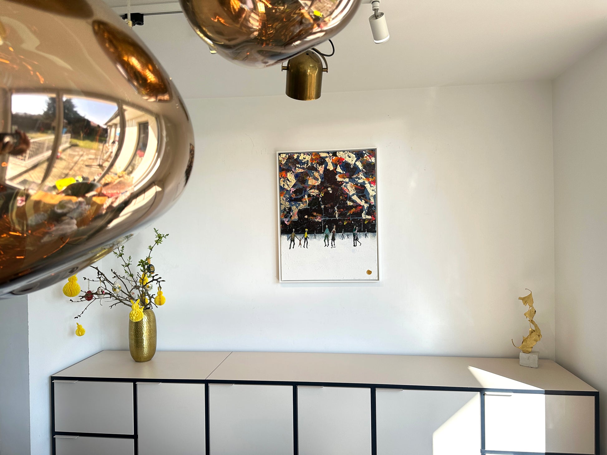 The gold changes depending on the light and makes for a warm contrast to the black, white and grey. Elegant in their color scheme Hormel's paintings are beautifully contemporary and unobtrusive, yet full of life, happiness and details.