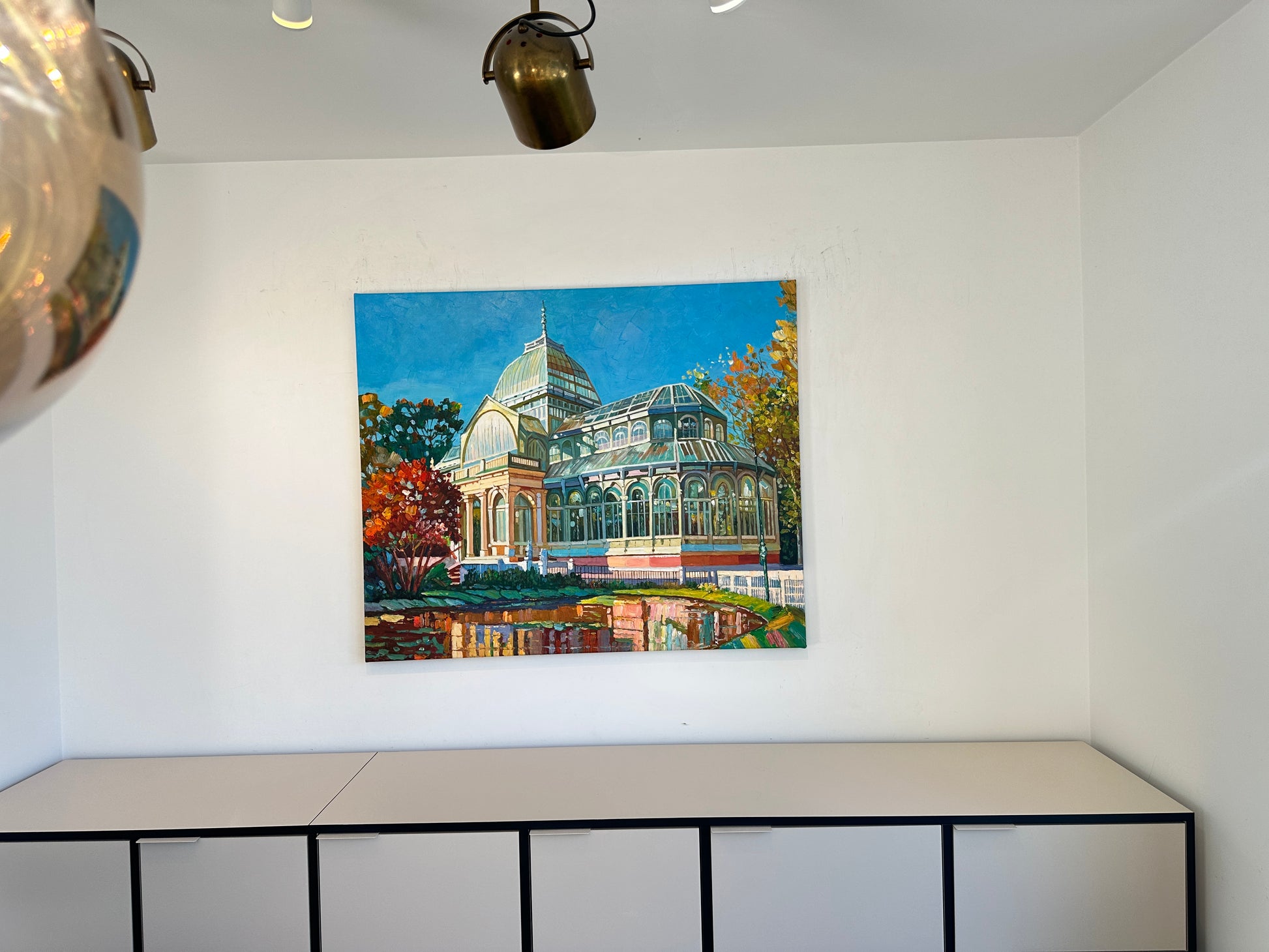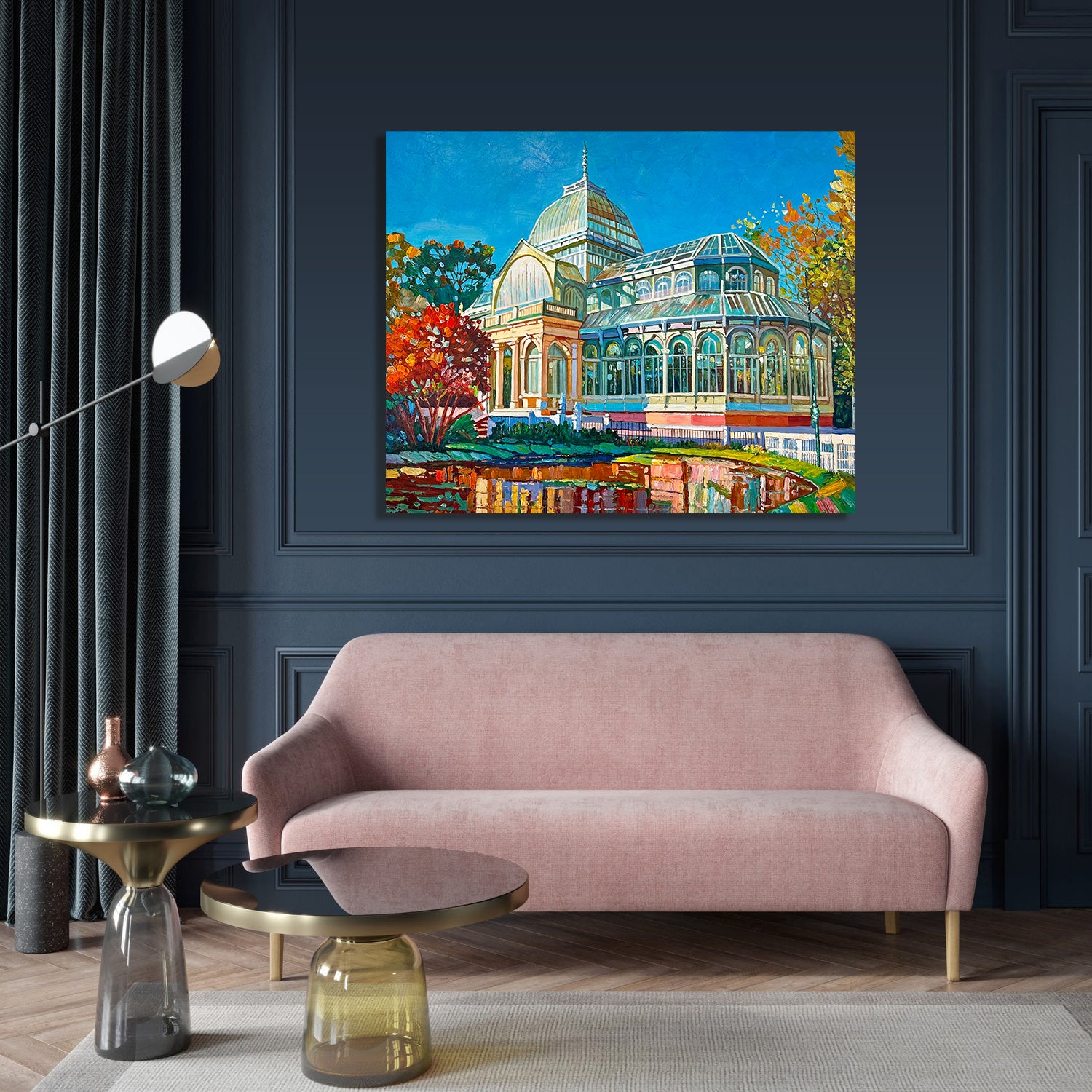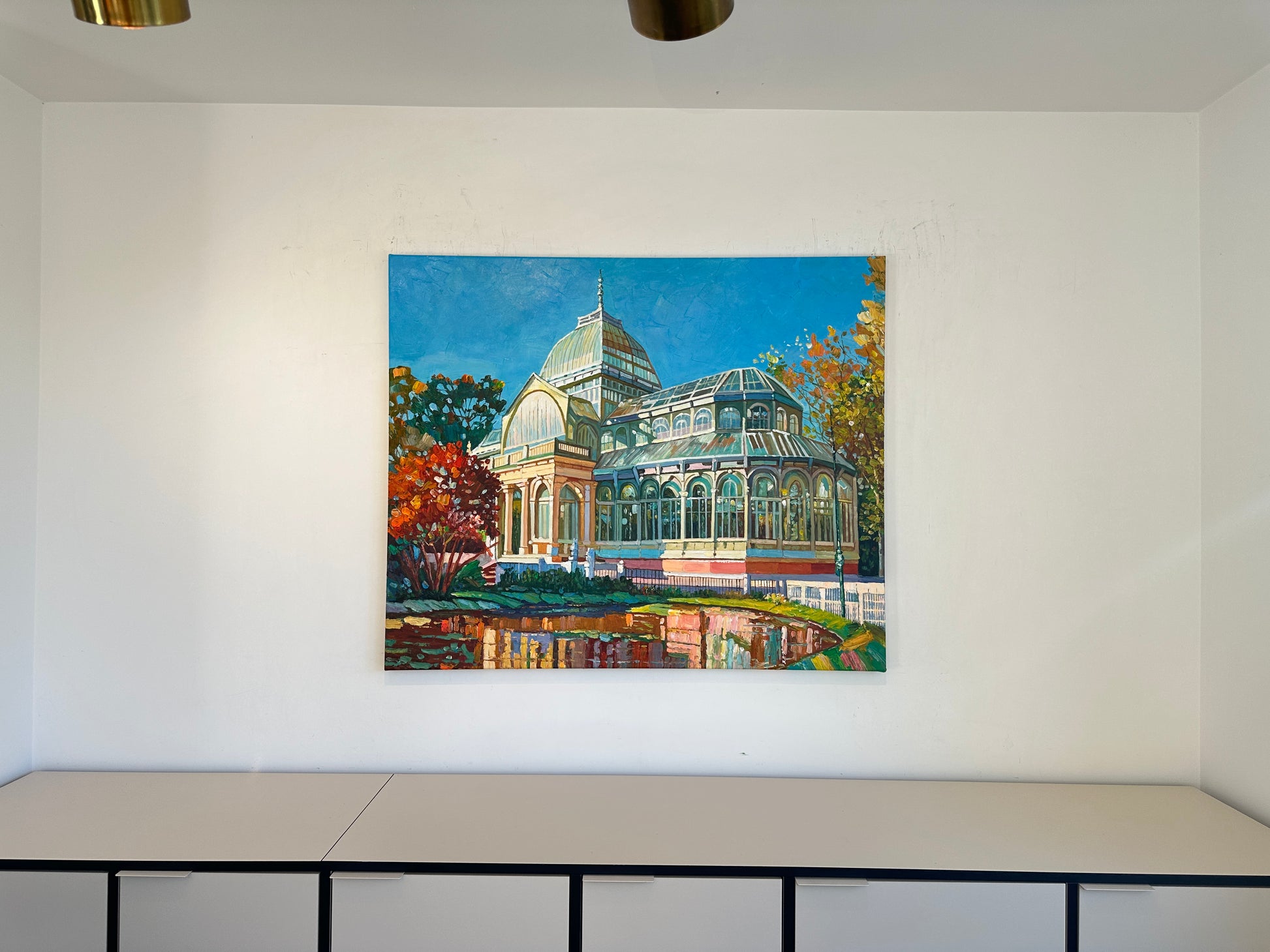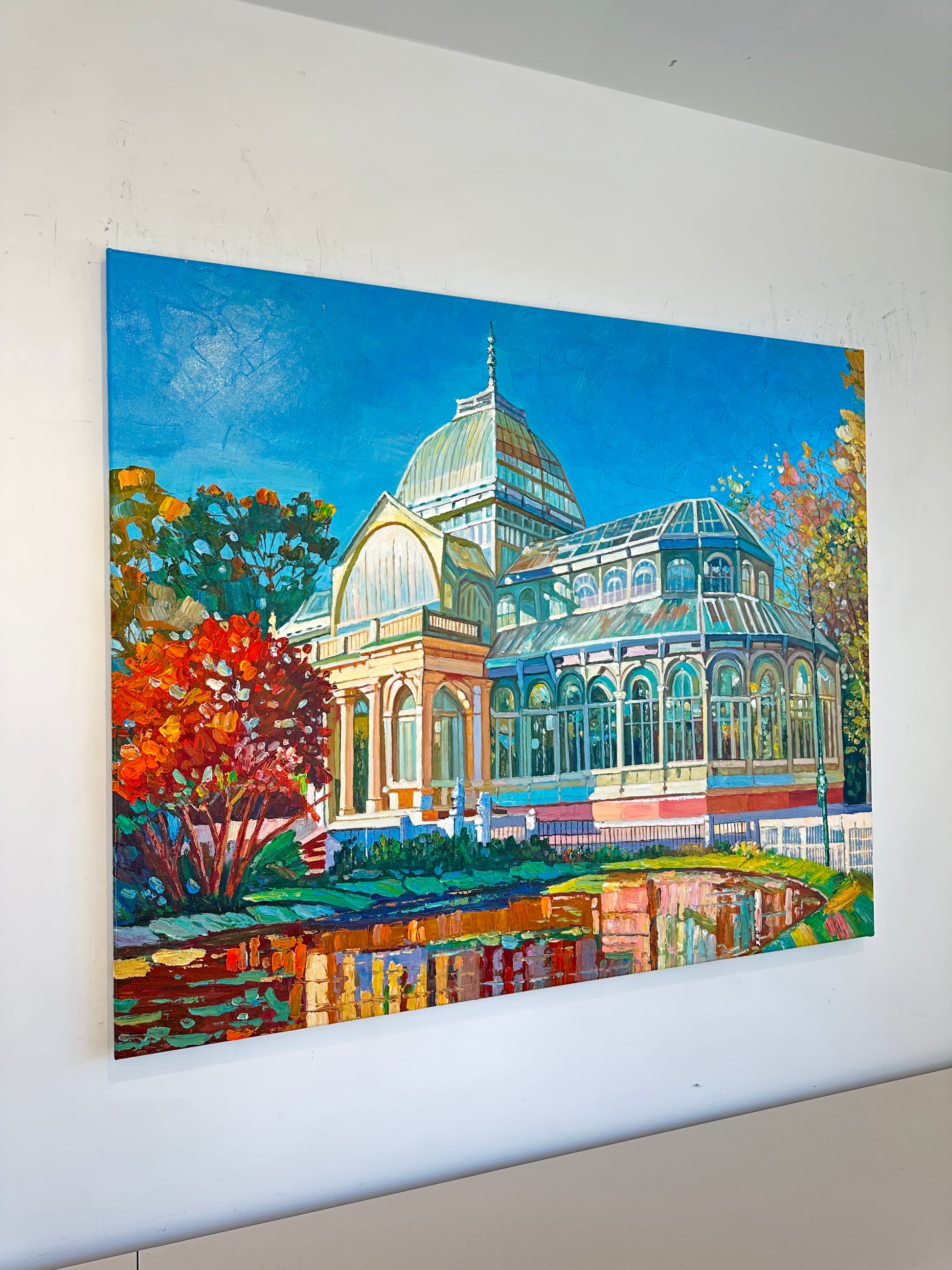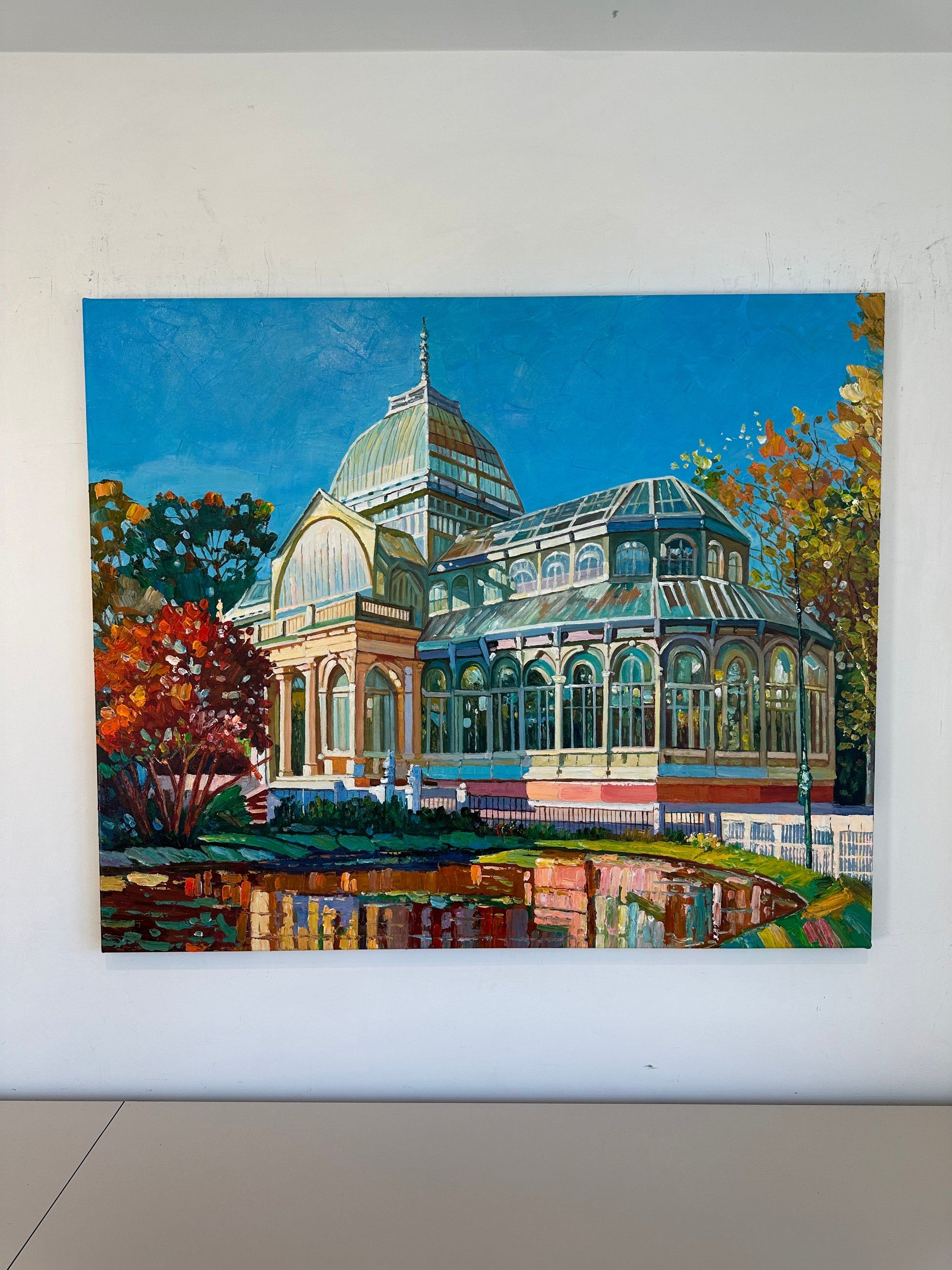 This one-of-a-kind oil painting is signed by Husslein on the back. The painting is ready to hang and includes professional wiring for easy installation. The sides are painted as a continuation of the front and it does not require framing.