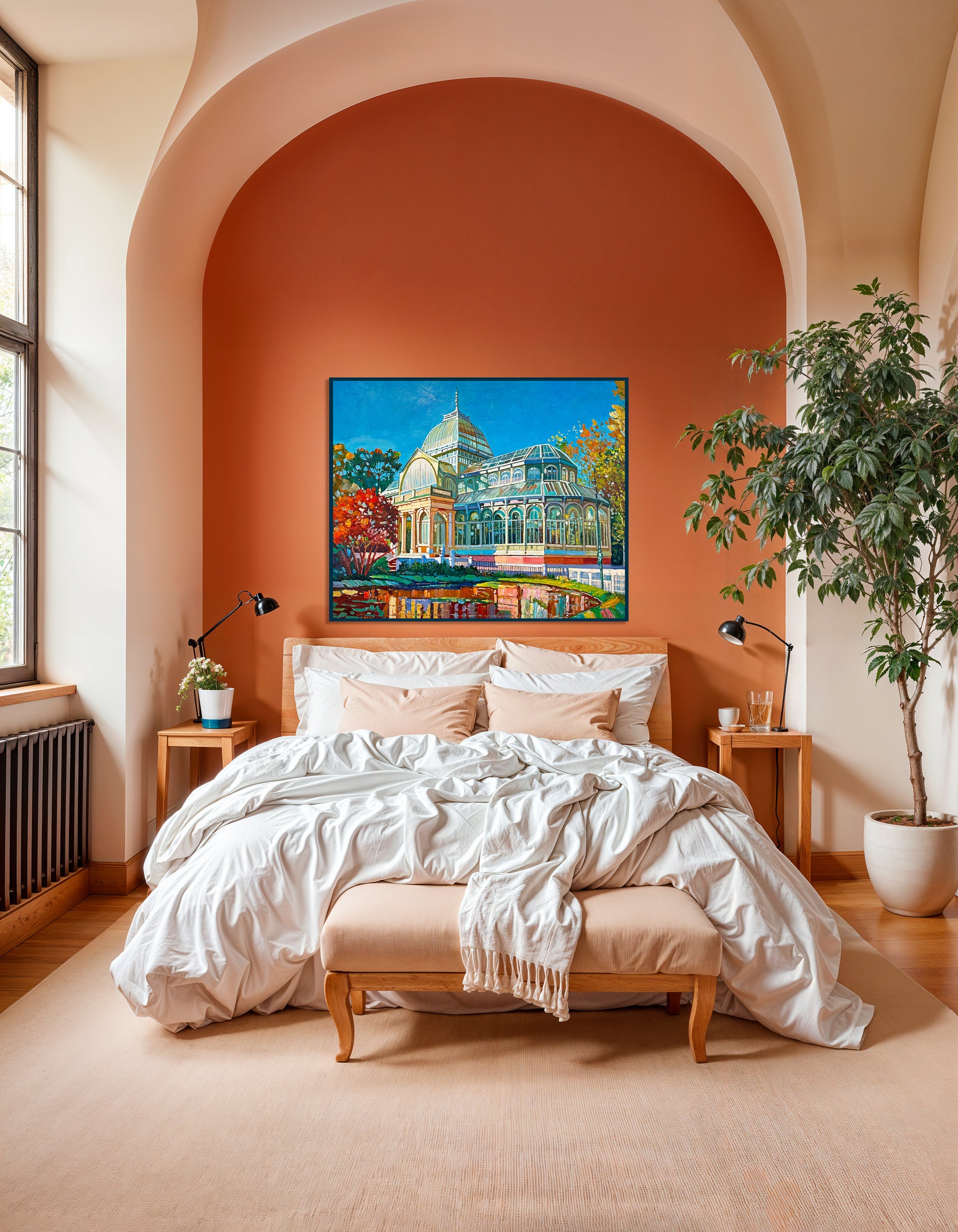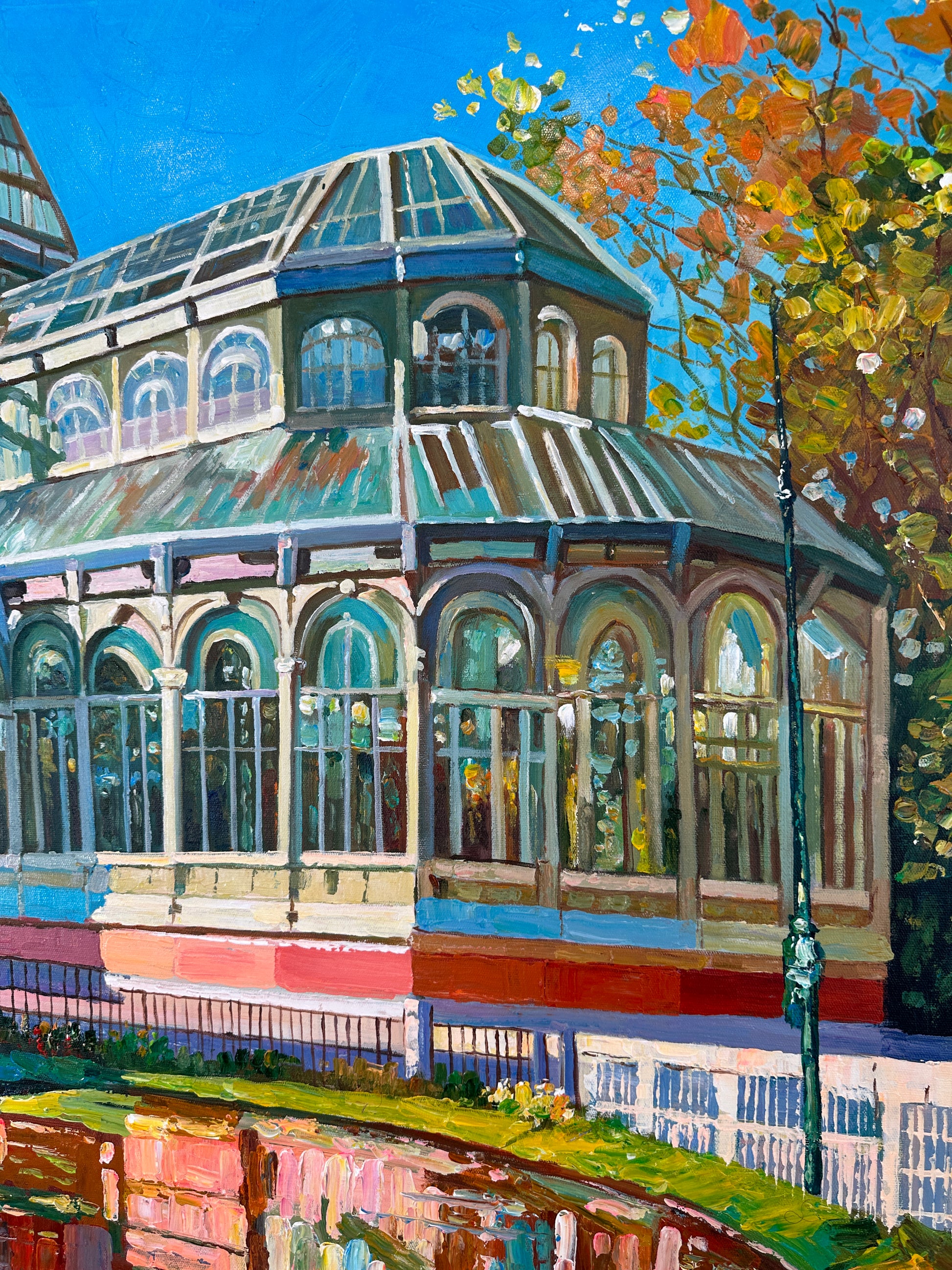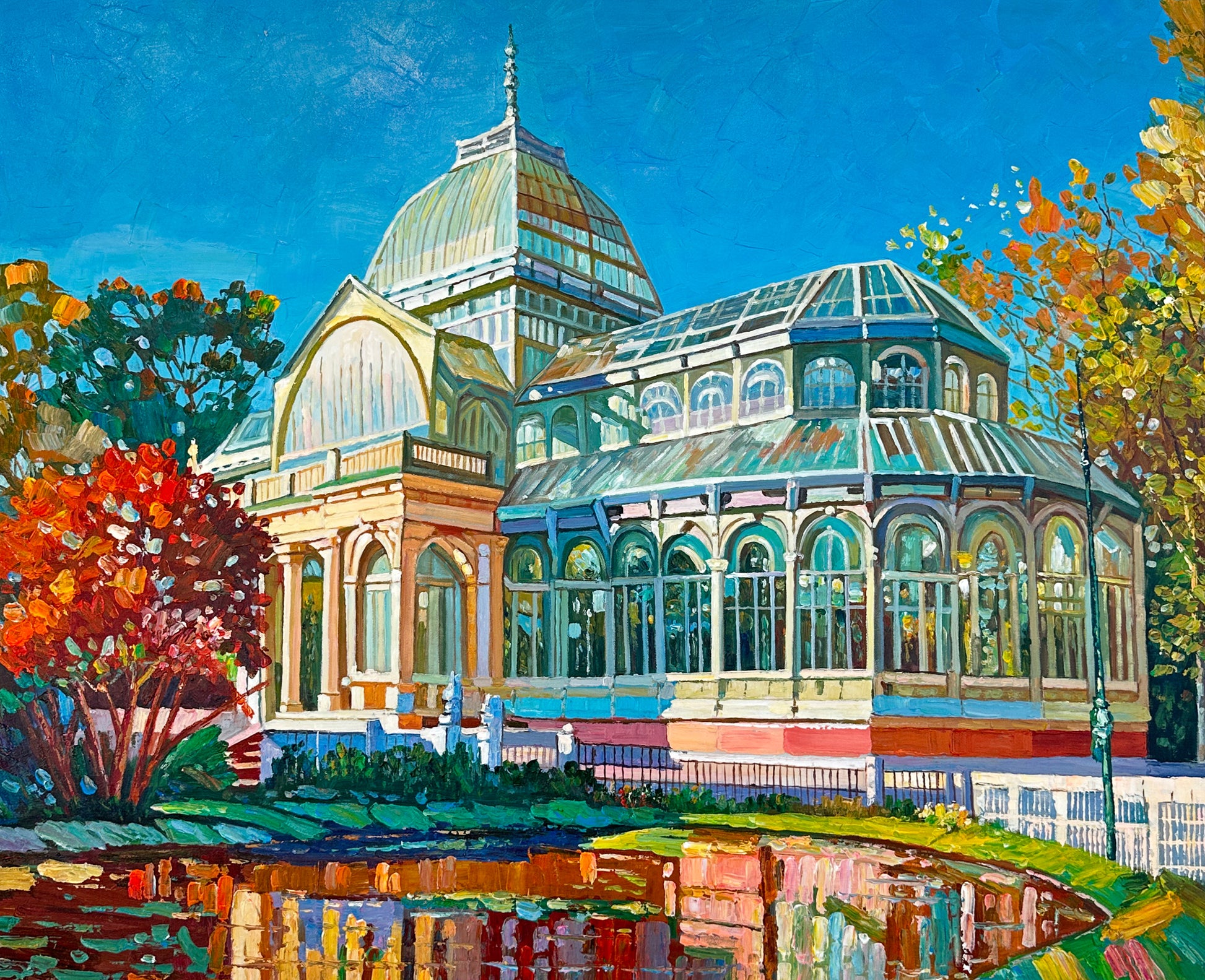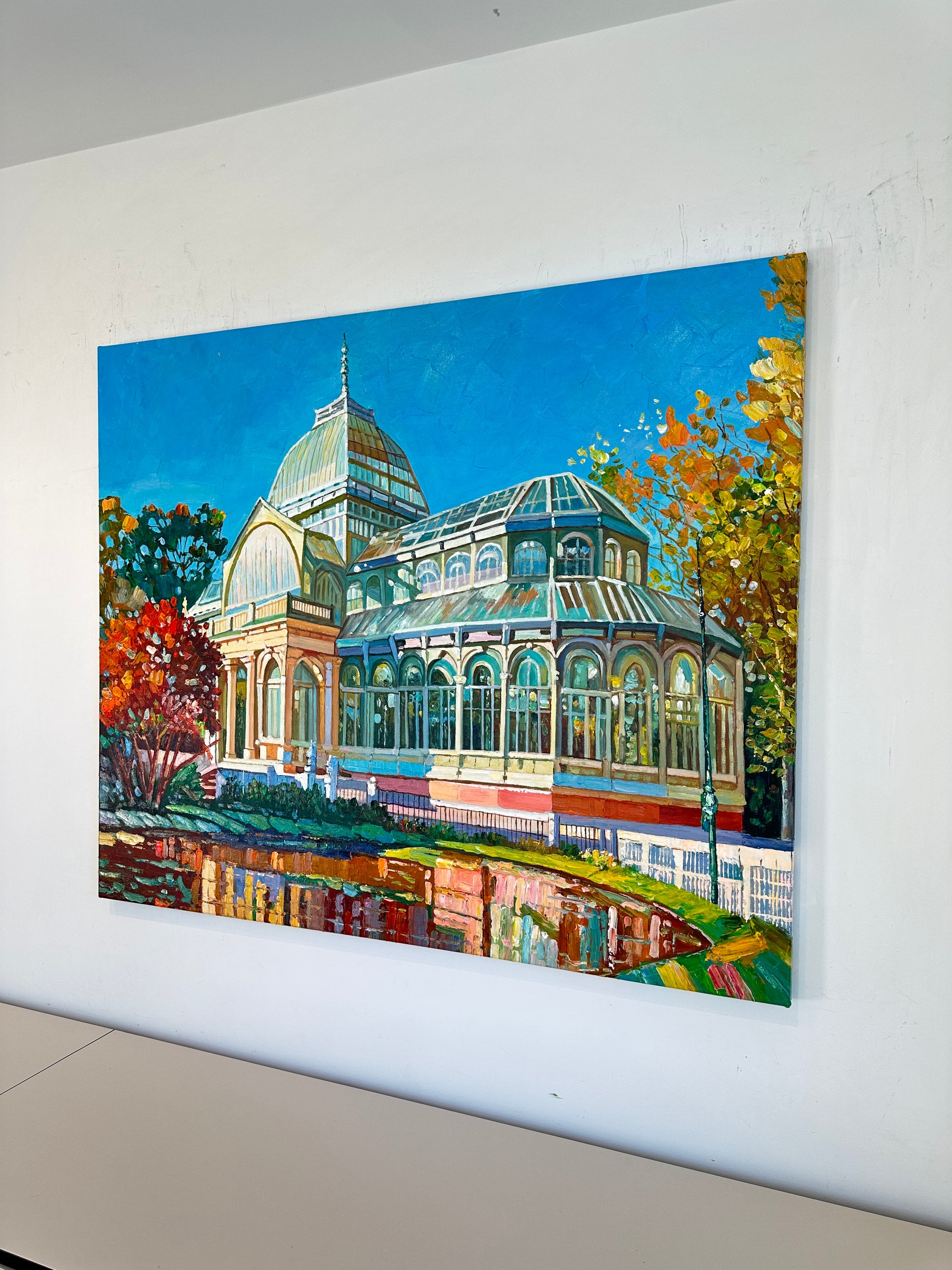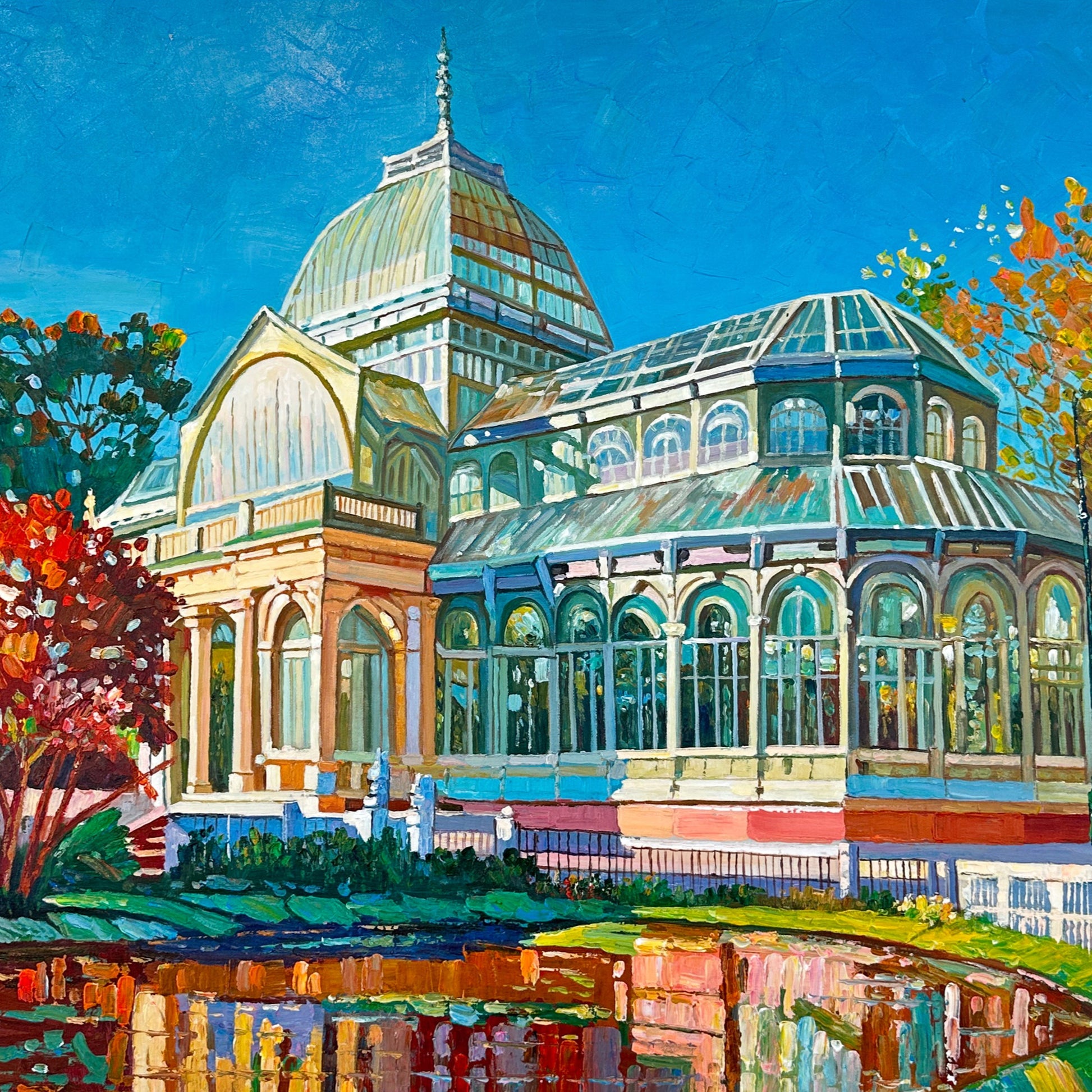 This one-of-a-kind oil painting is signed by Husslein on the back. The painting is ready to hang and includes professional wiring for easy installation. The sides are painted as a continuation of the front and it does not require framing.