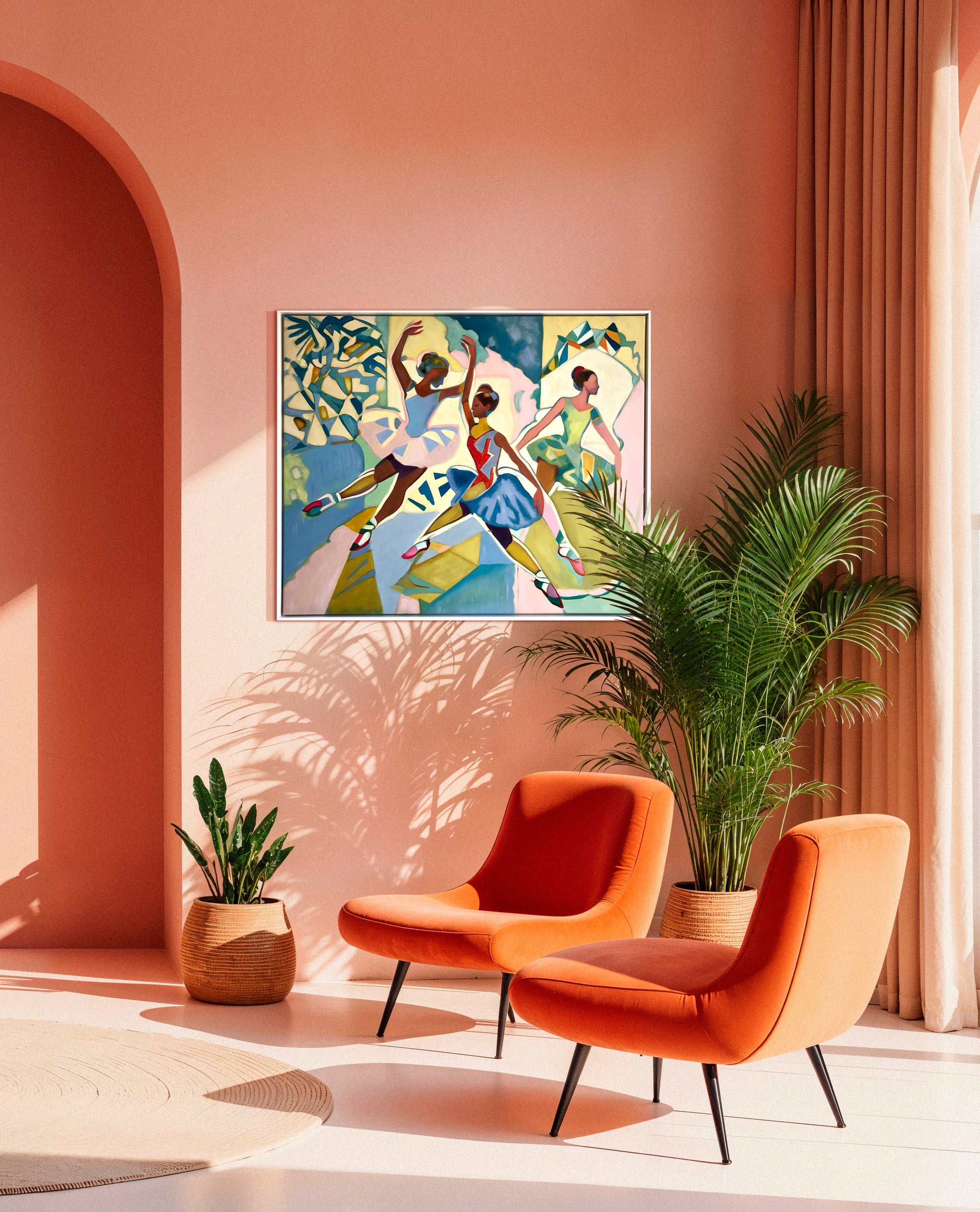 Barbara Schaumann is a contemporary artist born in 1961 in Germany, who is capturing vibrant, abstract interpretations of movement and dance. Her work uniquely blends bold colours with modern, geometric shapes, drawing inspiration from elements of cubism and abstraction. For many years, Schaumann worked as an art teacher, inspiring young minds with her passion for creativity and expression. Beyond her artistic pursuits, Schaumann is an avid dancer, embracing traditional styles such as Irish, Scottish, and standard ballroom dances.