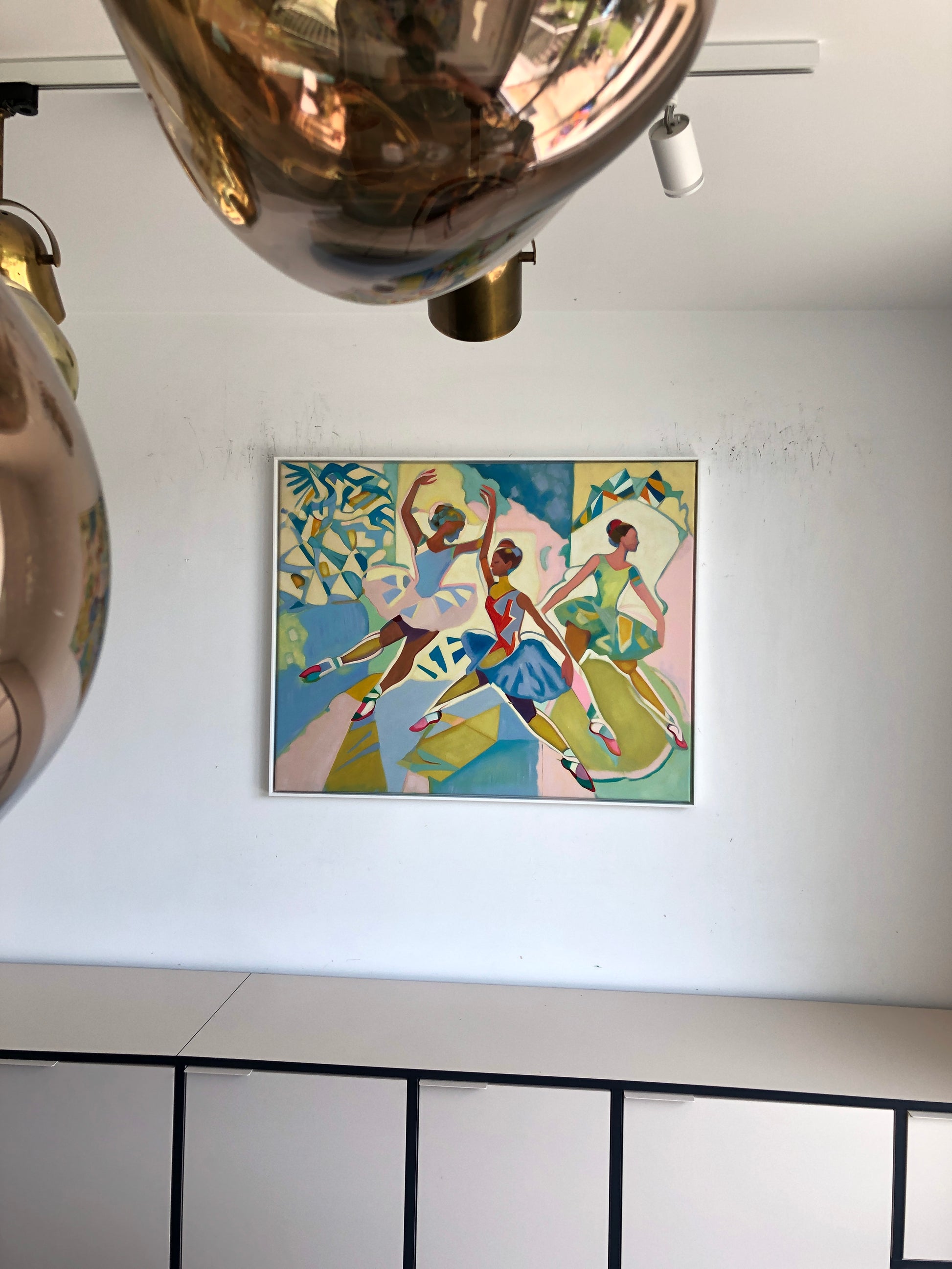 This passion for movement deeply influences her work, infusing it with a sense of rhythm and energy. Her art celebrates the fluidity and strength of the female body, resulting in striking compositions that blend traditional themes with fresh, contemporary aesthetics.