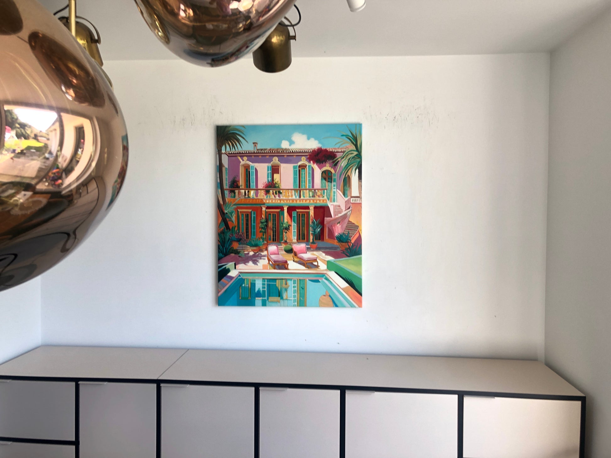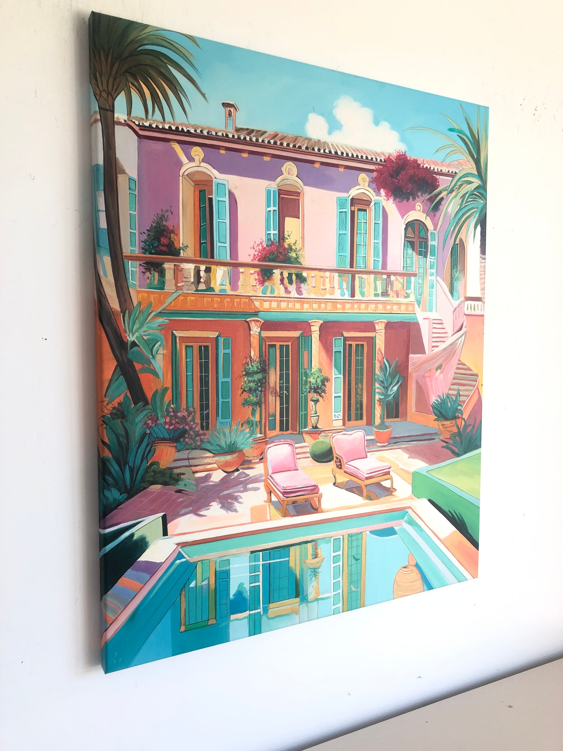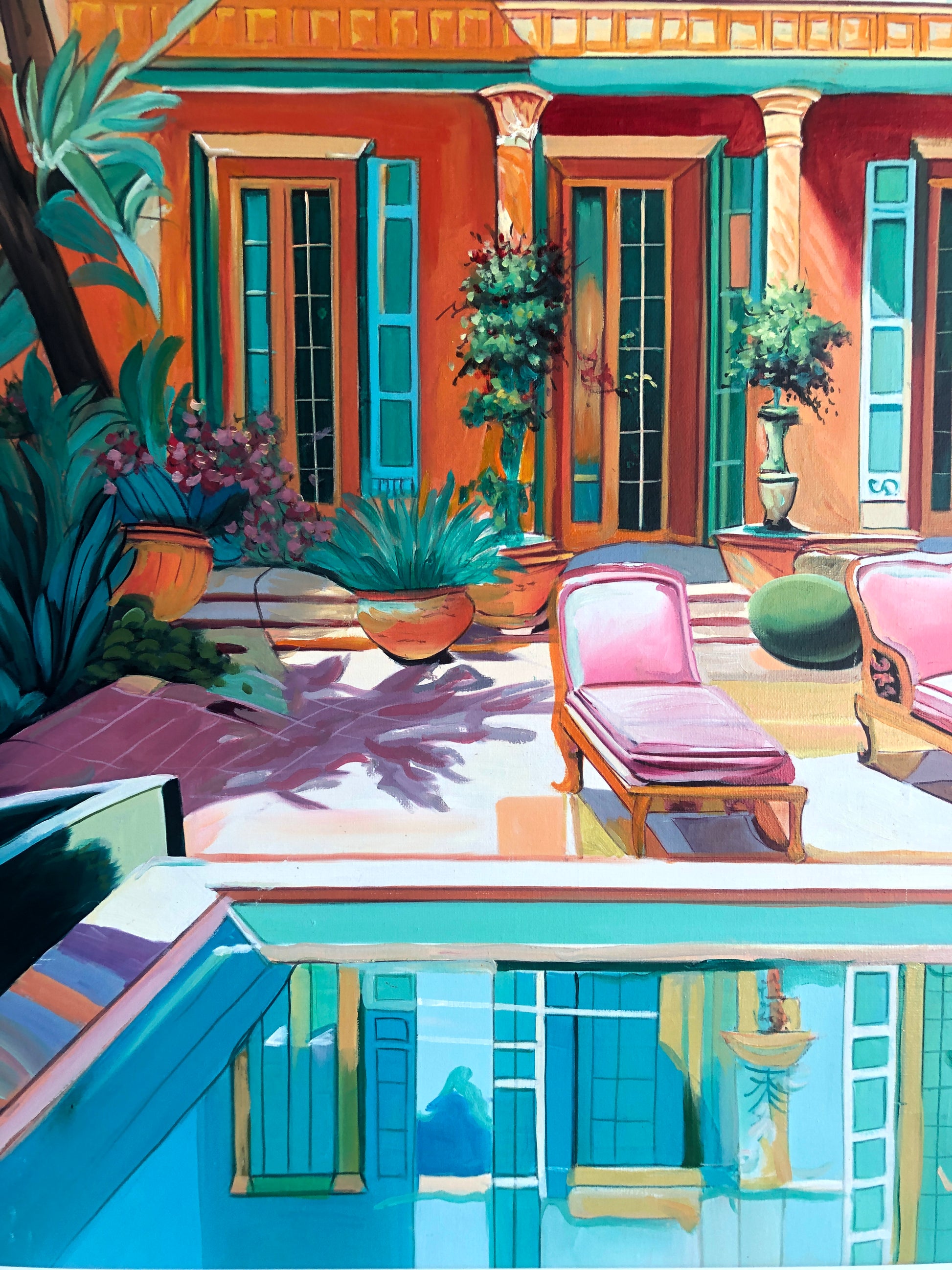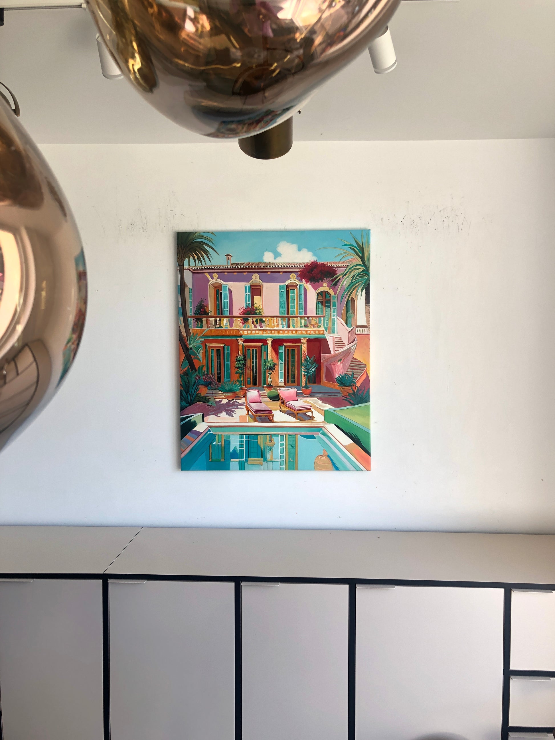 In essence, Lilly Muth's paintings beckon us to venture into a different world—one where architecture, pools, geometry, nature, and a kaleidoscope of colors converge to create a captivating dreamscape that transcends the ordinary and invites us to explore the boundless realms of artistic fantasy.