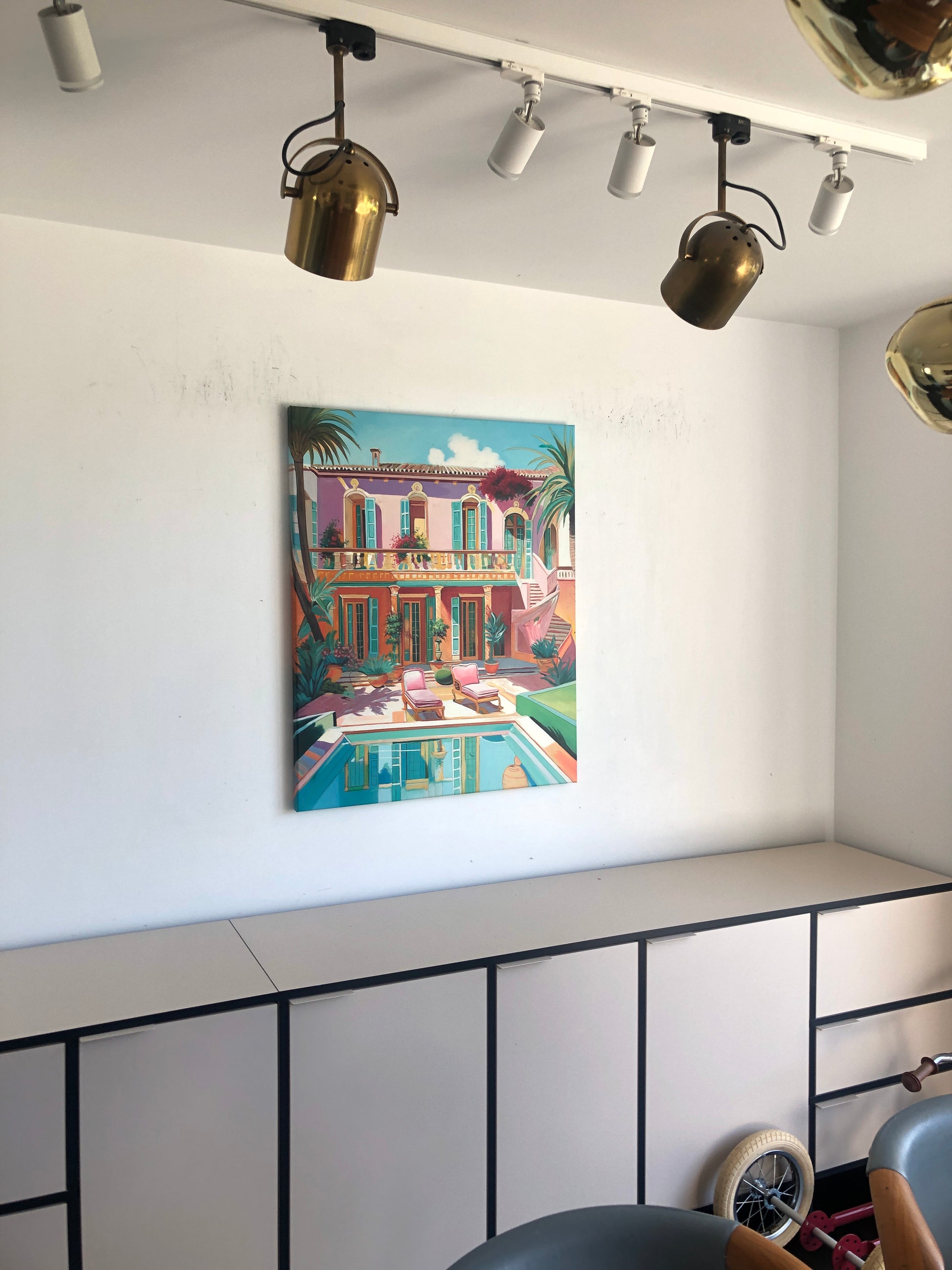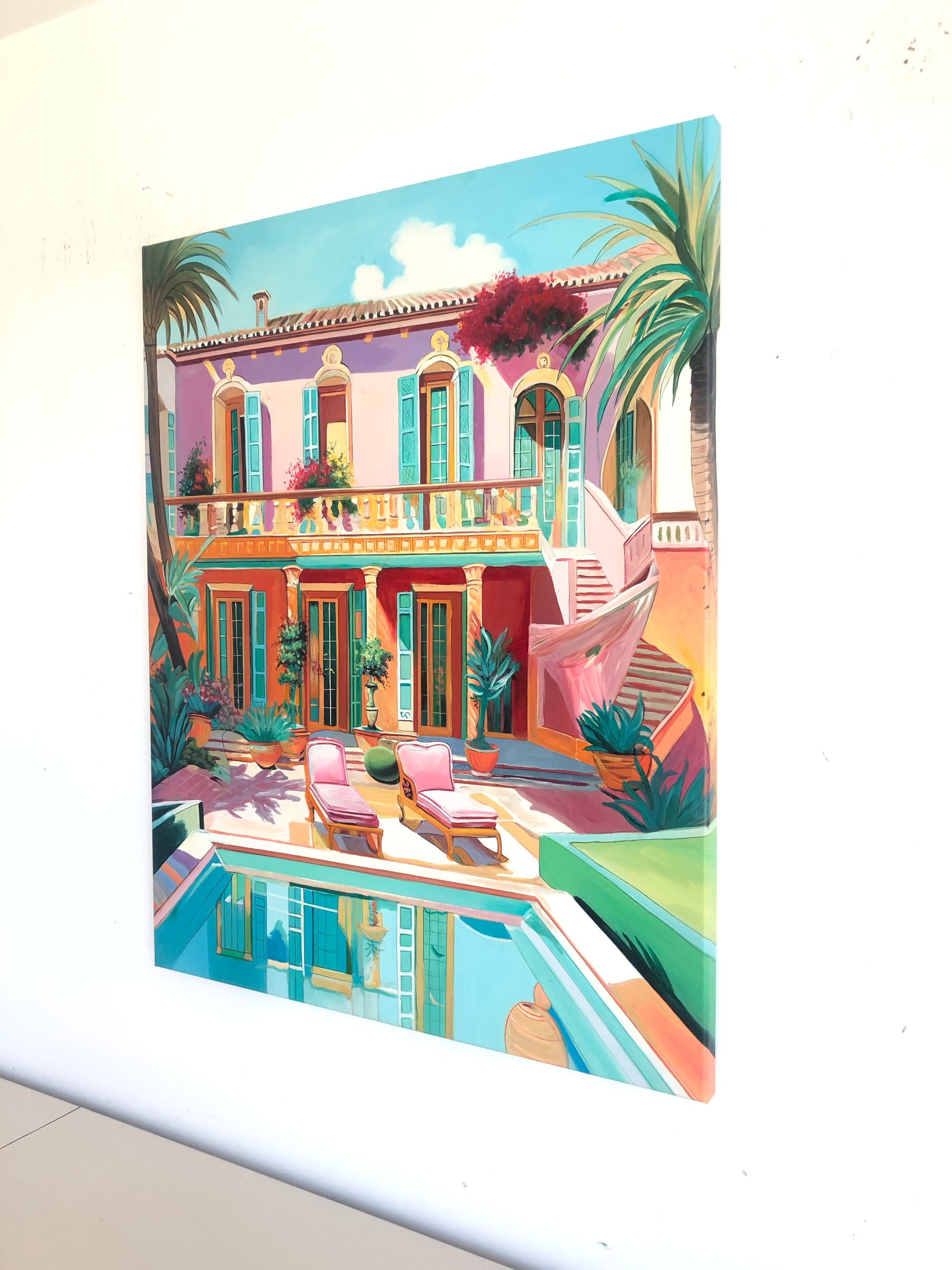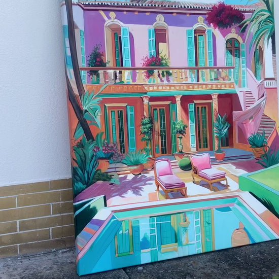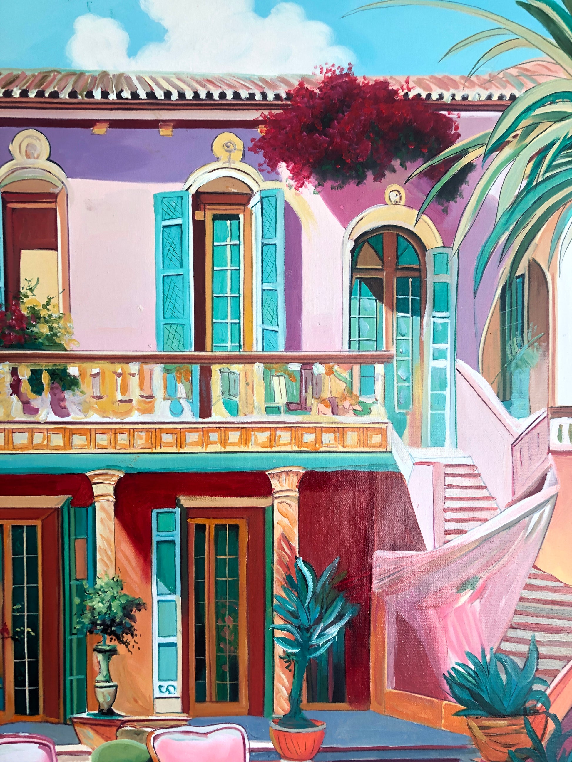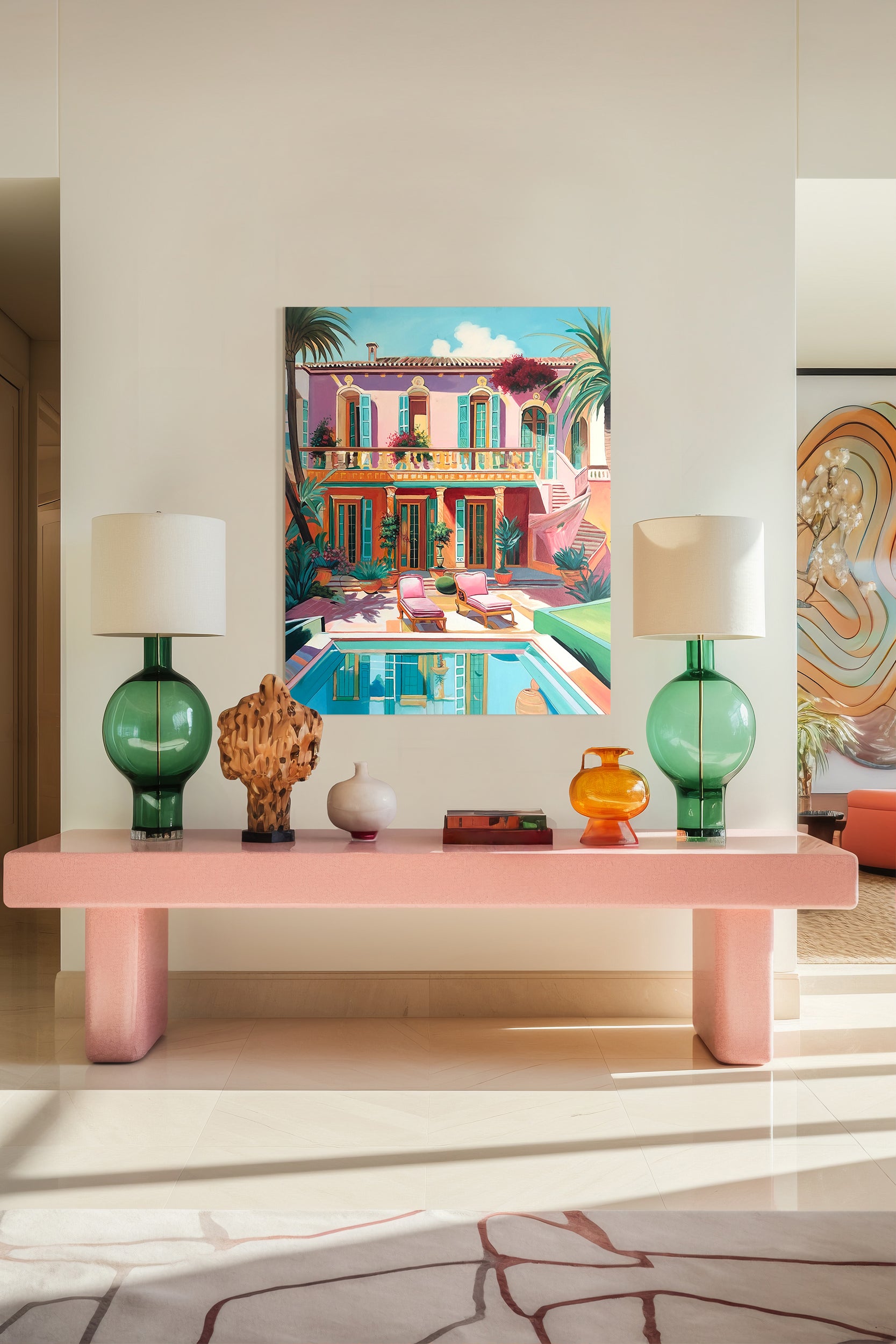 In essence, Lilly Muth's paintings beckon us to venture into a different world—one where architecture, pools, geometry, nature, and a kaleidoscope of colors converge to create a captivating dreamscape that transcends the ordinary and invites us to explore the boundless realms of artistic fantasy.