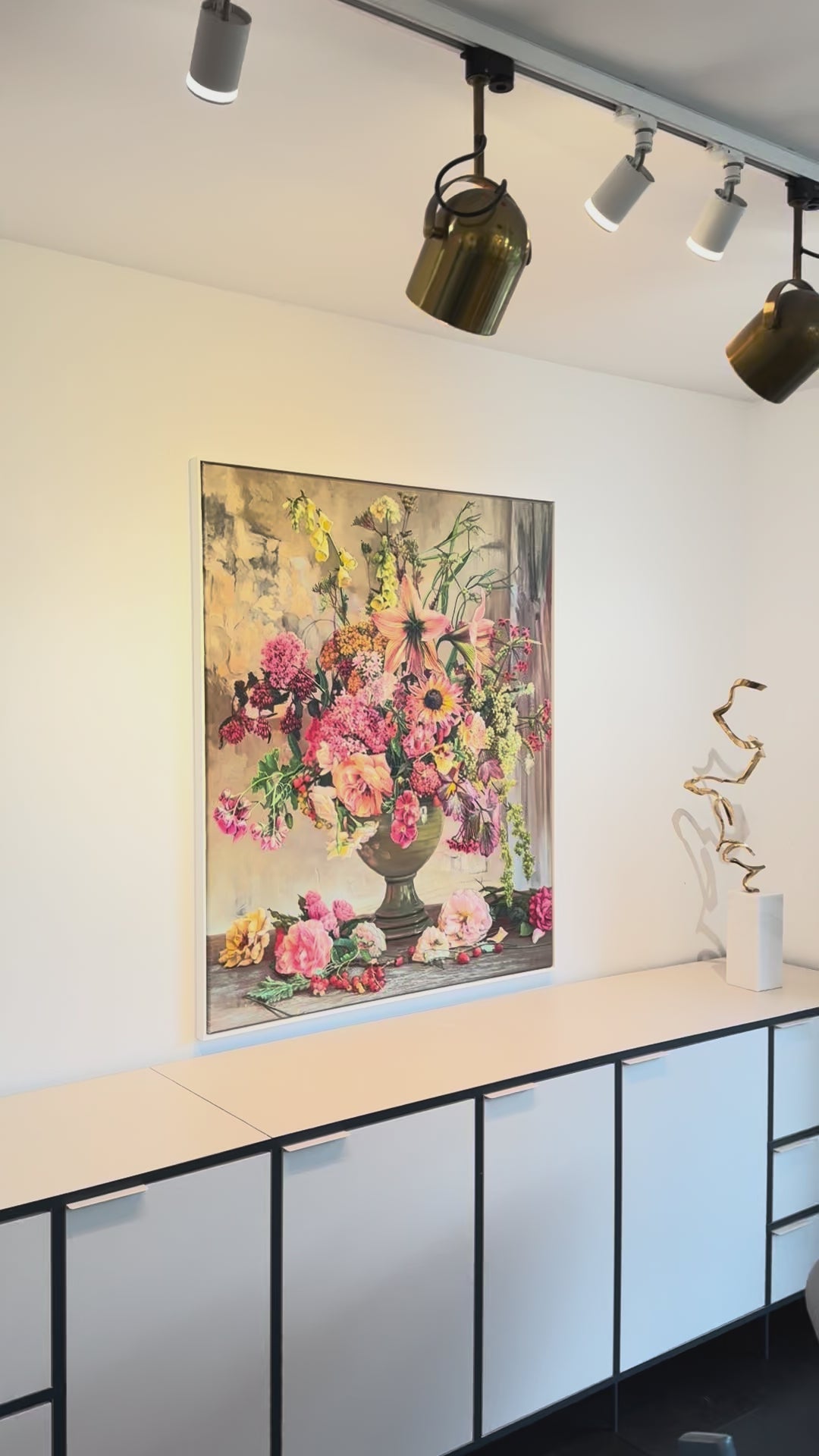 This is a beautiful oil painting of an array of flowers. Contemporary painting full of details and colors, vibrant roses , tulips, peonies and an arrangement of other flowers. Reminding us of old master paintings, this is a brand new painting full elegance and timeless elegance.