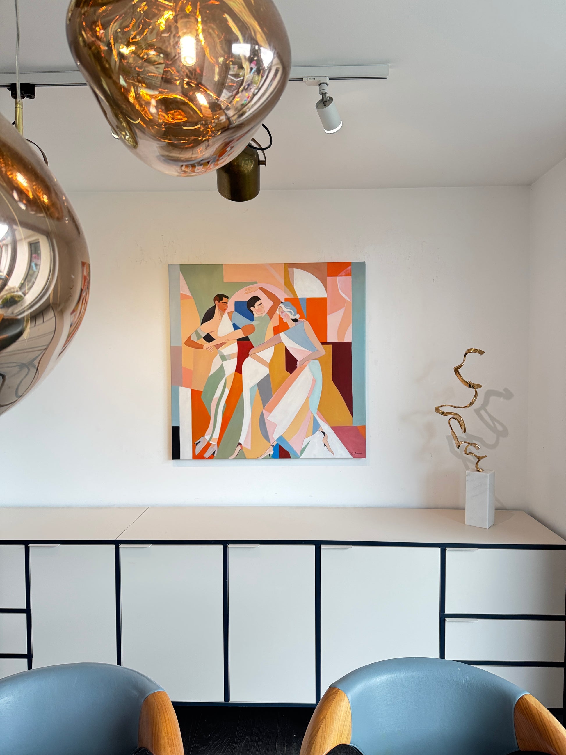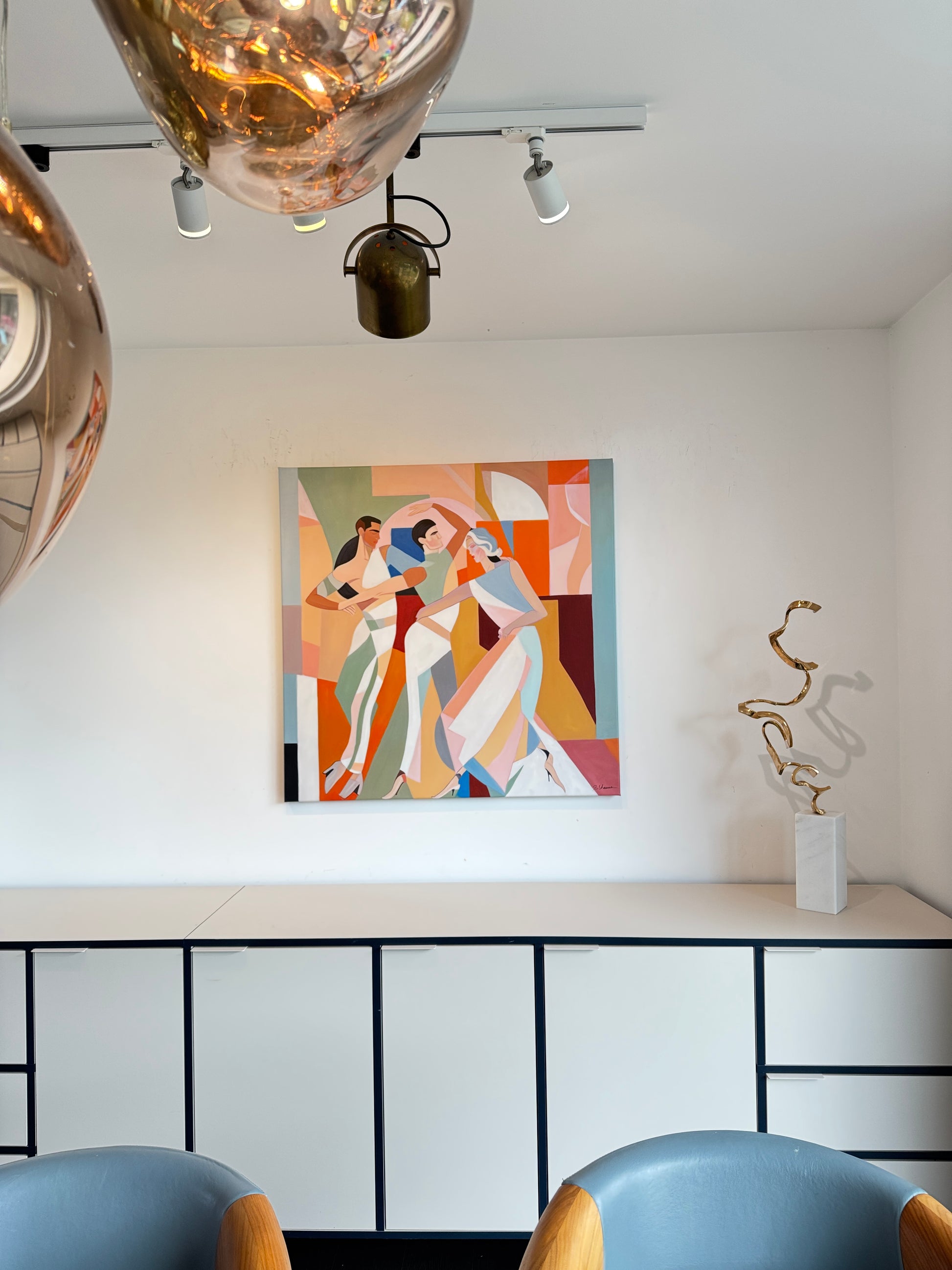 Barbara Schaumann is a contemporary artist born in 1961 in Germany, who is capturing vibrant, abstract interpretations of movement and dance. Her work uniquely blends bold colours with modern, geometric shapes, drawing inspiration from elements of cubism and abstraction. For many years, Schaumann worked as an art teacher, inspiring young minds with her passion for creativity and expression. Beyond her artistic pursuits, Schaumann is an avid dancer, embracing traditional styles such as Irish, Scottish, and standard ballroom dances.