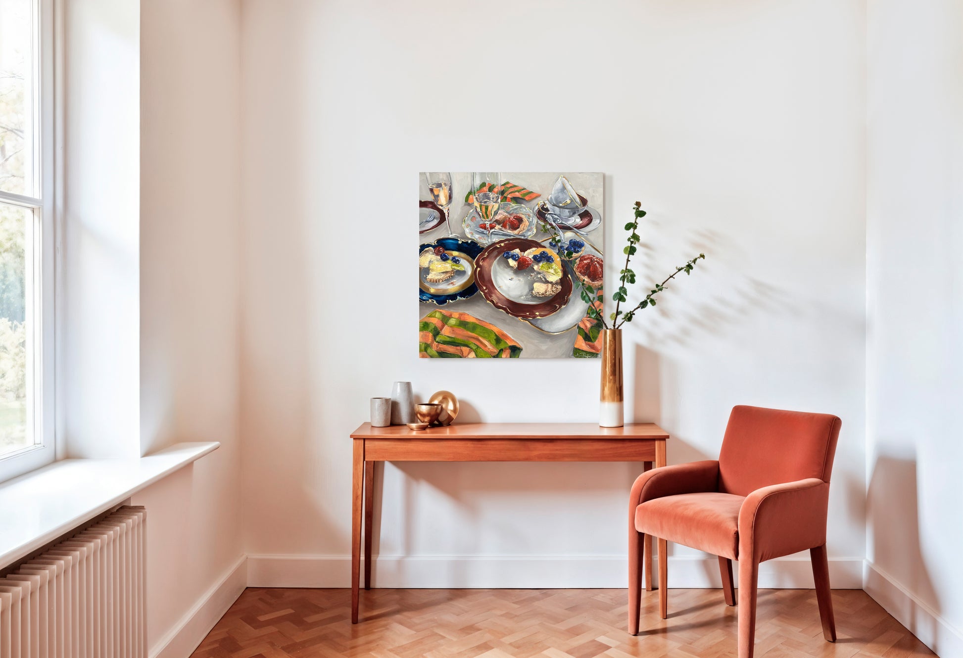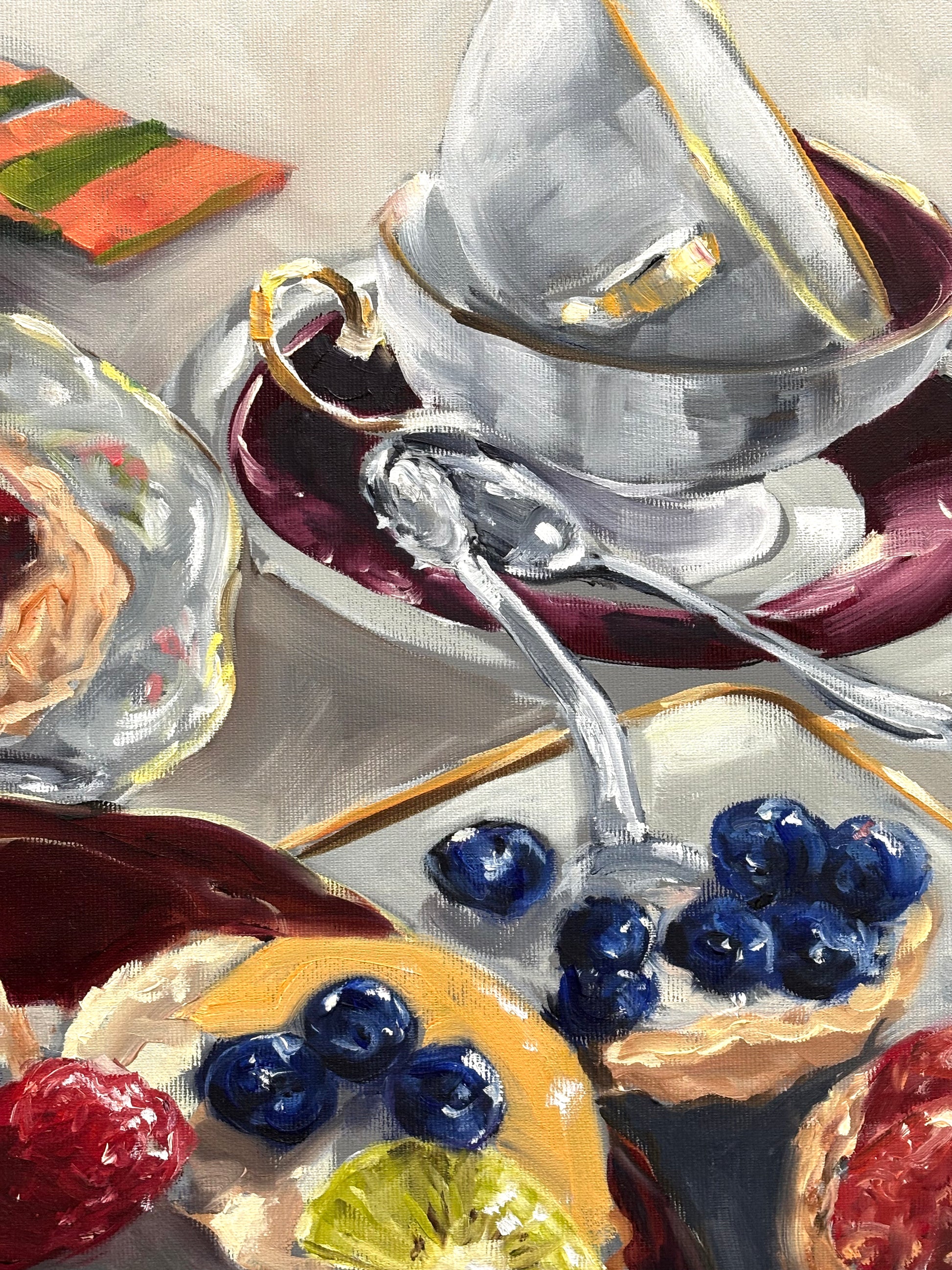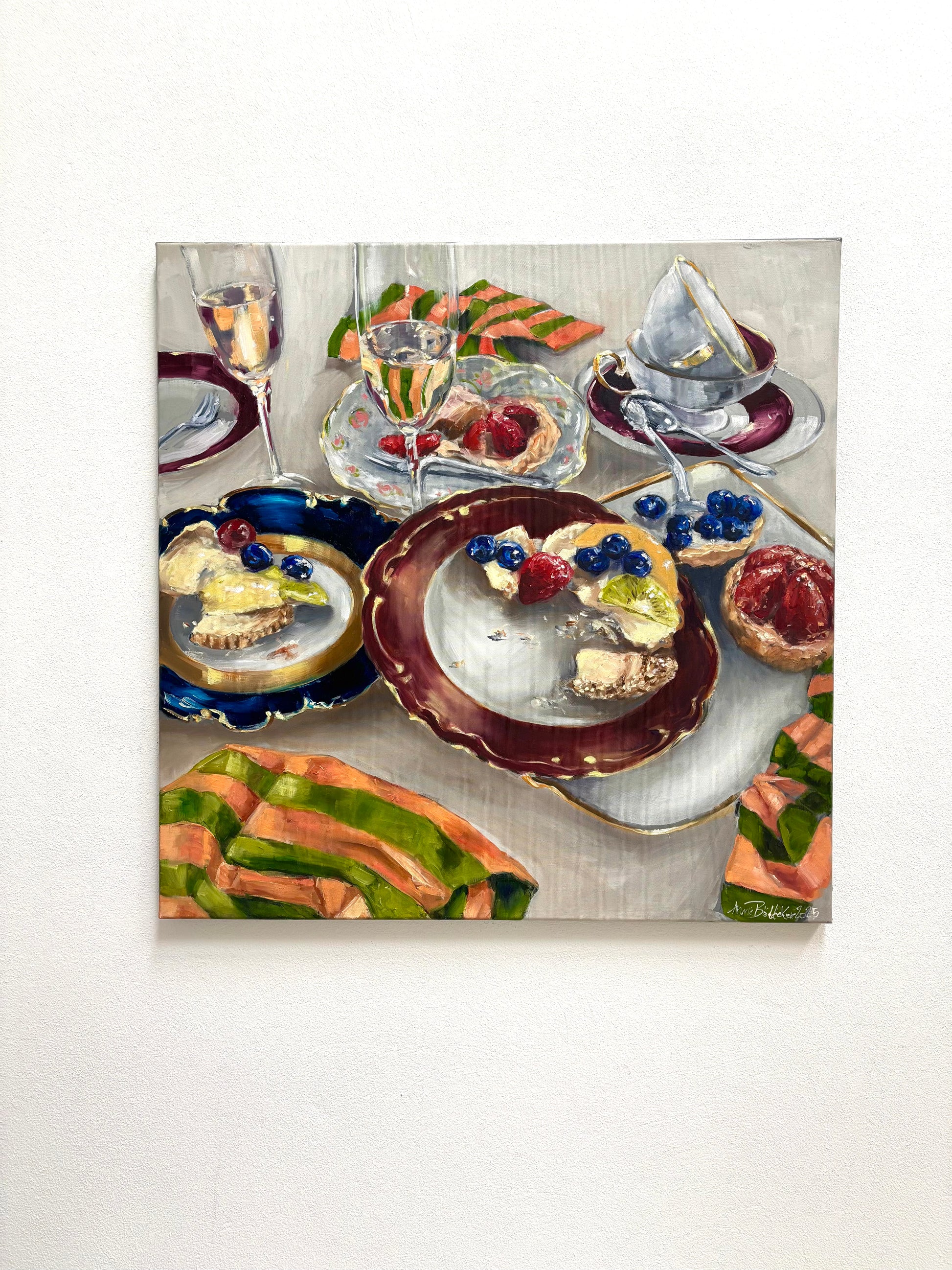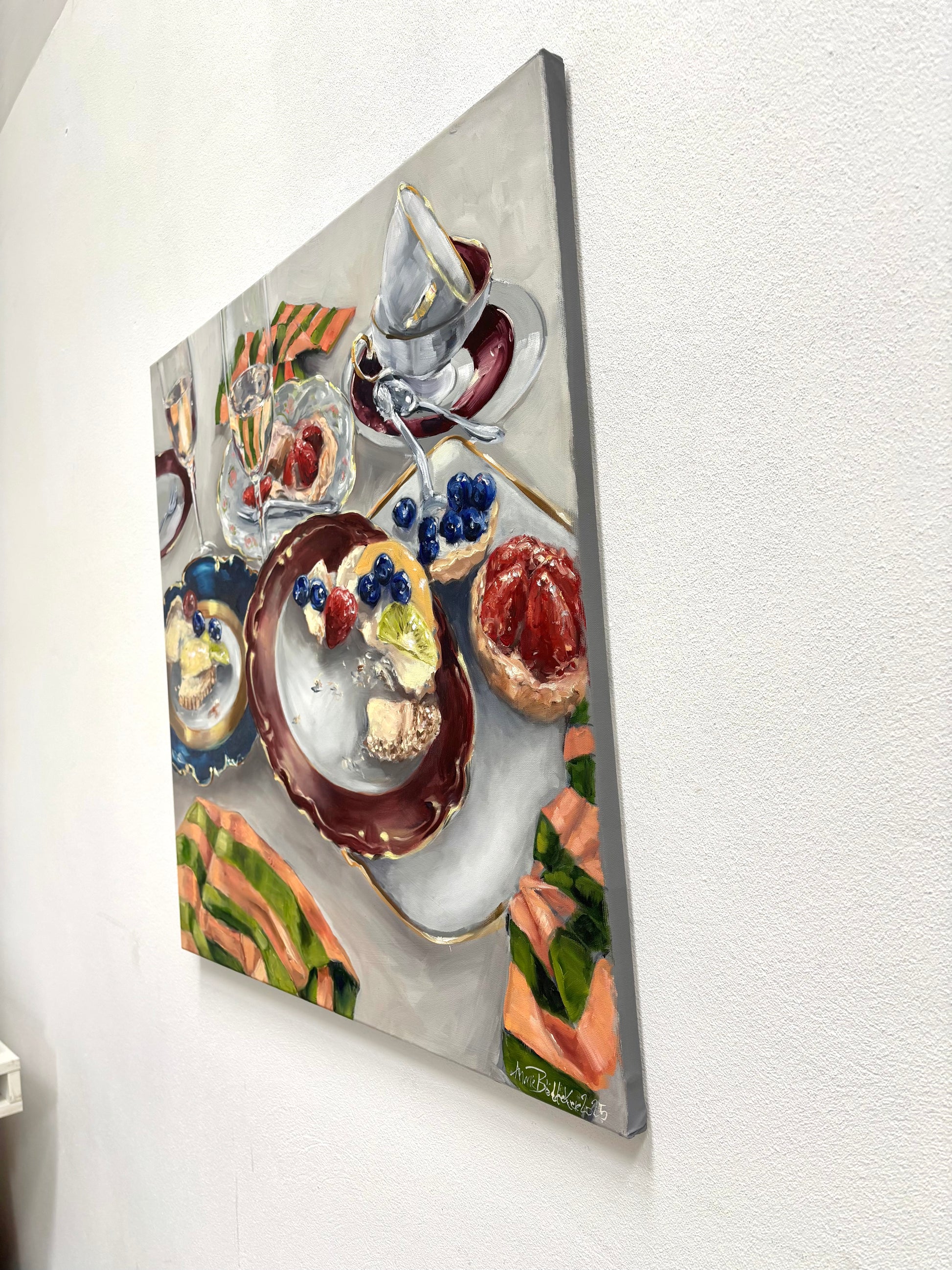Her paintings are deeply influenced by her fascination with the ocean — its intensity, volatility, and the fragile line between beauty and menace. She explores themes of transience, fleeting moments, and the way people mirror themselves in the shifting face of nature.