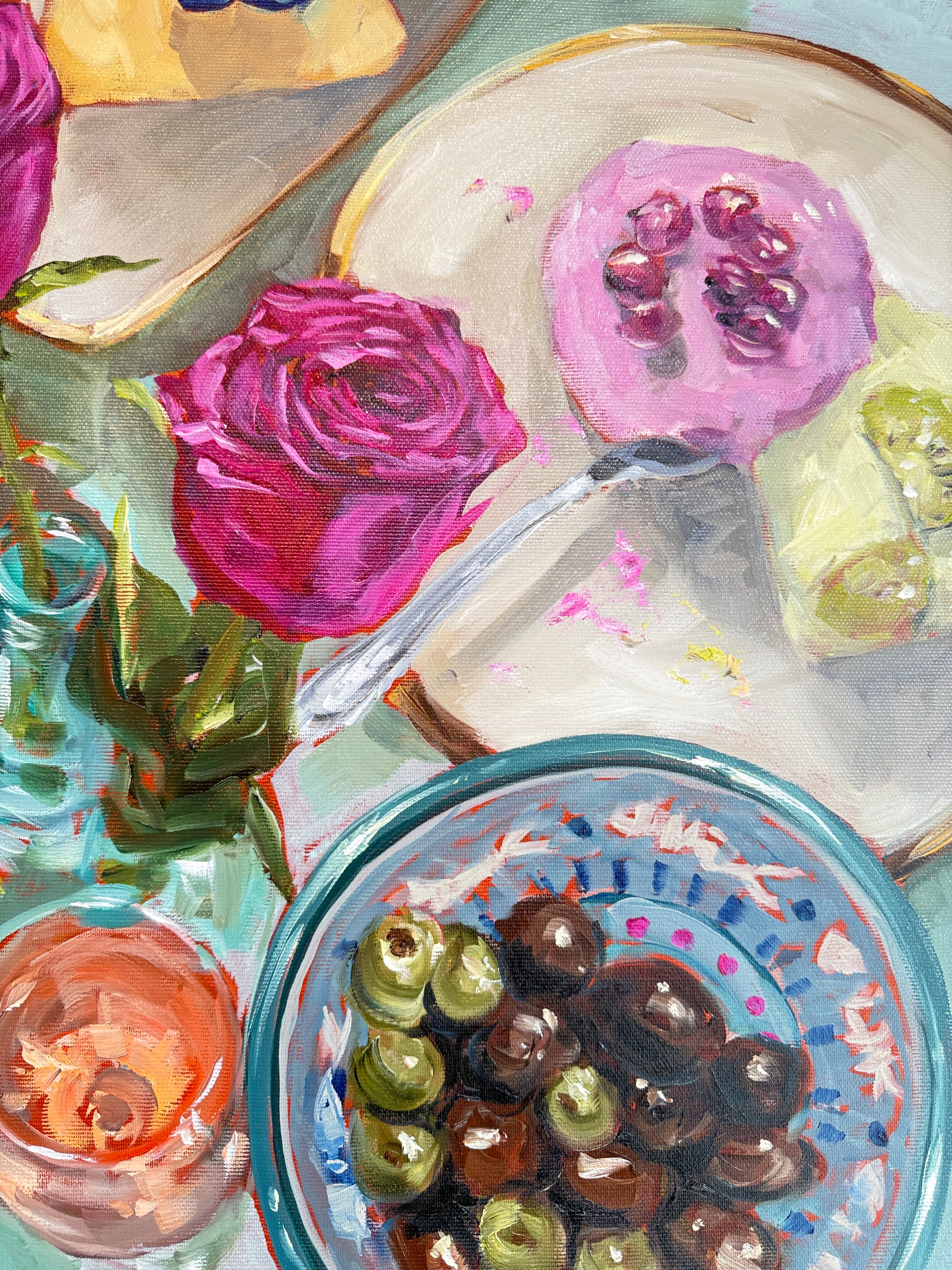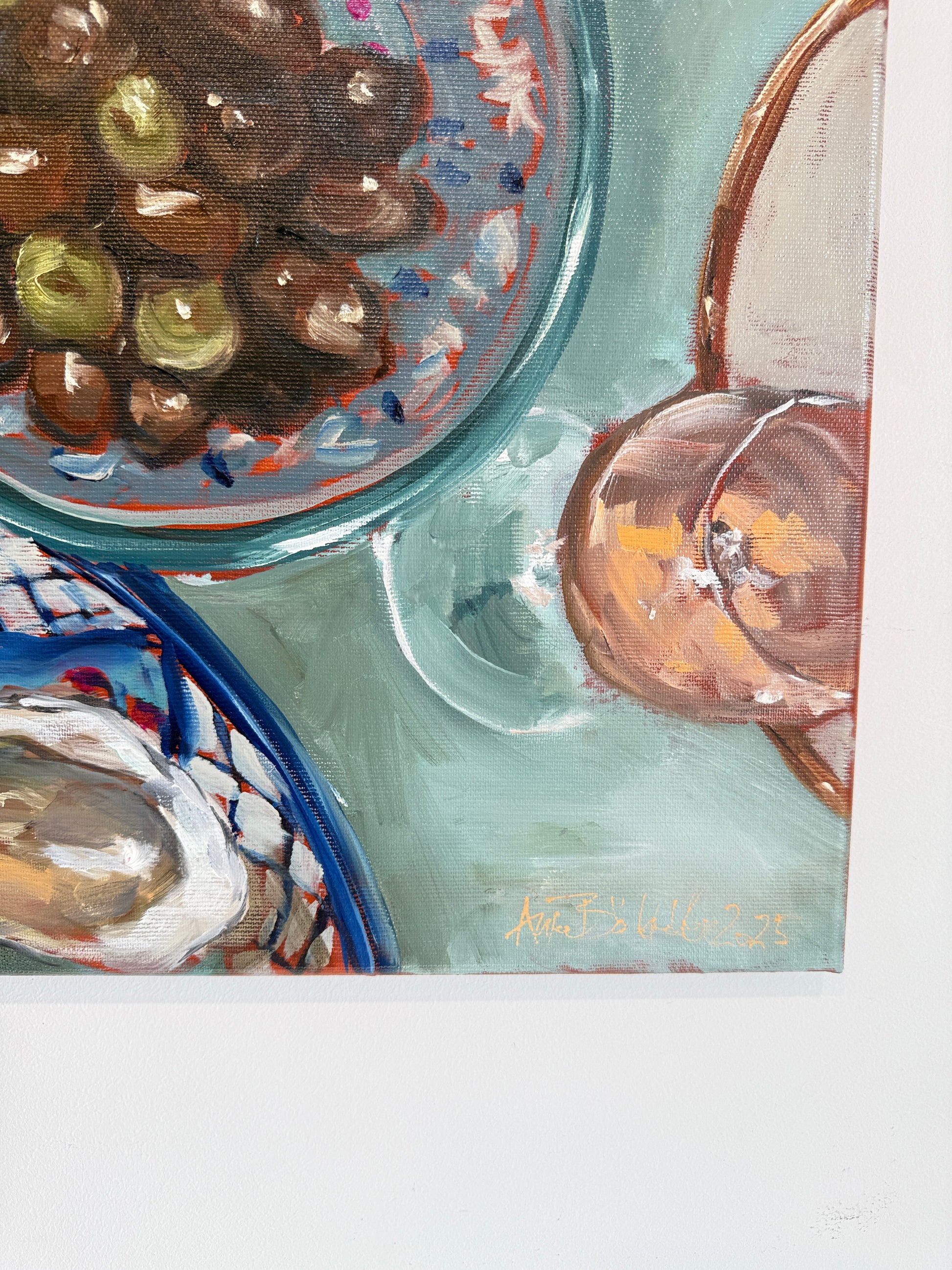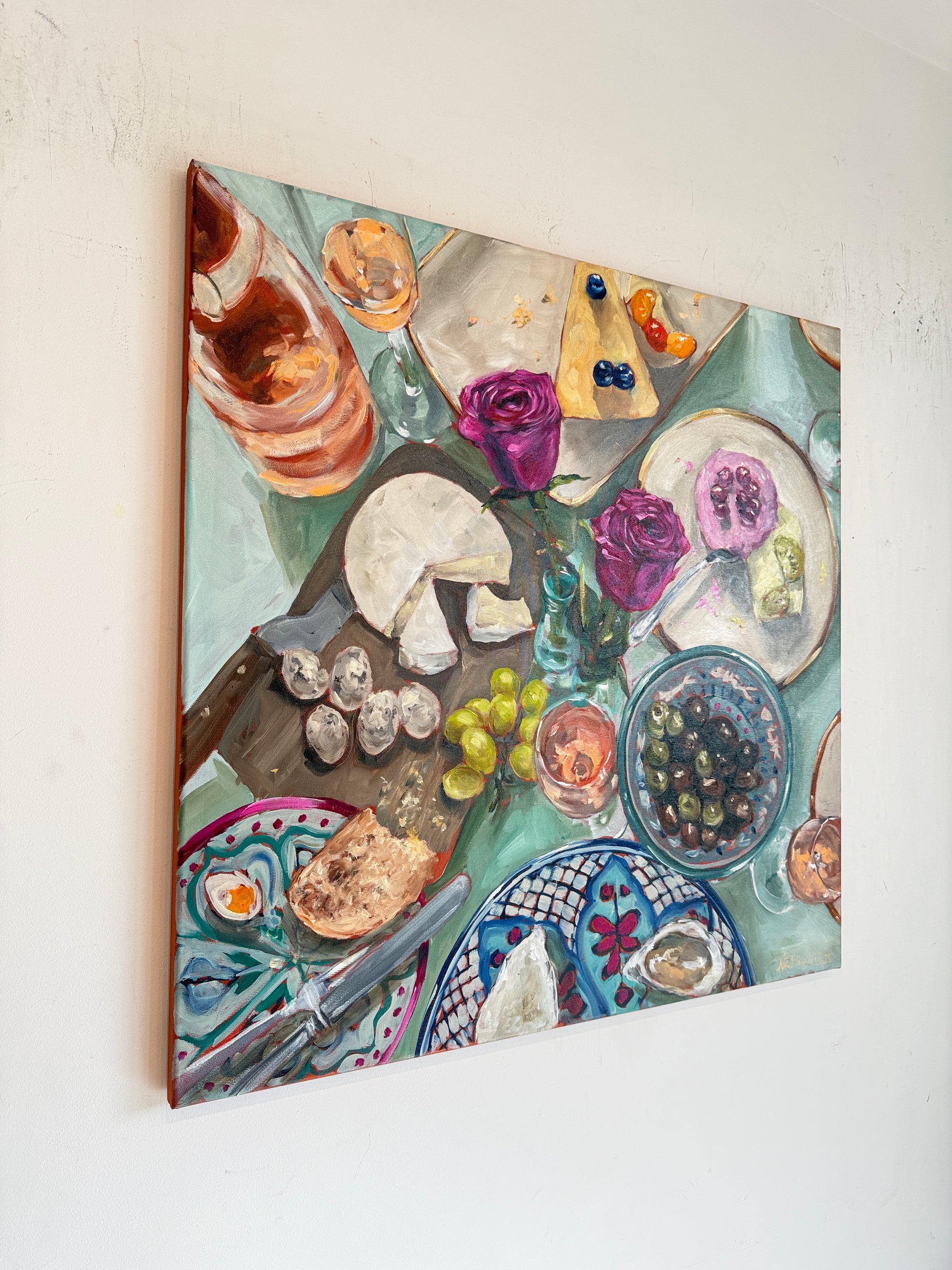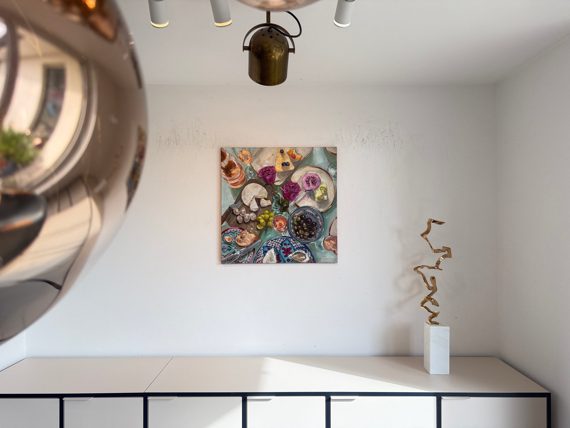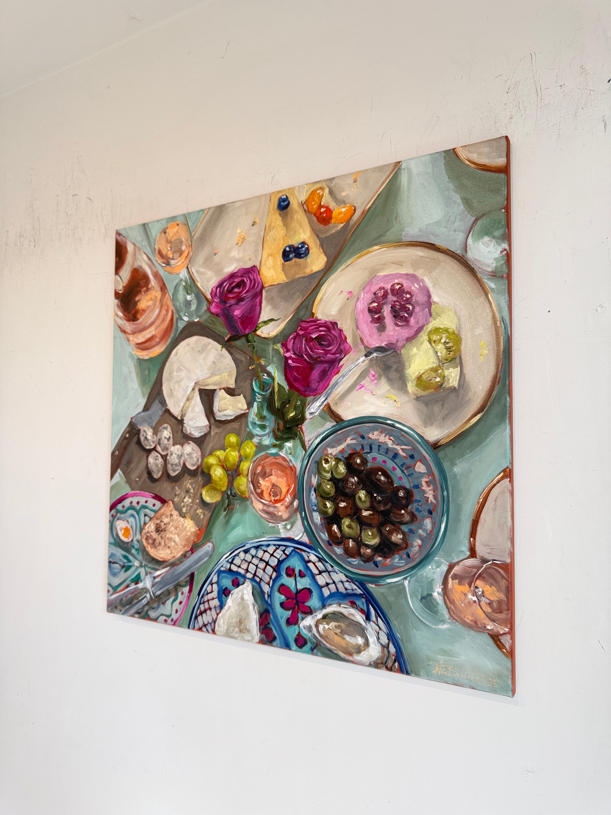Her paintings are deeply influenced by her fascination with the ocean — its intensity, volatility, and the fragile line between beauty and menace. She explores themes of transience, fleeting moments, and the way people mirror themselves in the shifting face of nature.