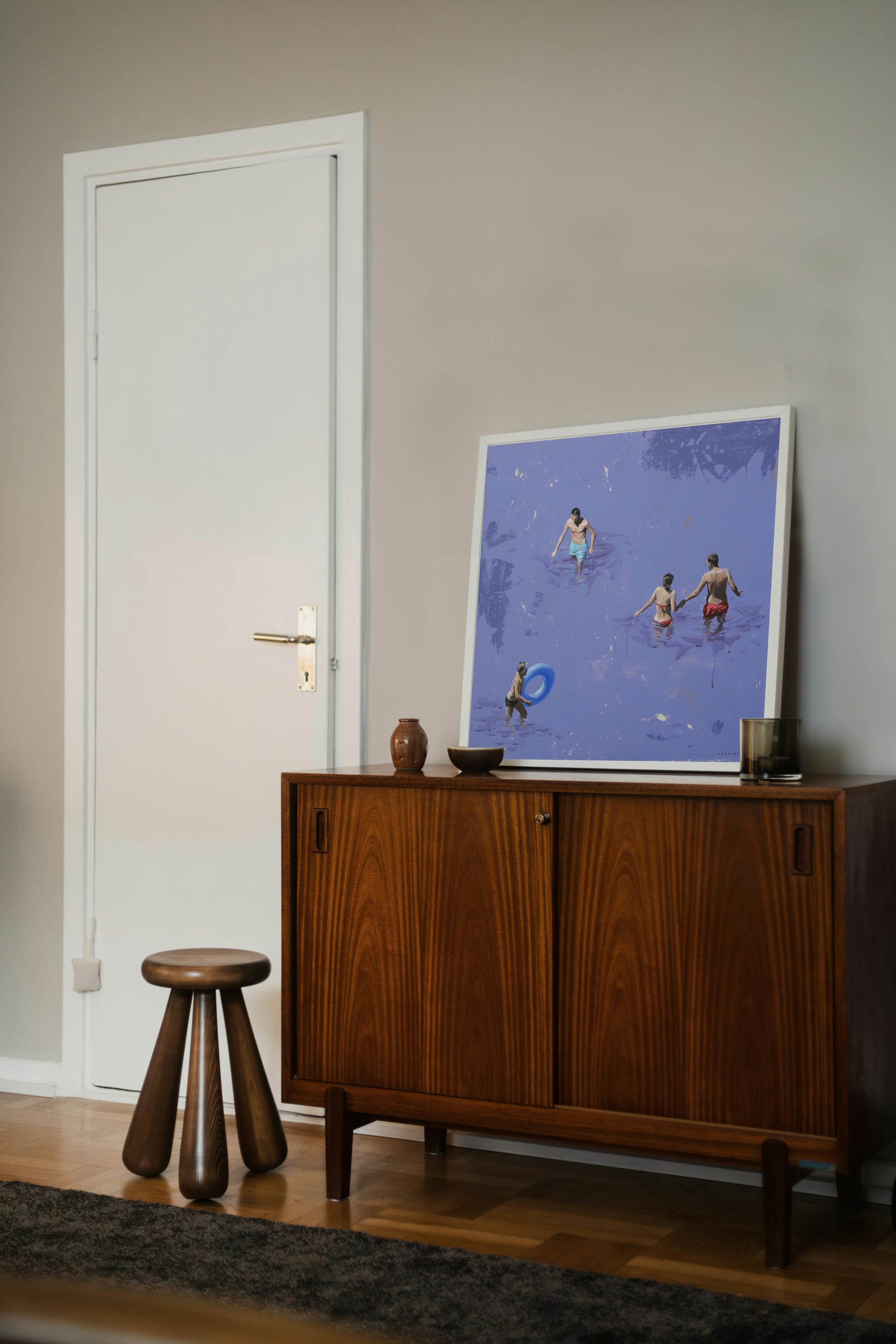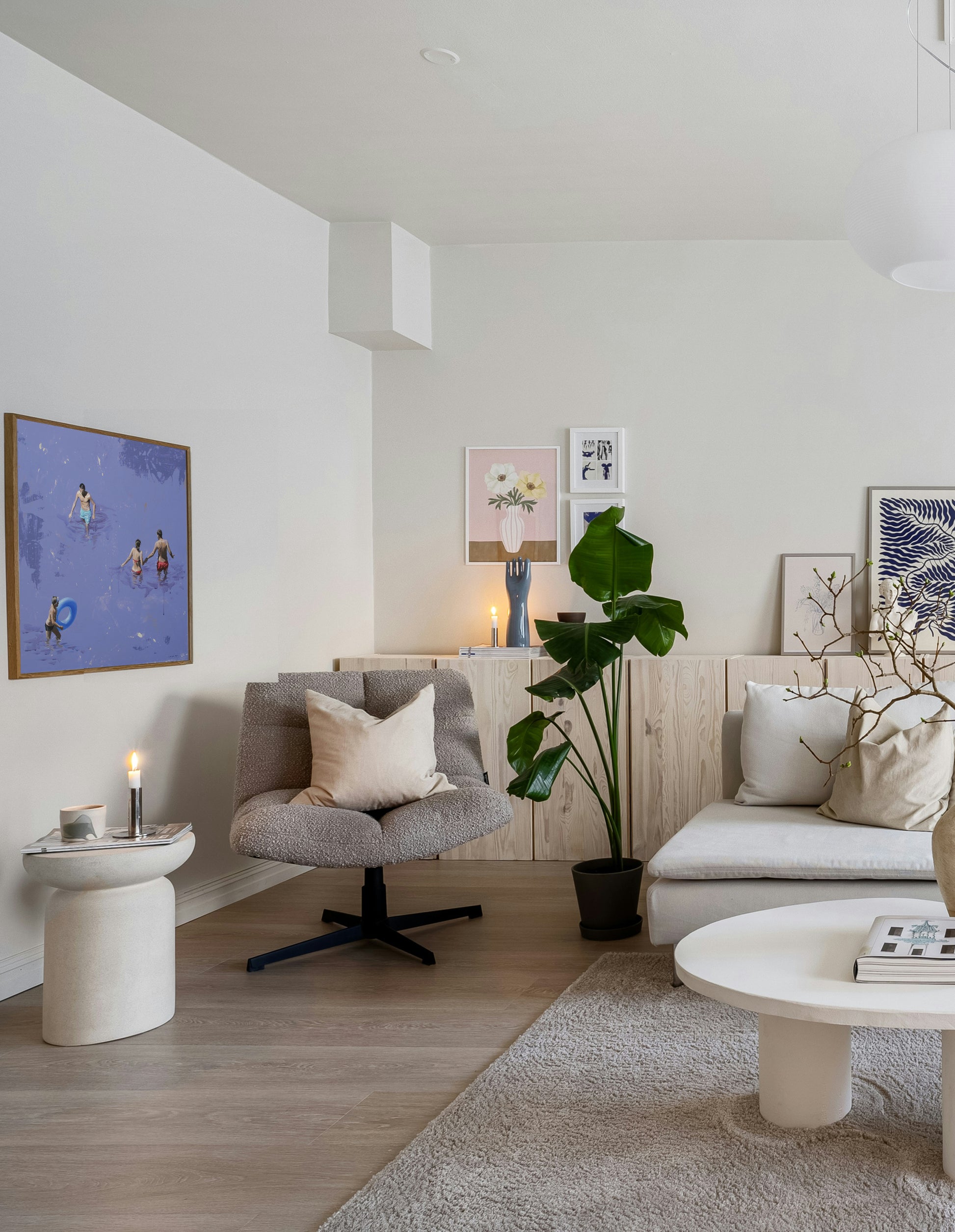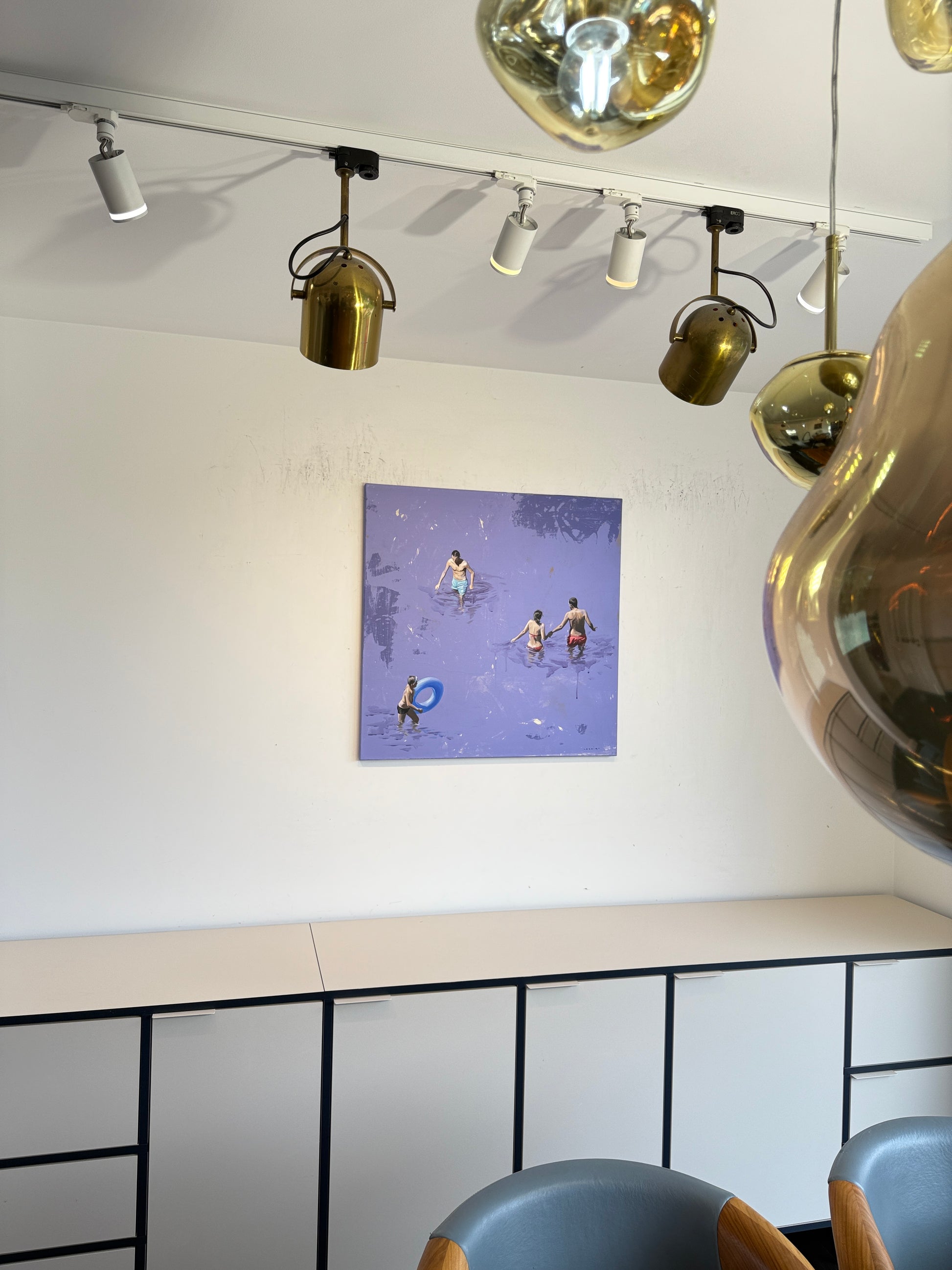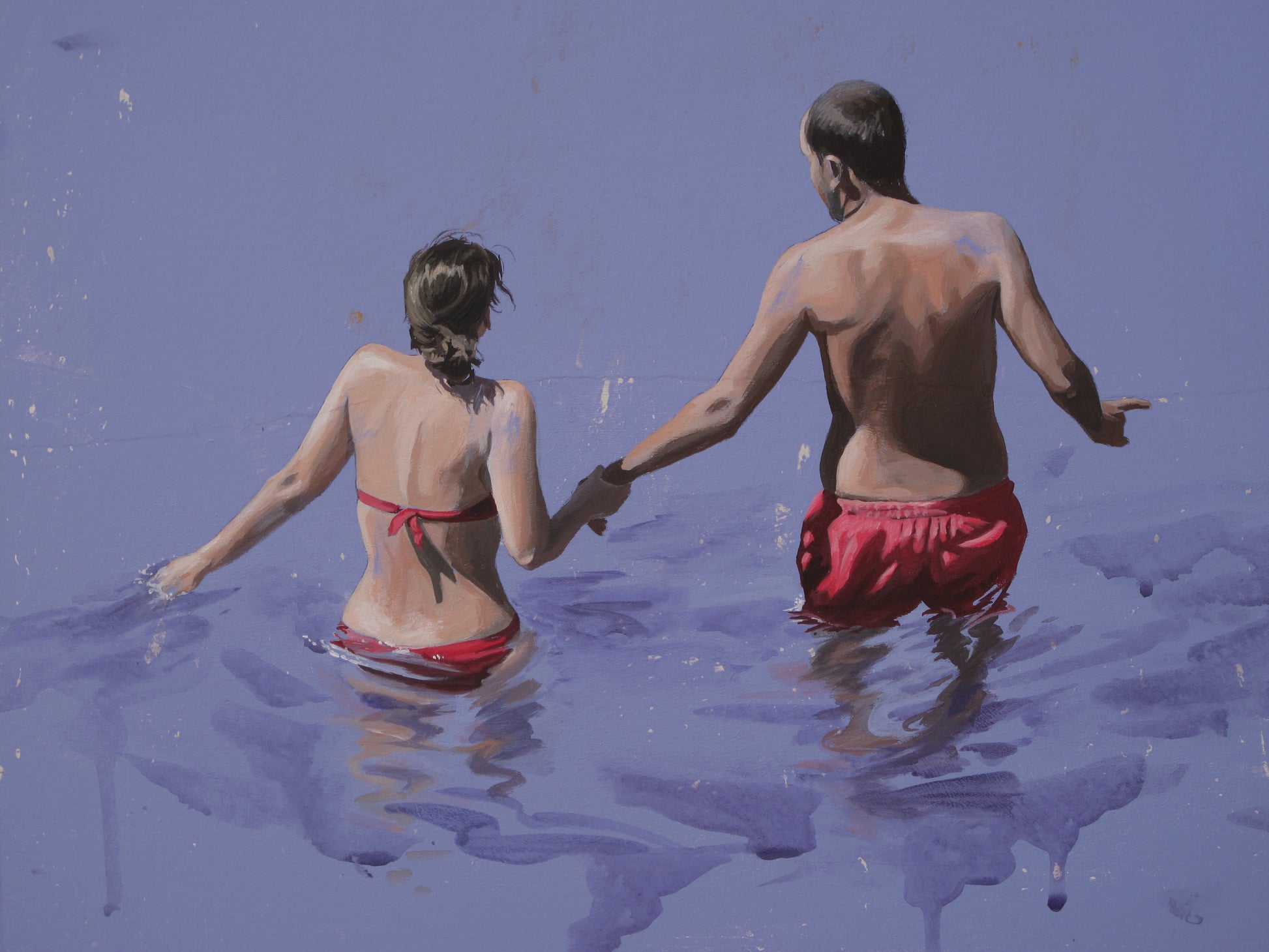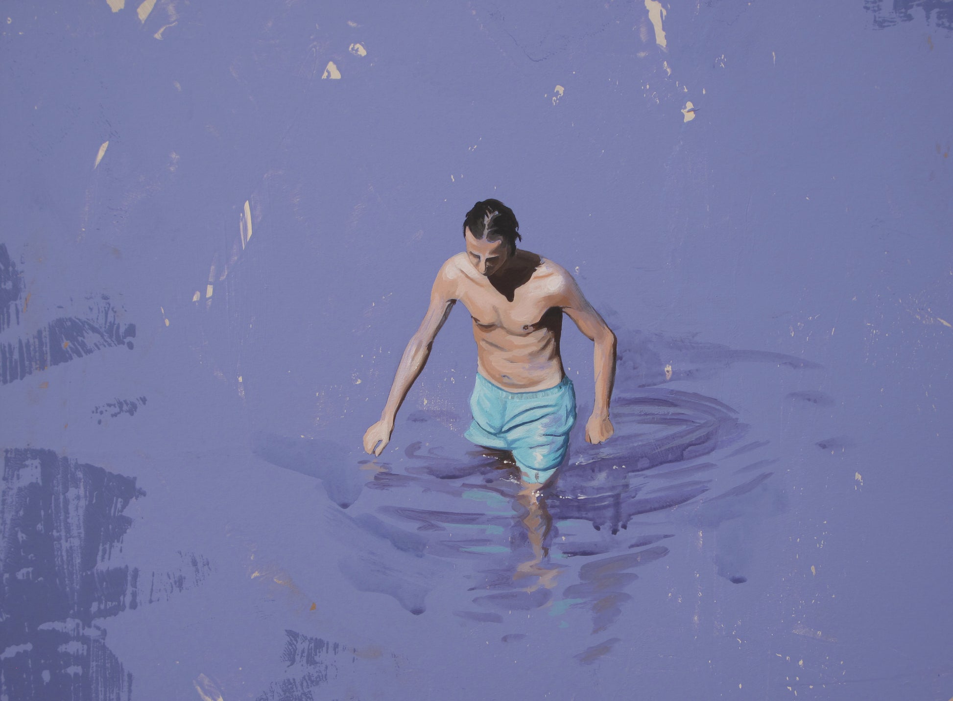 Drawing inspiration from her surroundings, loved ones, and public spaces, she captures photographs that serve as the foundation for composing and creating her paintings. Her recent works depict men, women, and sometimes children, often alone in a clear, abstract environment, placed in situations that reflect the contemporary world. However, her intention is not to tell a specific story. "Everything is open, possible," she says. "Each person can interpret these scenes as they wish. The canvas shows nothing beyond what we see. These people are simply there. We observe them, but in reality, it is a reflection of ourselves, the canvas is a mirror. What matters to me is capturing a moment of stillness, one that can reveal something in each of us."