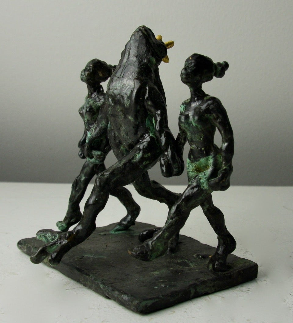 Even though Helle Rask Crawford often refers to classic myths in her sculptures, she is not a classical sculptor in the neoclassical sense. Rather, Helle Crawford could be defined as an anti-classical artist. Her sculptures are expressive, dynamic, sensual and humorous. They are full of movement, imagination and fabulating stories. Strong potent bulls, wonderfully vibrant horses, powerful ravens and lovesick swans characterize Helle Crawford as a sculptor. The expressive quality of her sculptures, that lets you sense the work of hands and fingers, the explosive, dynamic compositions, the sensuality and the imaginative content showcase Helle Crawford as a tradition conscious, yet thoroughly original artist. The work we have here is equally at home undercover and outside.