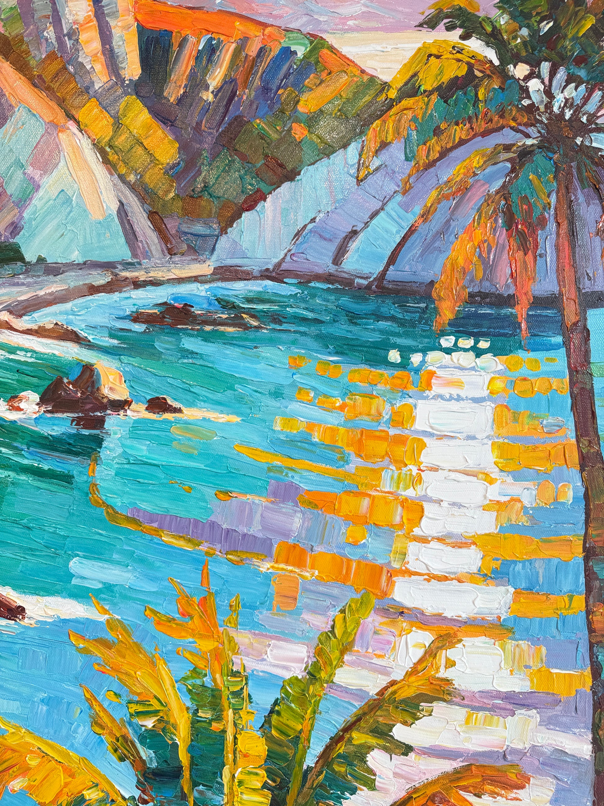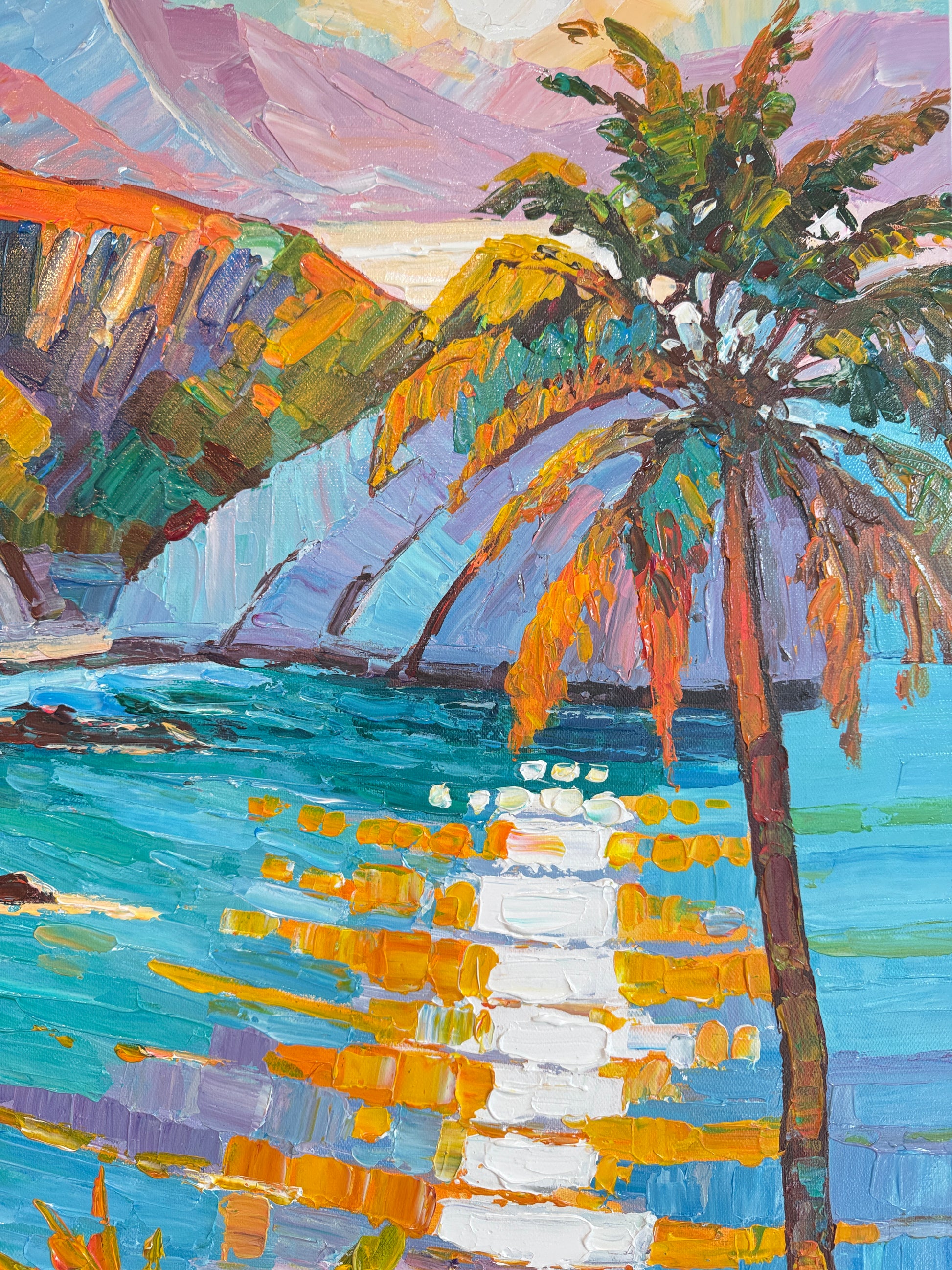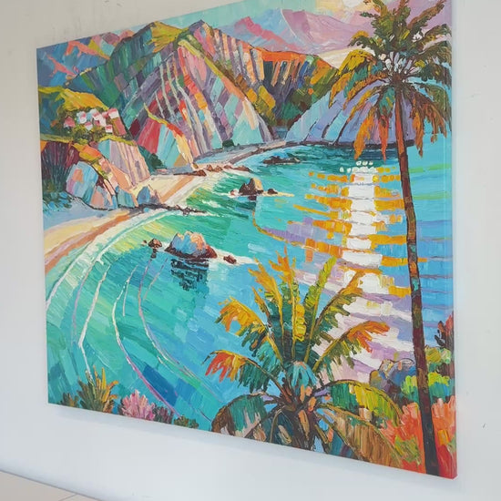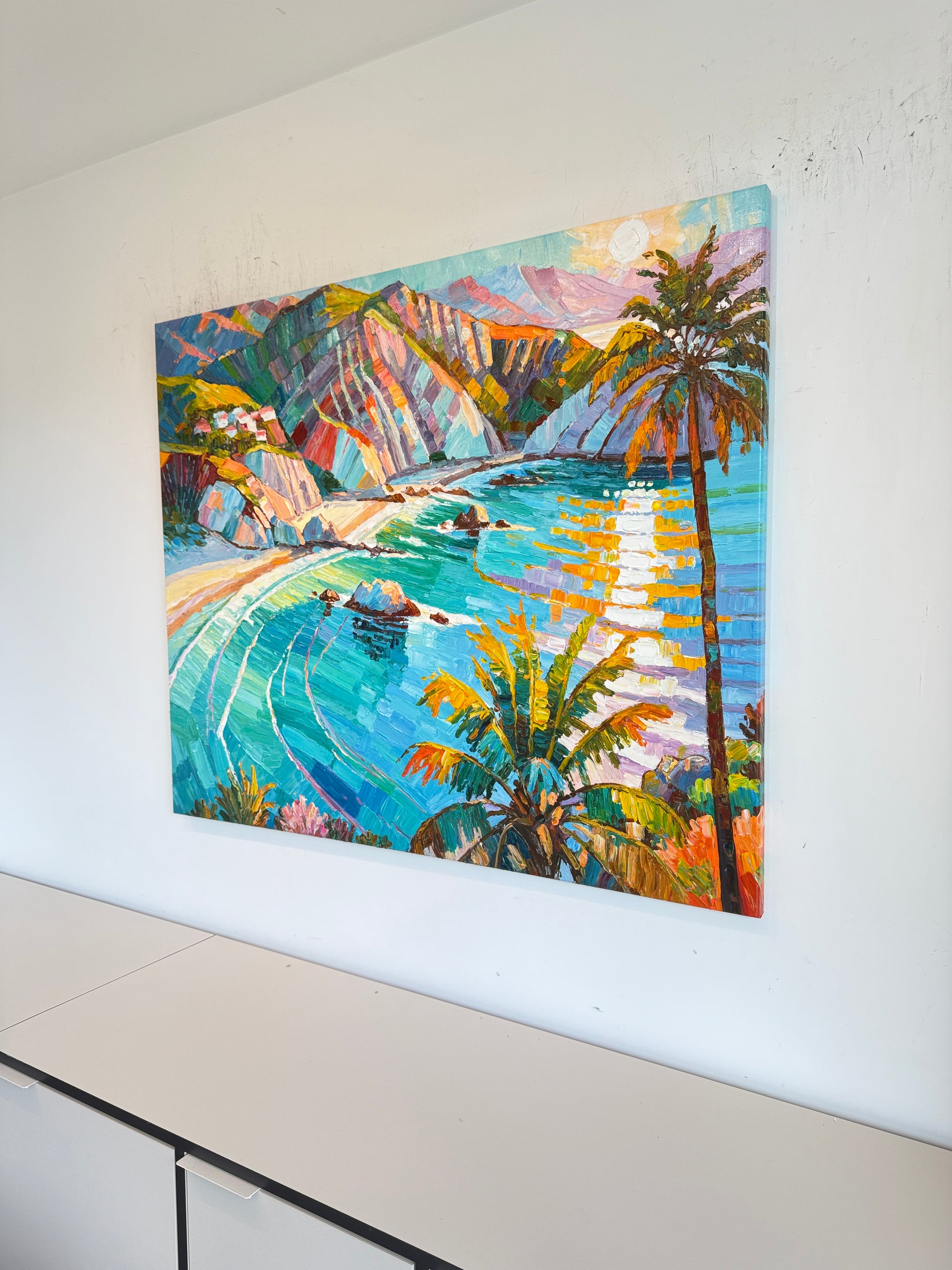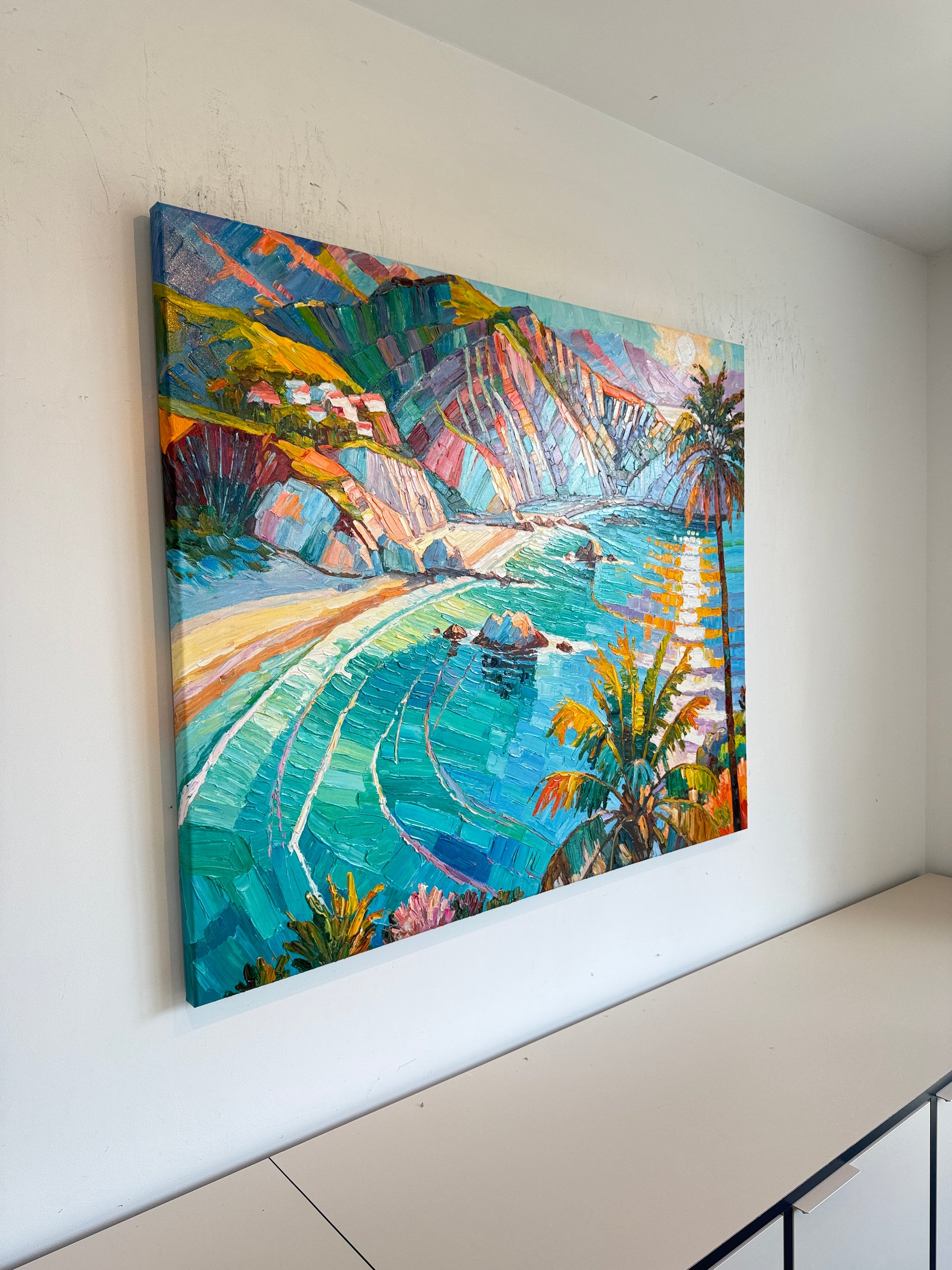Within her impressionist landscape paintings, Katharina Husslein's experiences abroad truly come to light. These textural and abstract paintings perfectly capture the vibrancy and movement included in a coastal sunset. This series differs from Husslein’s more controlled and smoother still life floral series which derives a more direct inspiration from art history and flower photography.