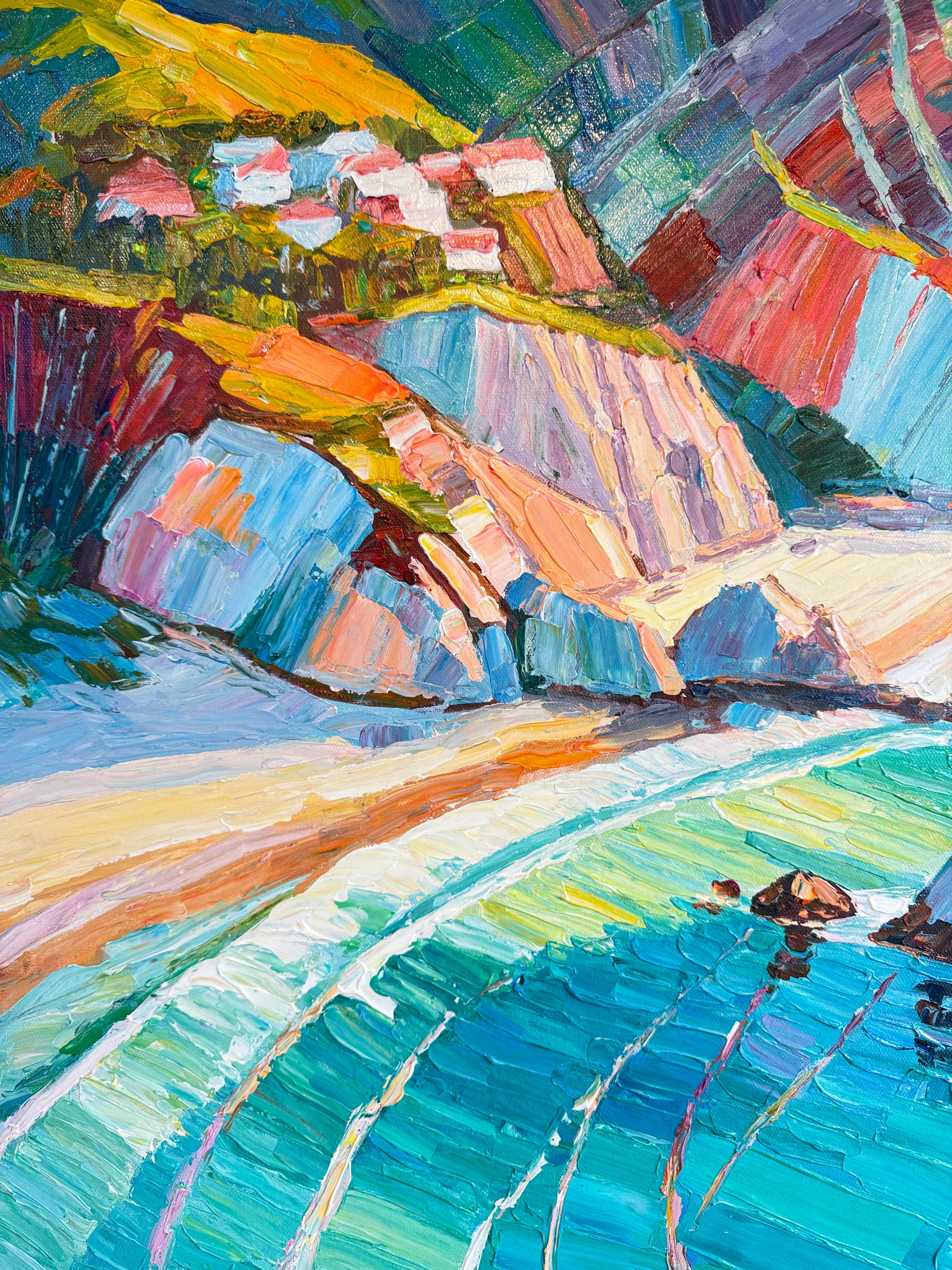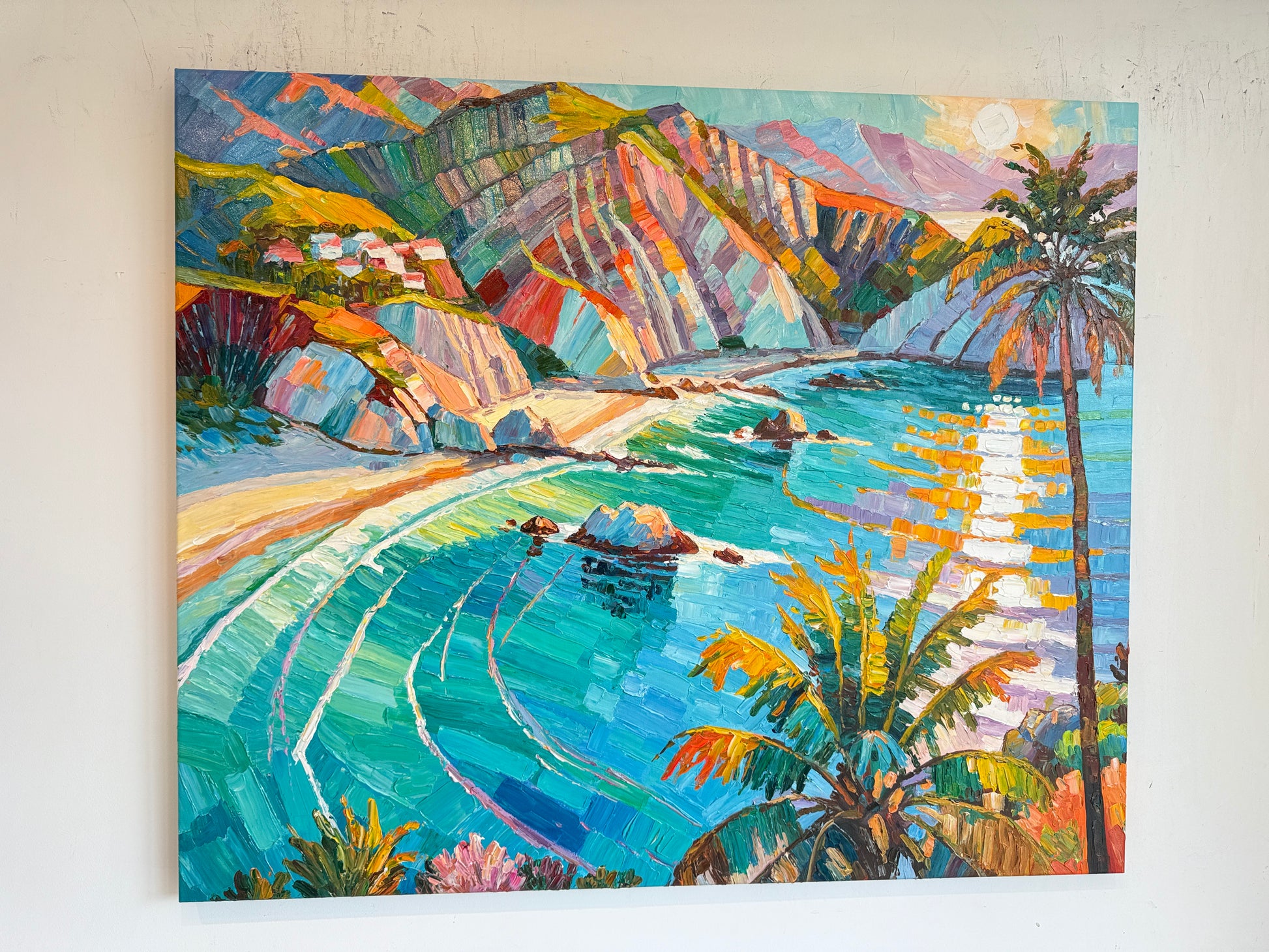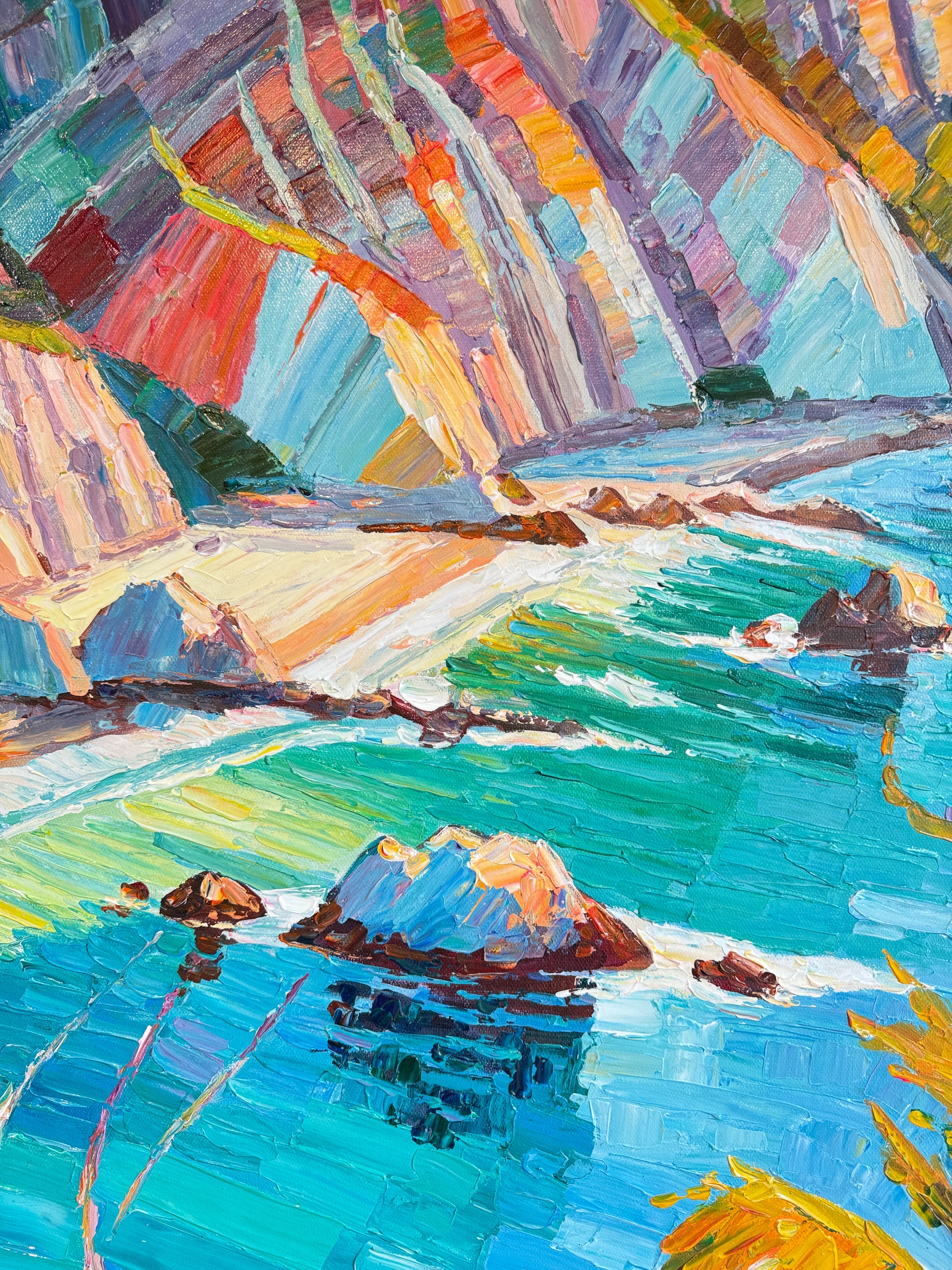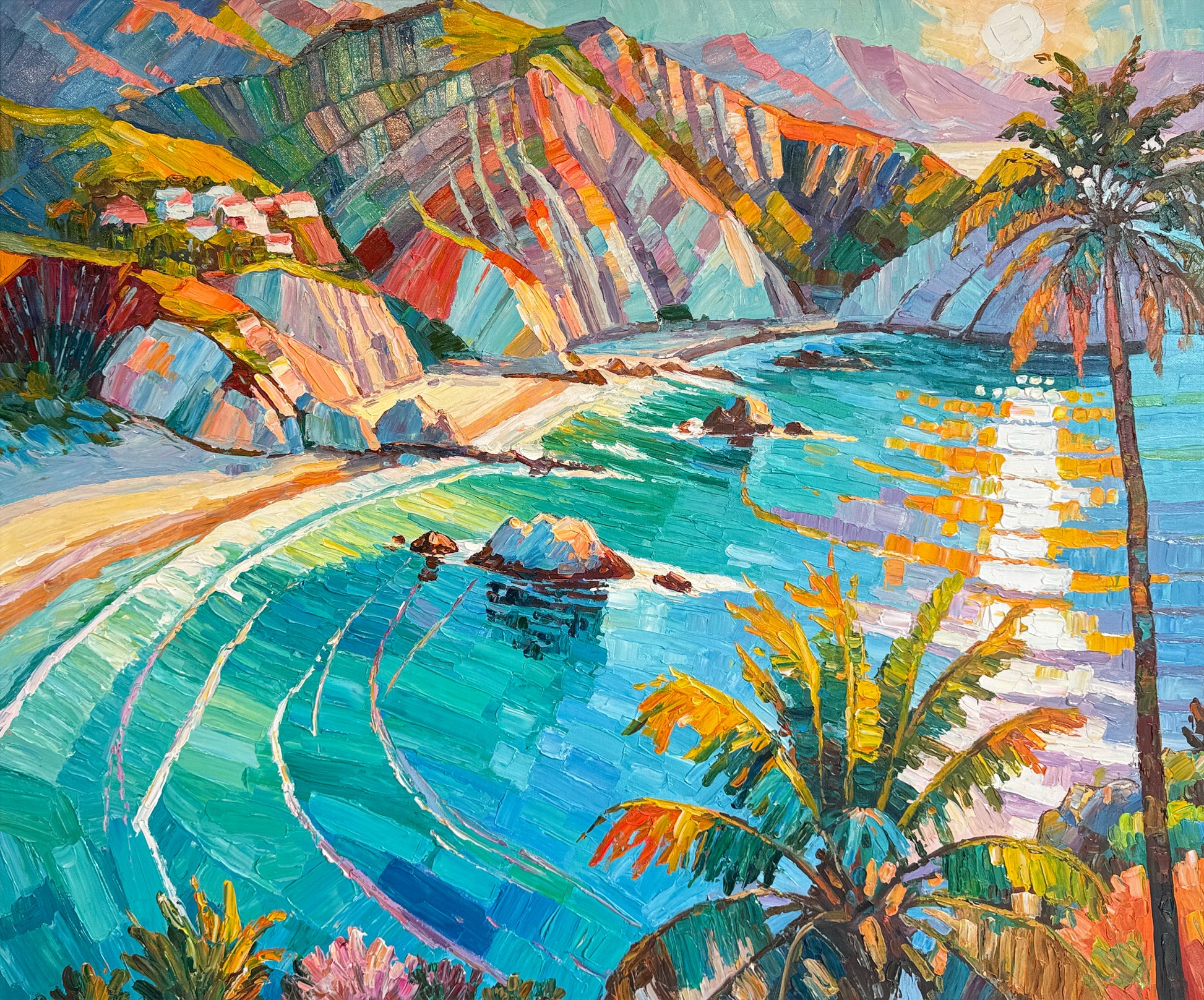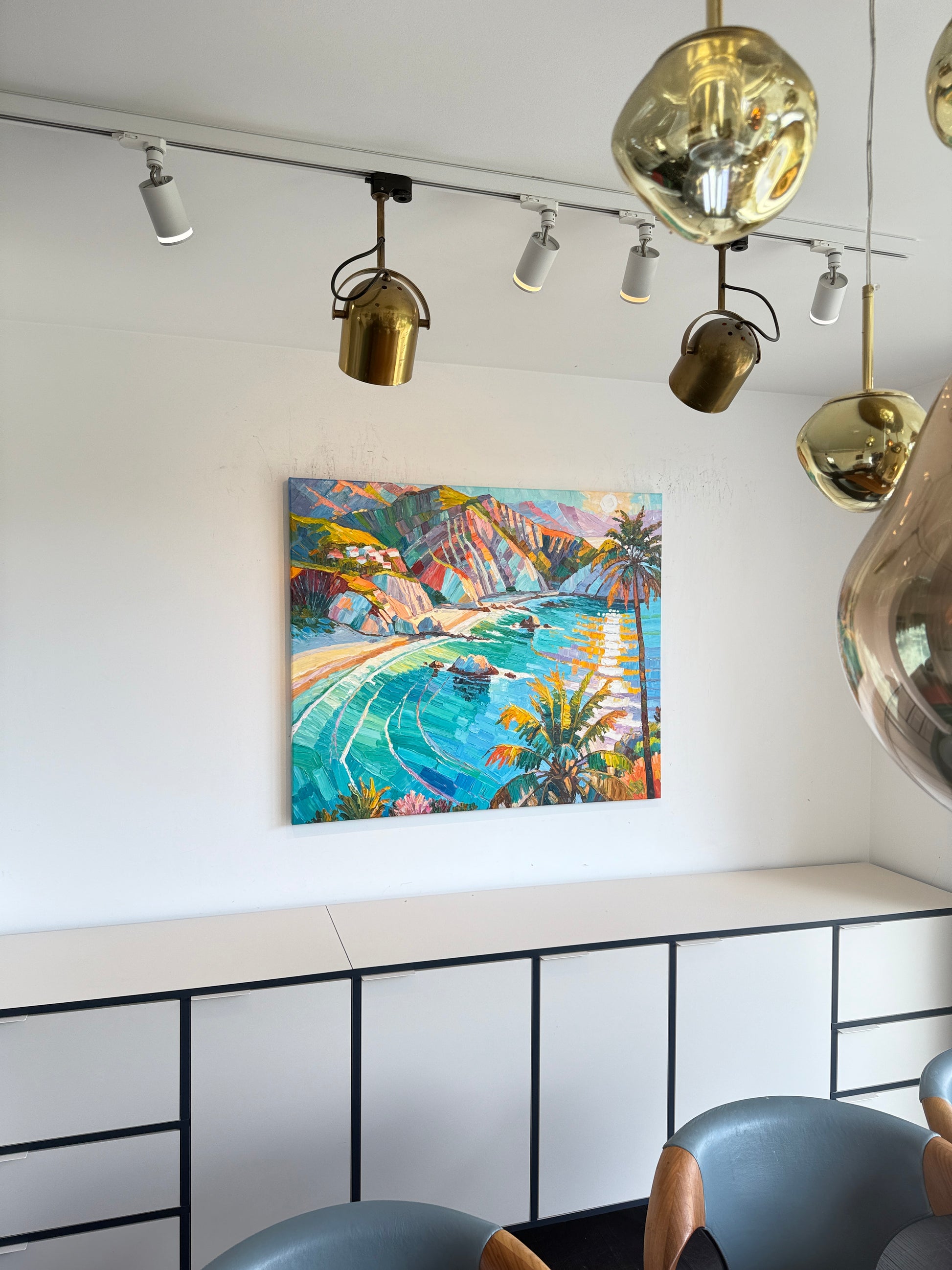 Within her impressionist landscape paintings, Katharina Husslein's experiences abroad truly come to light. These textural and abstract paintings perfectly capture the vibrancy and movement included in a coastal sunset. This series differs from Husslein’s more controlled and smoother still life floral series which derives a more direct inspiration from art history and flower photography.