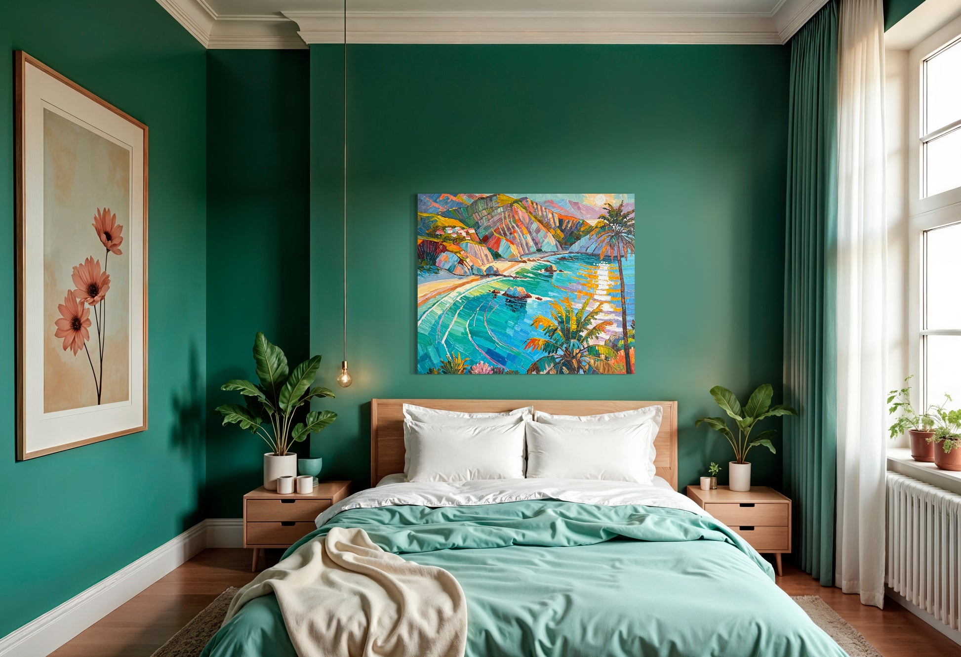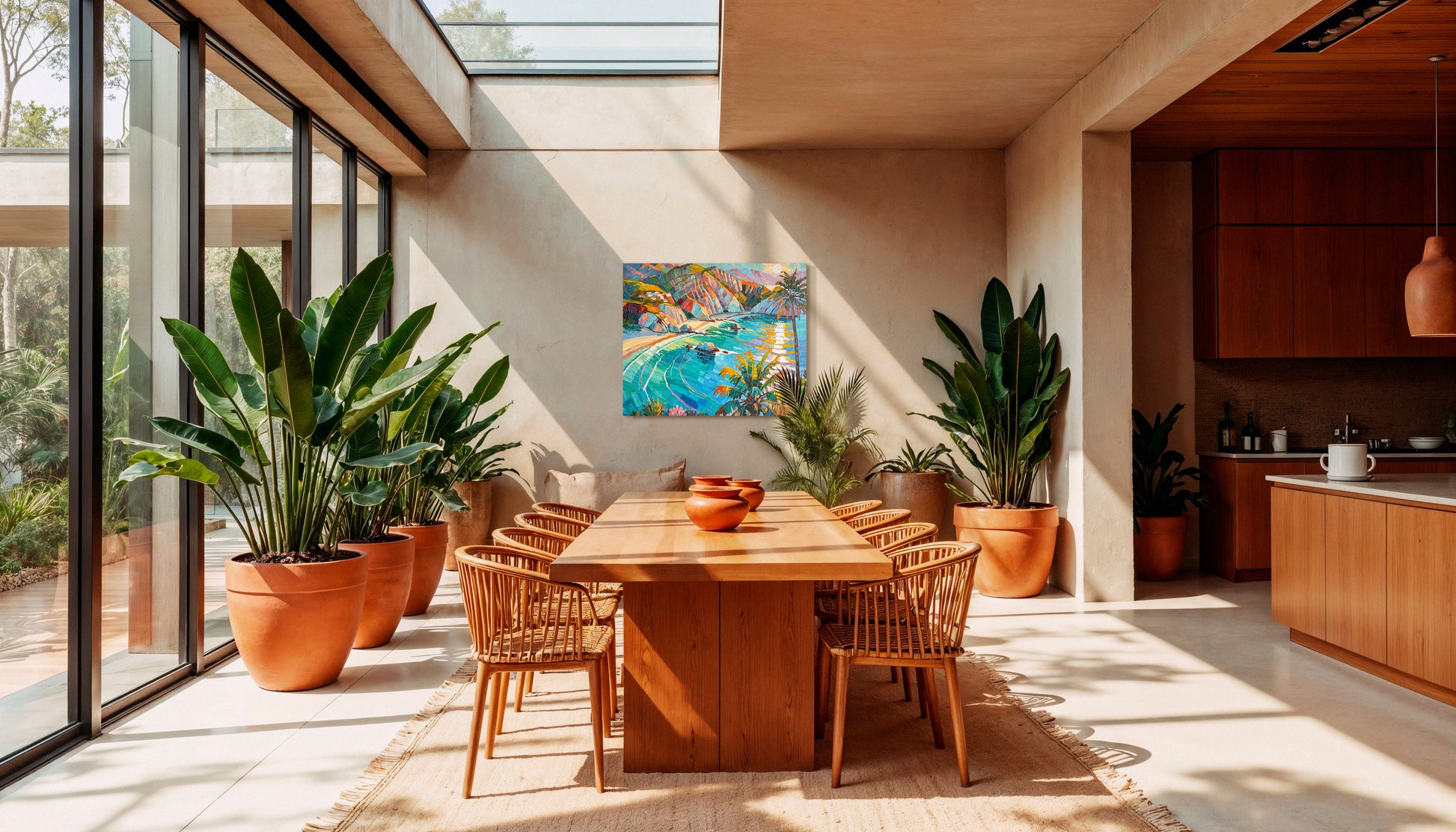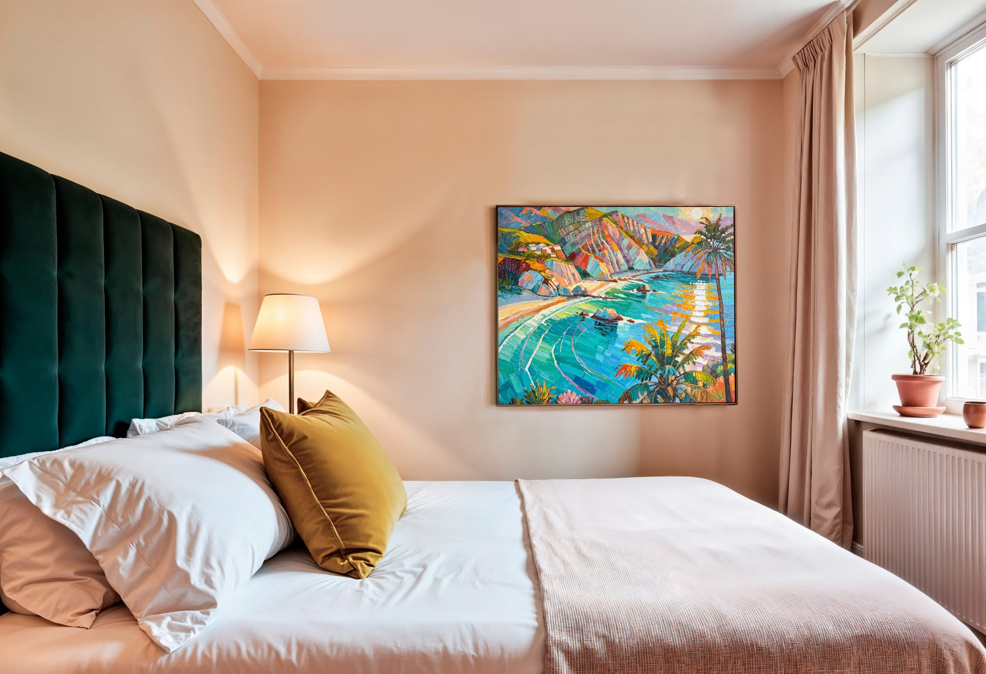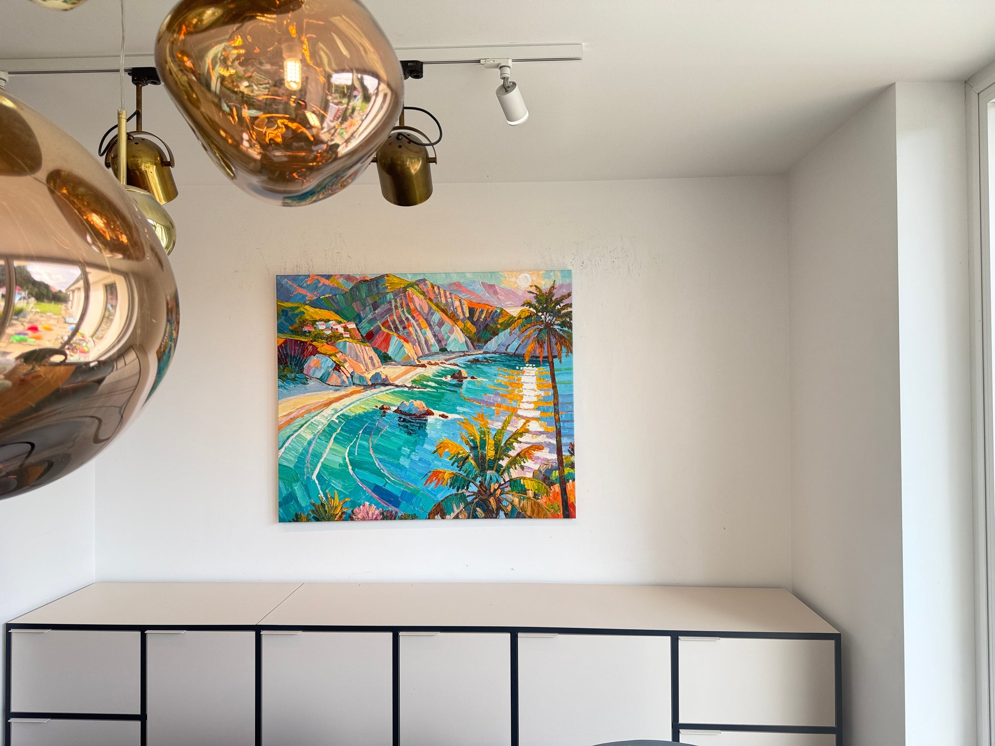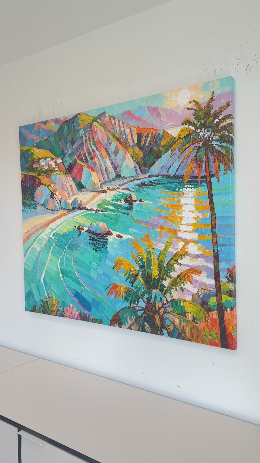 Within her impressionist landscape paintings, Katharina Husslein's experiences abroad truly come to light. These textural and abstract paintings perfectly capture the vibrancy and movement included in a coastal sunset. This series differs from Husslein’s more controlled and smoother still life floral series which derives a more direct inspiration from art history and flower photography.