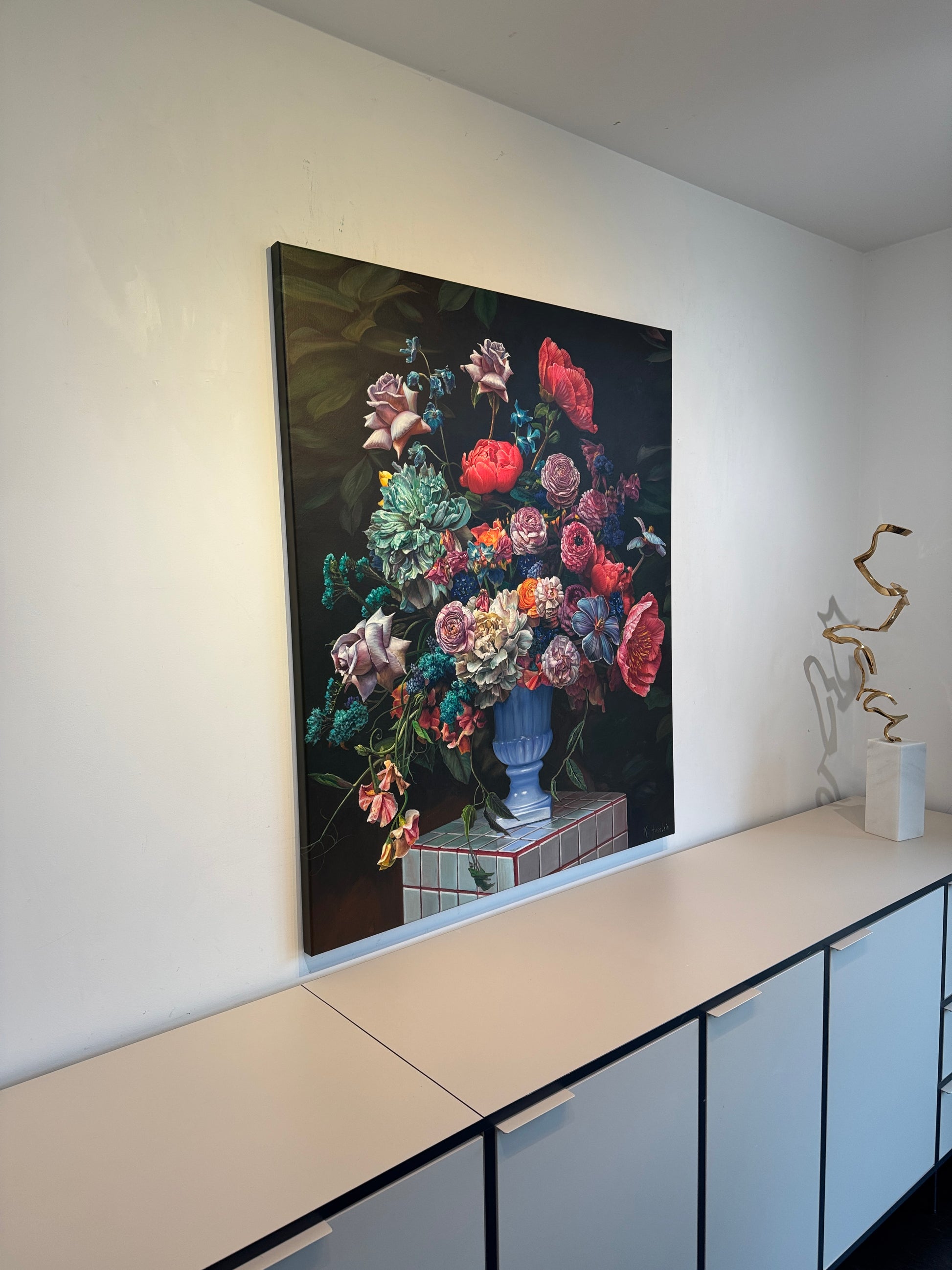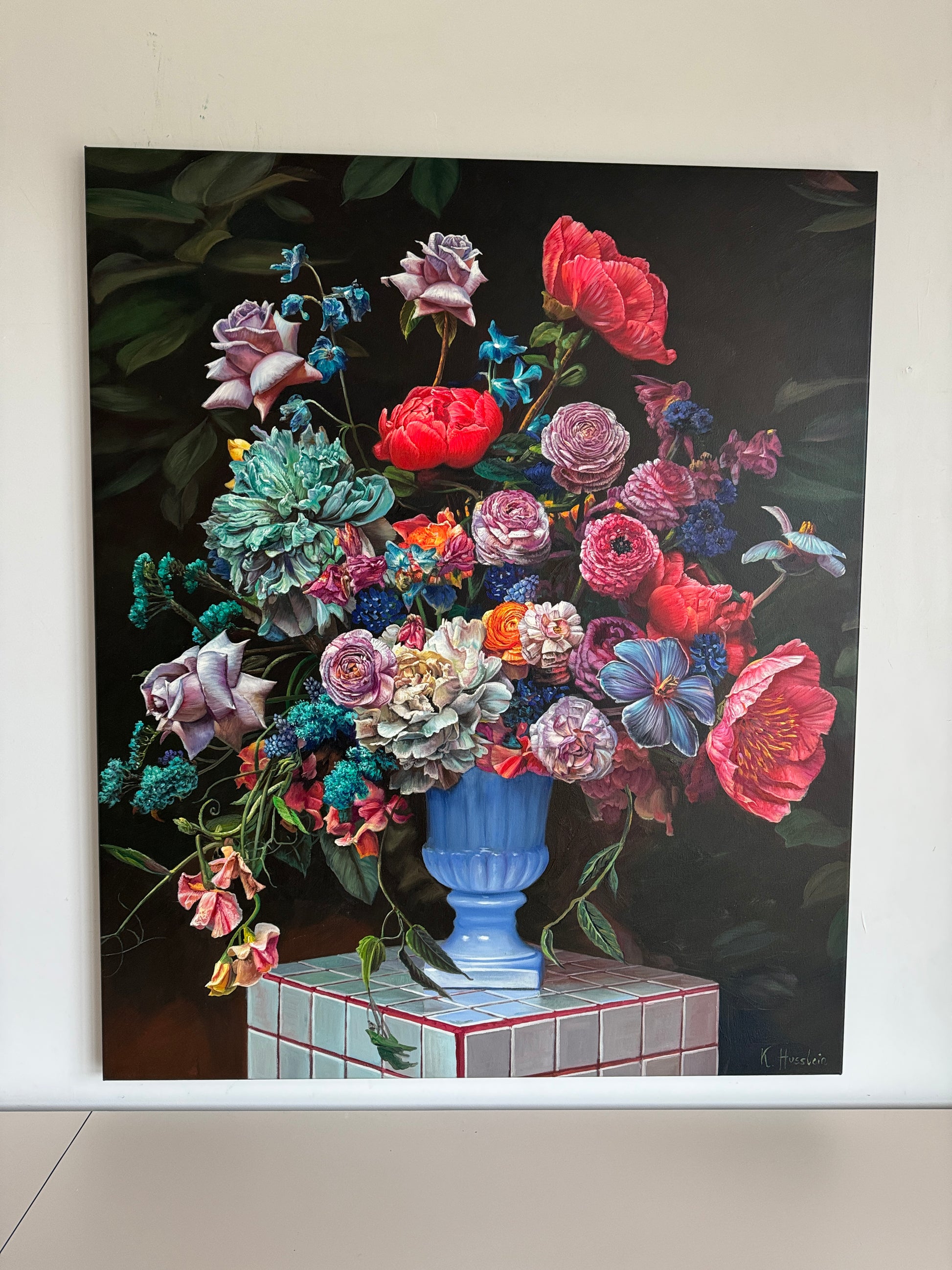 Husslein's artistic philosophy marries a reverence for classical masterpieces with the immersive allure of contemporary still life and botany. Her signature style is characterized by meticulous hyperrealism, particularly evident in her still-life floral compositions. Central to her creations are the visual and tactile attributes of flowers, intertwined with their symbolism evoking themes of love, femininity, and the natural world. These elements coalesce to fashion Husslein's vivacious and captivating compositions.