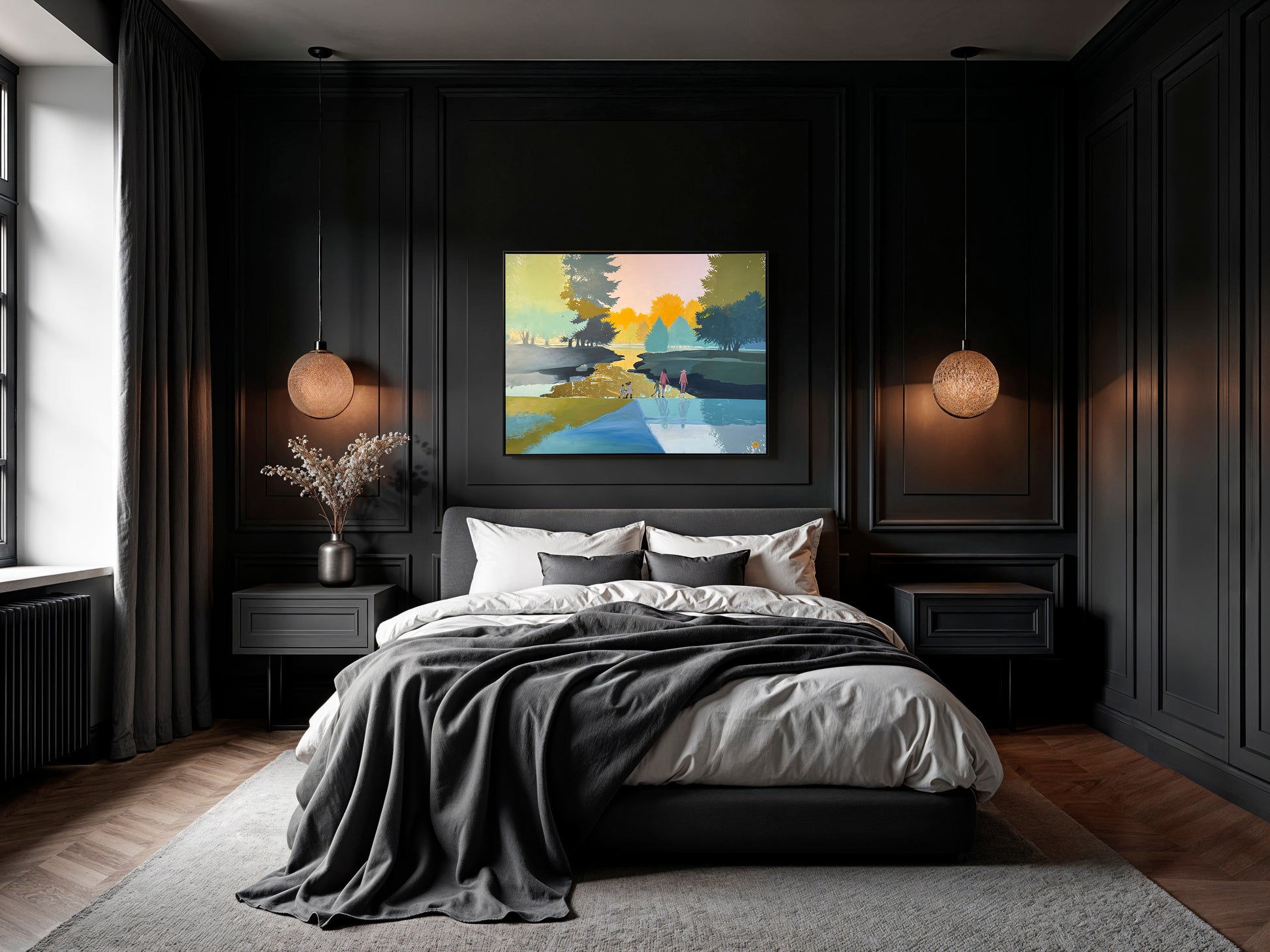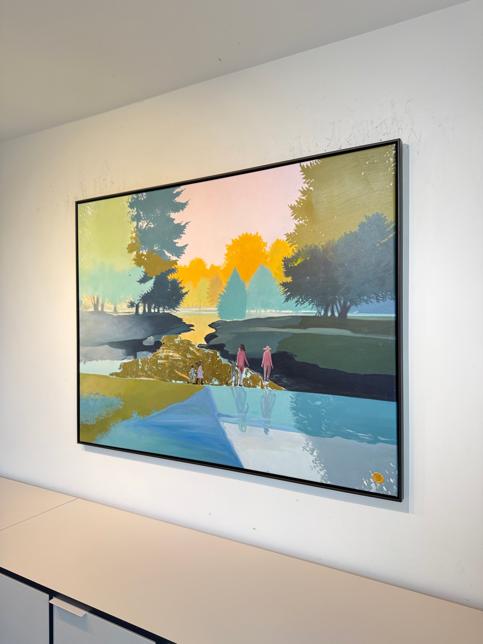 The gold changes depending on the light and makes for a warm contrast to the black, white and grey. Elegant in their color scheme Hormel's paintings are beautifully contemporary and unobtrusive, yet full of life, happiness and details.