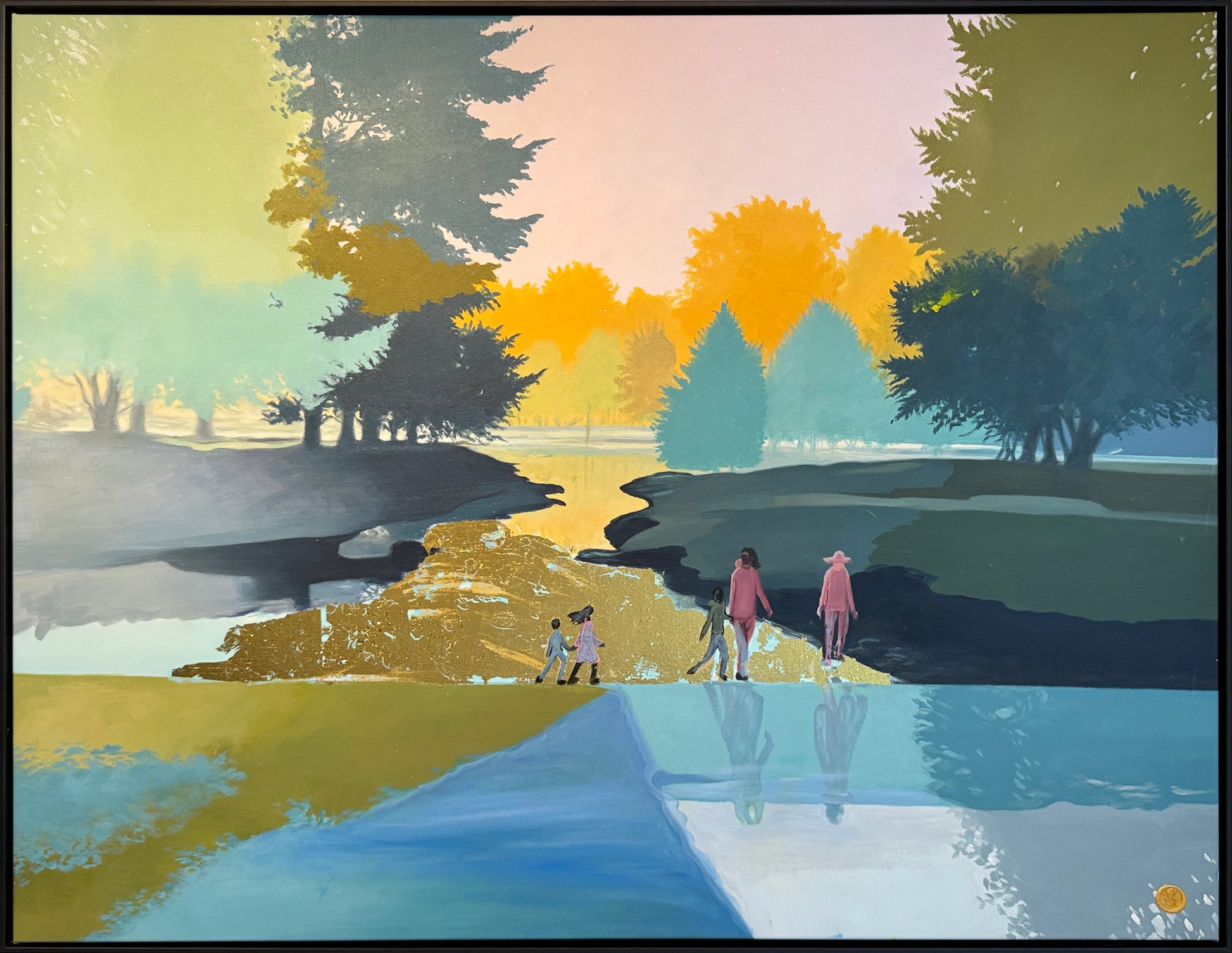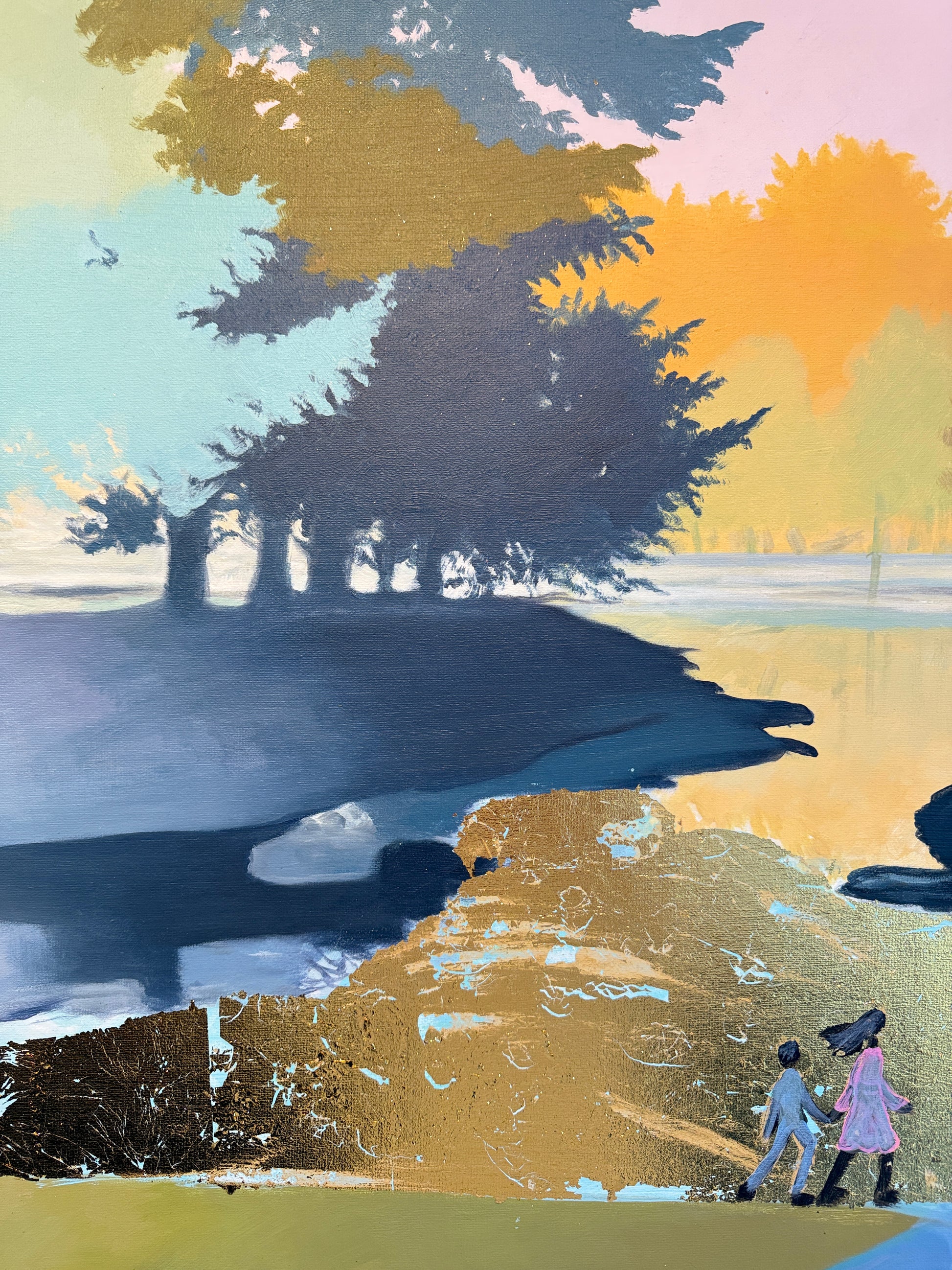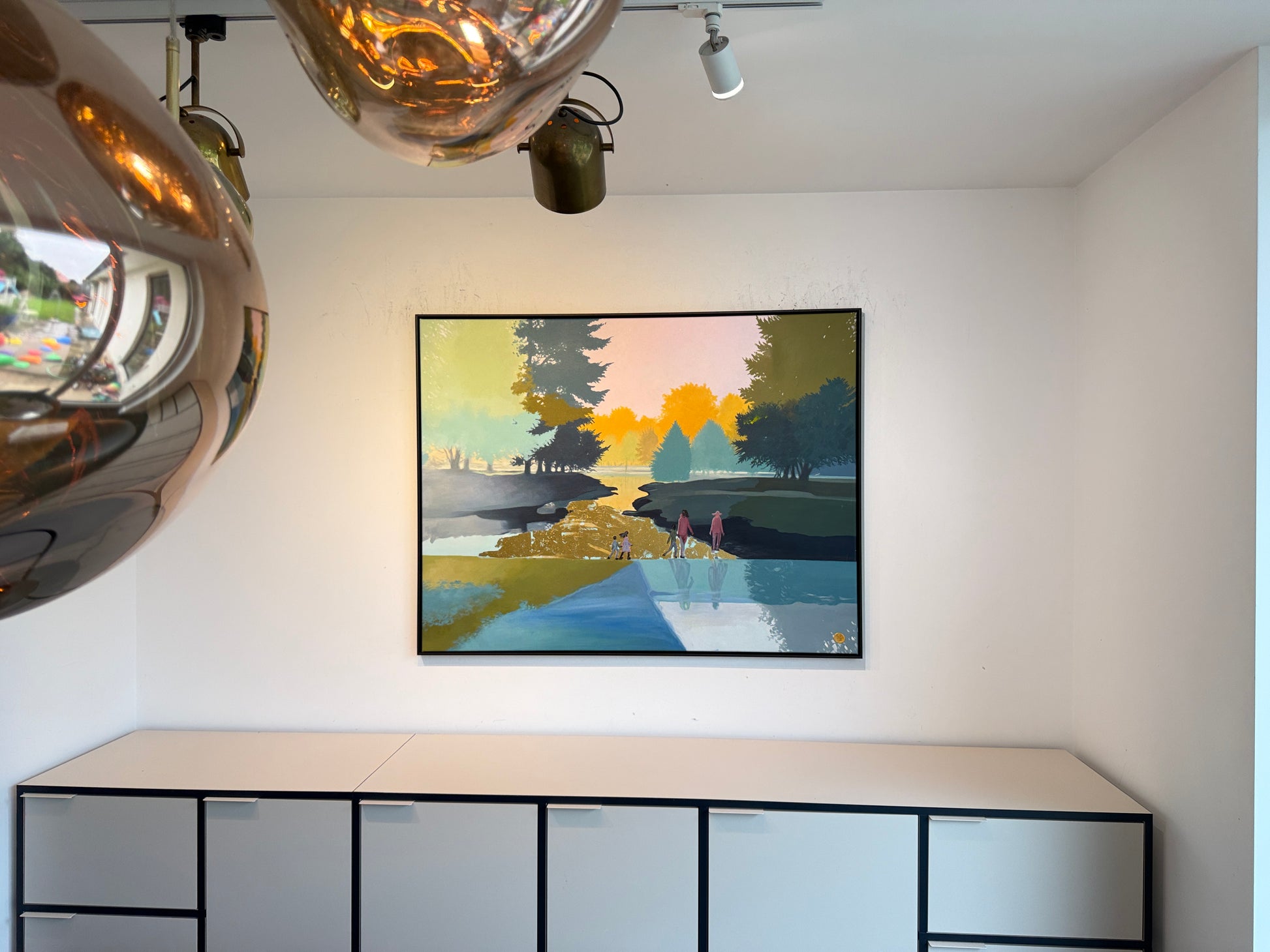 Katharina Hormel paints minimalistic every day scenes of life. The people she portrays are out and about going about their daily life, enjoying a walk in the park, cycling, playing football etc.