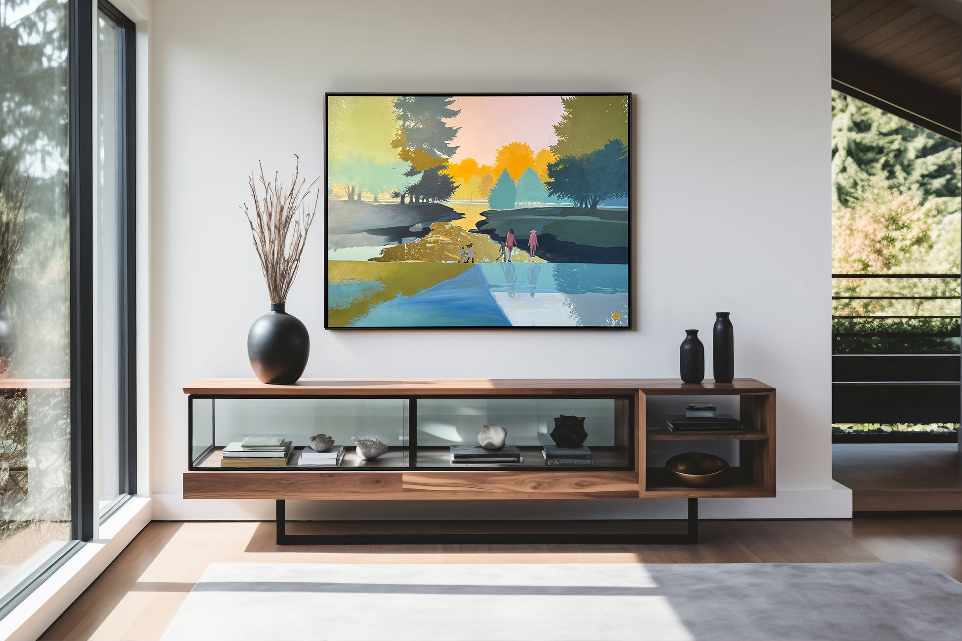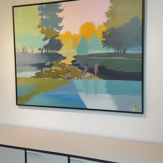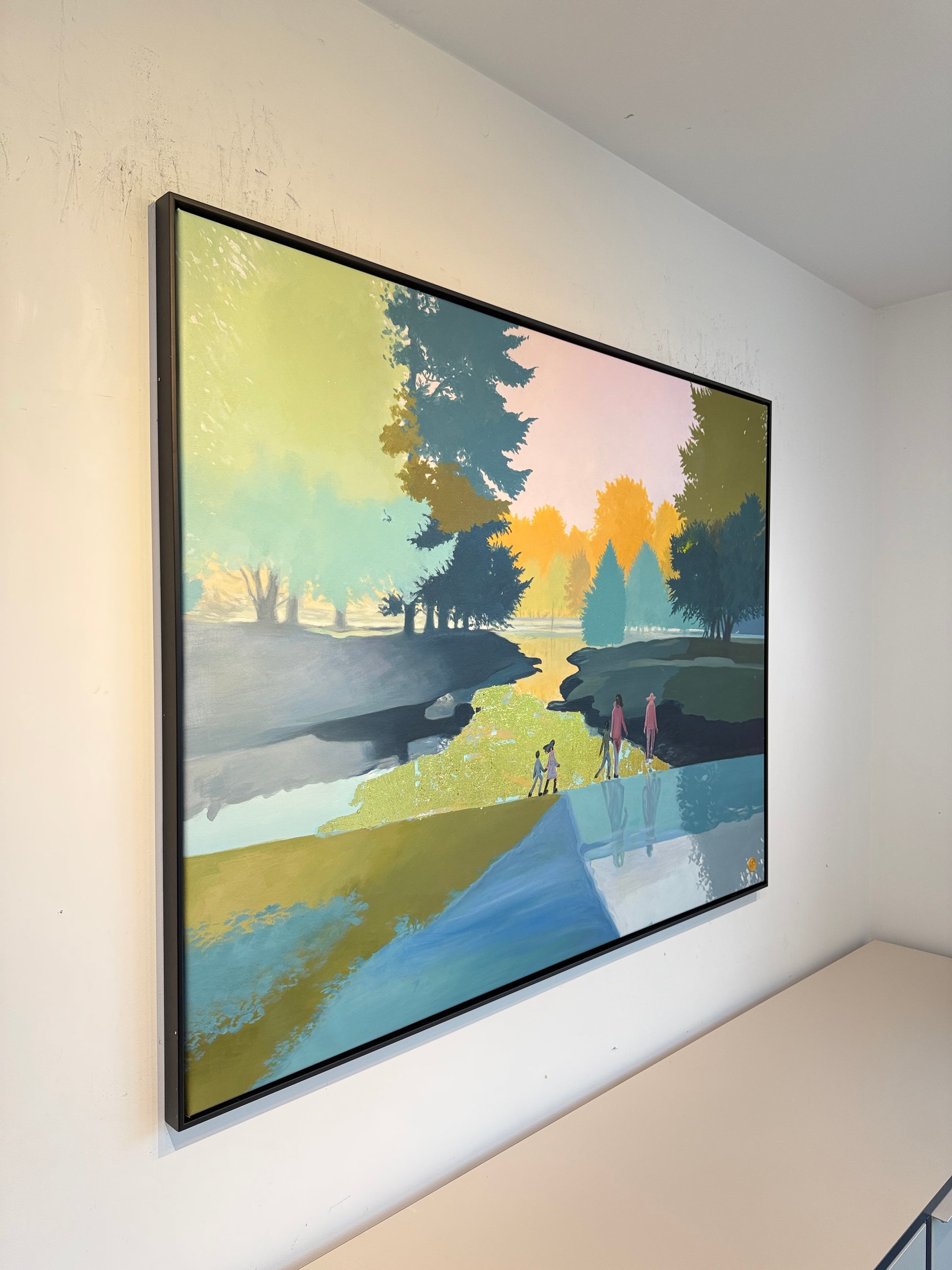 Katharina Hormel paints minimalistic every day scenes of life. The people she portrays are out and about going about their daily life, enjoying a walk in the park, cycling, playing football etc.