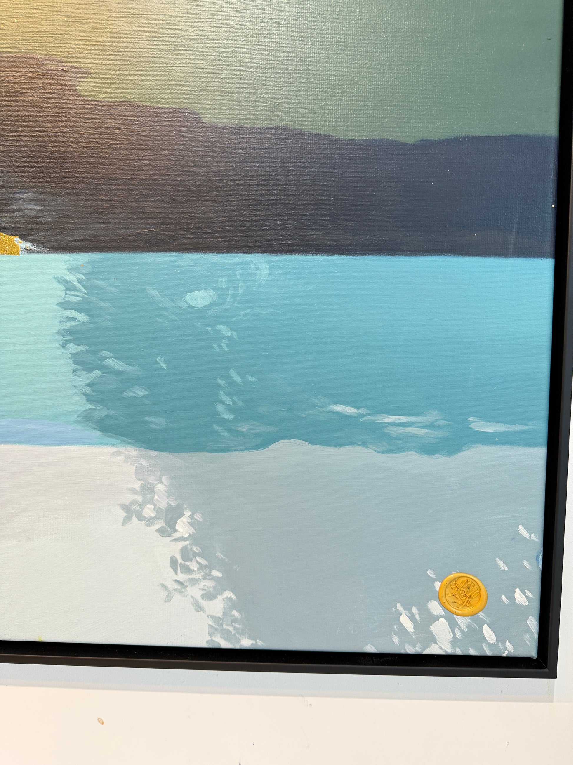 Medium: Acrylics, Waterbased Oil, Spraypaint on Linen Canvas in wood shadow box frame