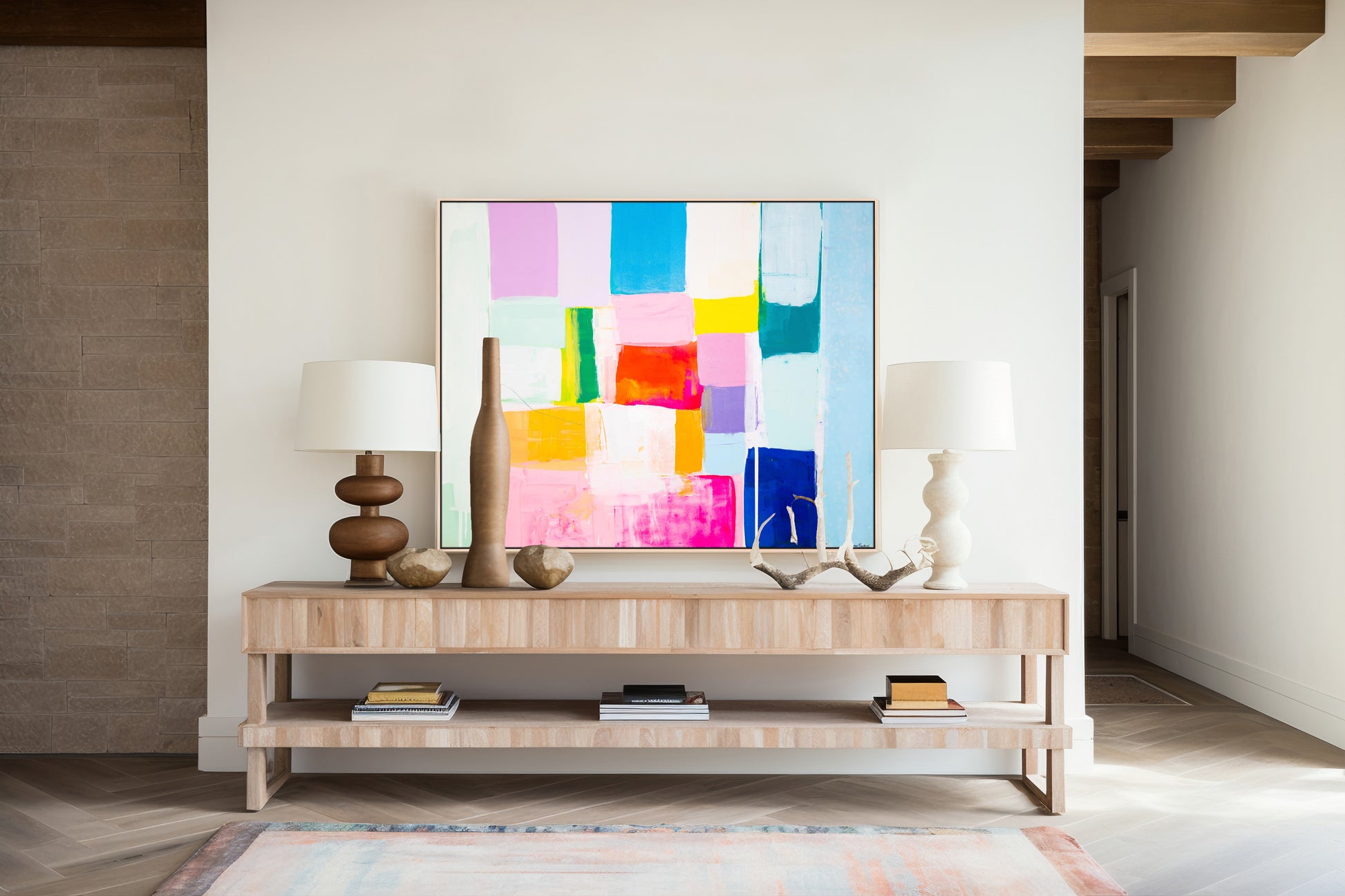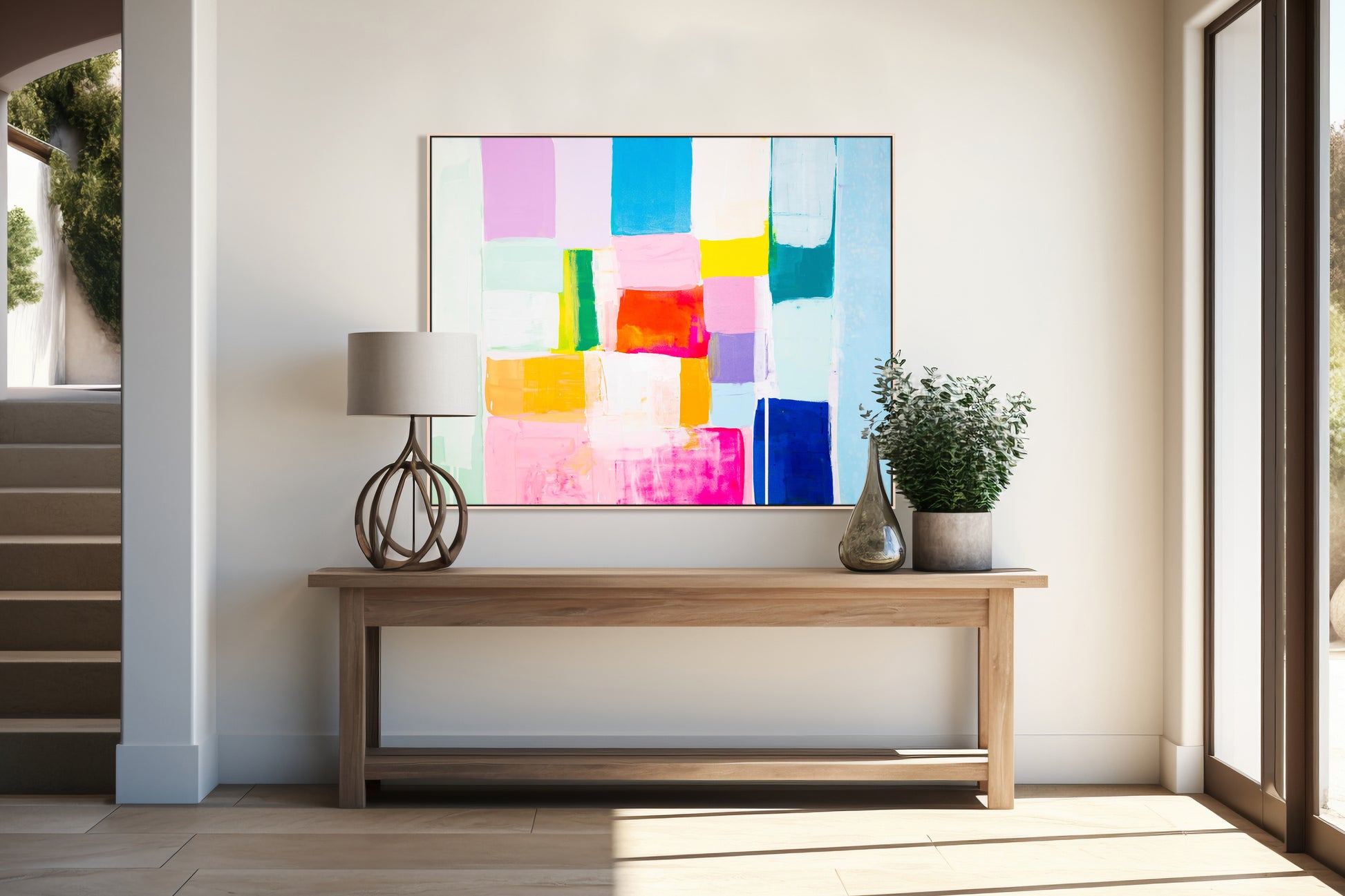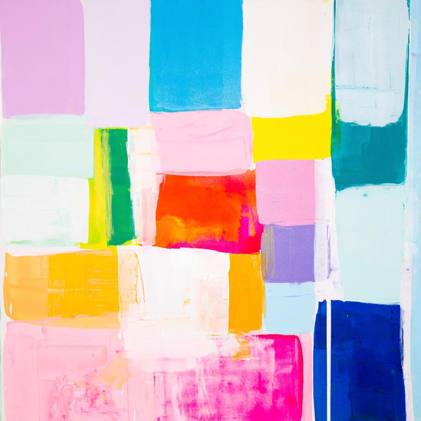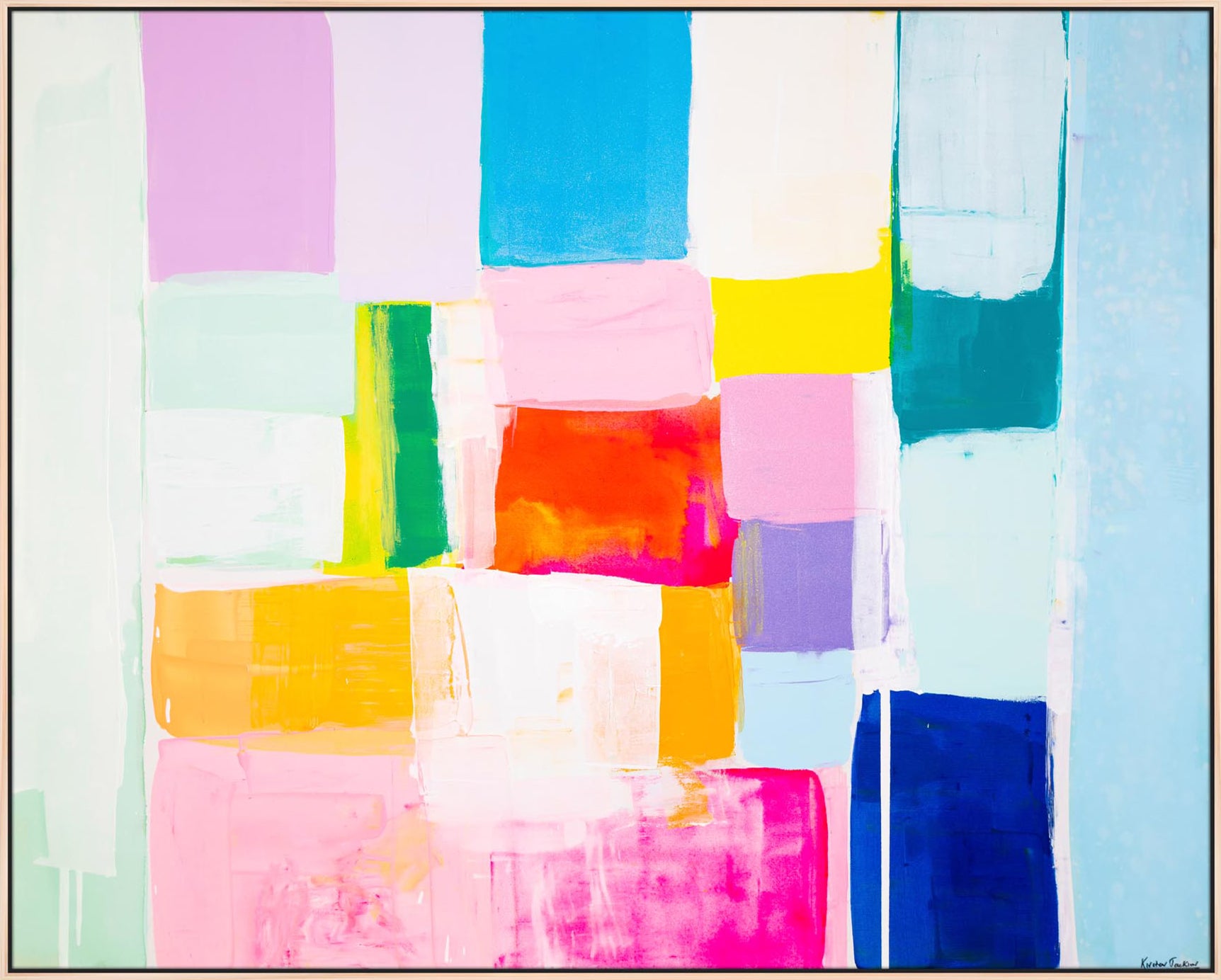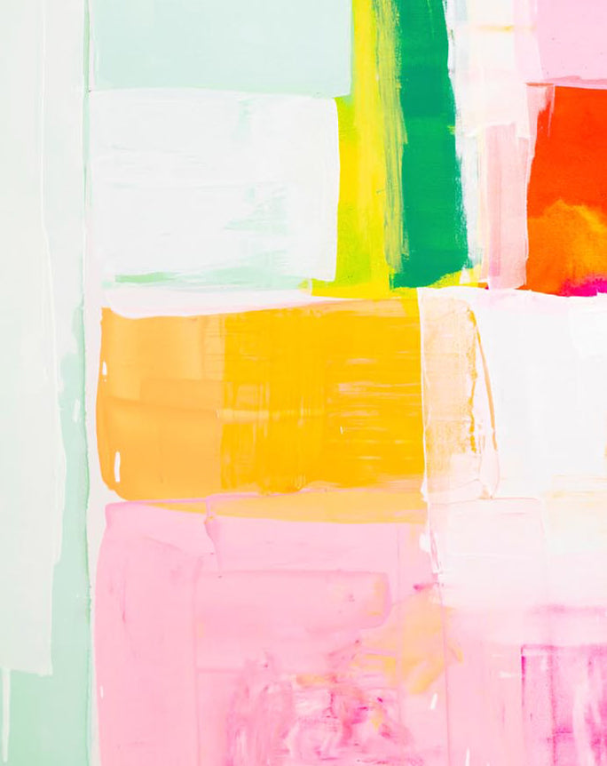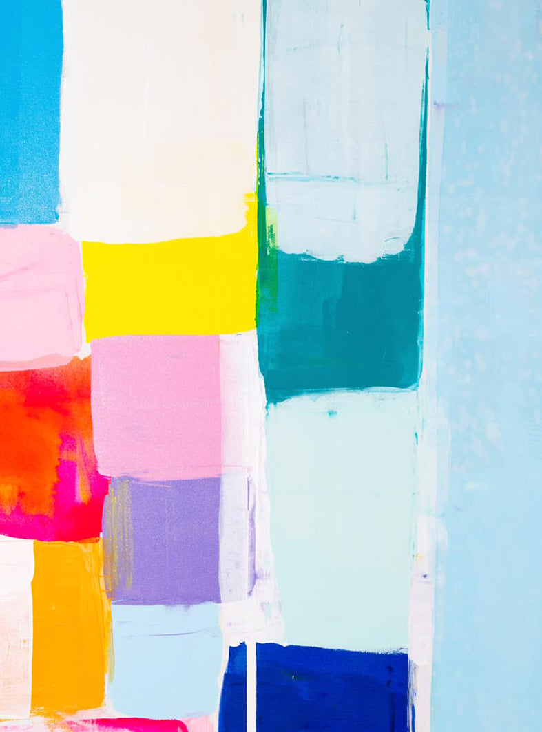 Kirsten Jackson creates vibrant abstract paintings filled with sunny color blocks, showcasing her contemporary and original style. Fiercely independent, this Australian artist aims to fill the world with radiant beacons of painted happiness!