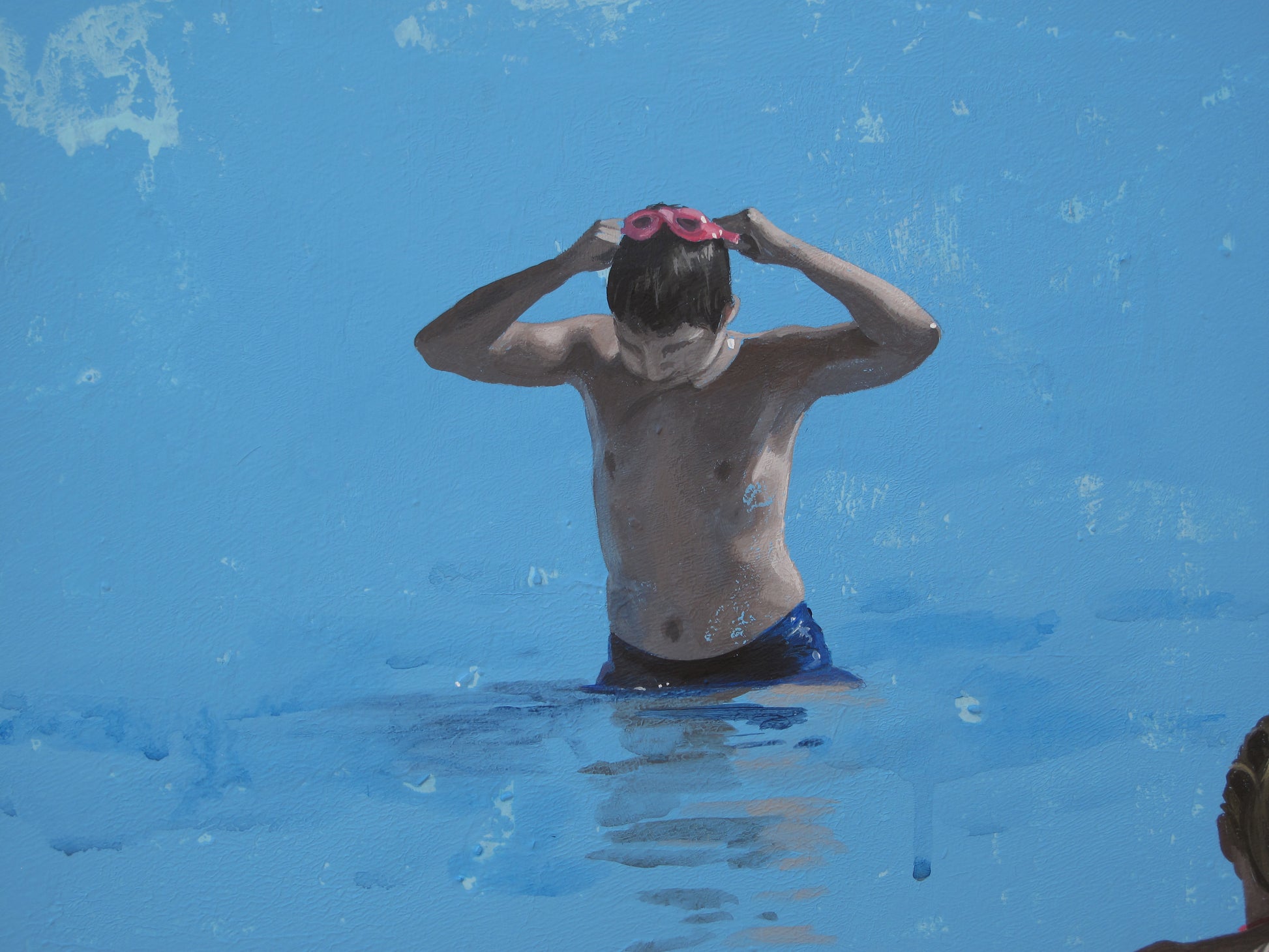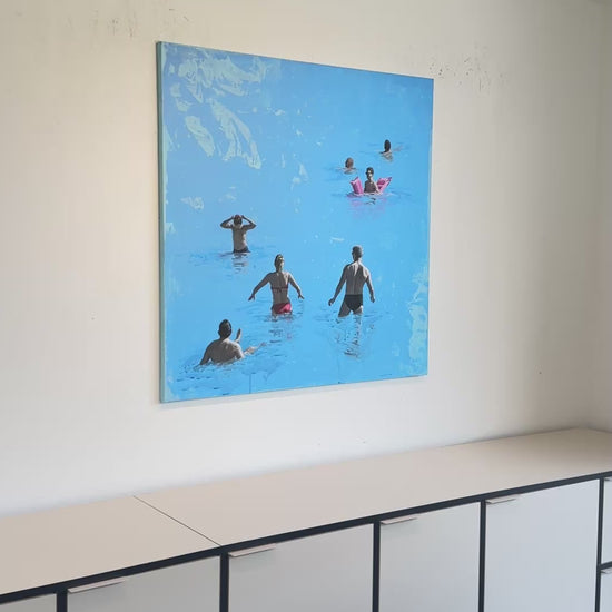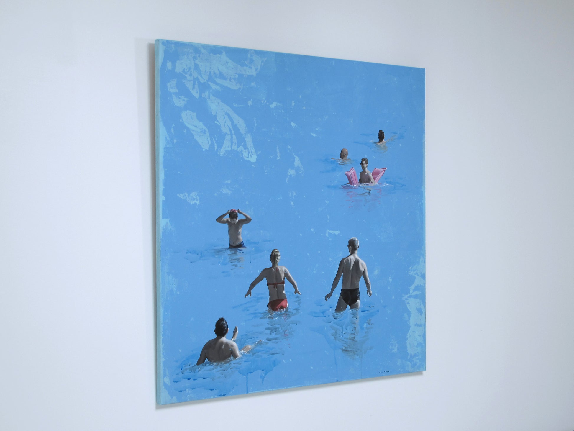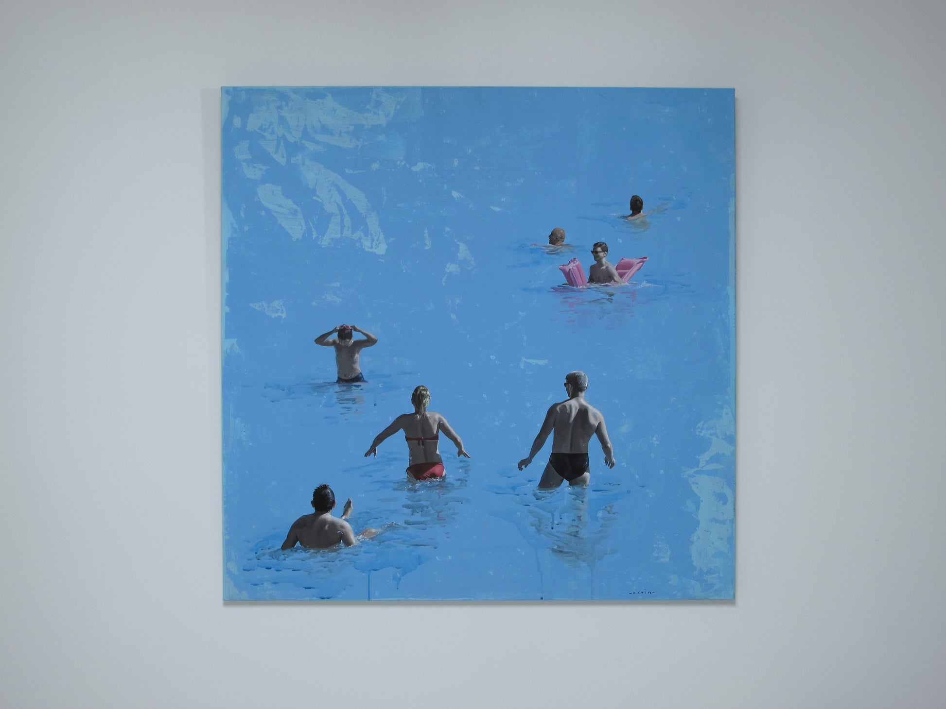 Drawing inspiration from her surroundings, loved ones, and public spaces, she captures photographs that serve as the foundation for composing and creating her paintings. Her recent works depict men, women, and sometimes children, often alone in a clear, abstract environment, placed in situations that reflect the contemporary world. However, her intention is not to tell a specific story. "Everything is open, possible," she says. "Each person can interpret these scenes as they wish. The canvas shows nothing beyond what we see. These people are simply there. We observe them, but in reality, it is a reflection of ourselves, the canvas is a mirror. What matters to me is capturing a moment of stillness, one that can reveal something in each of us."