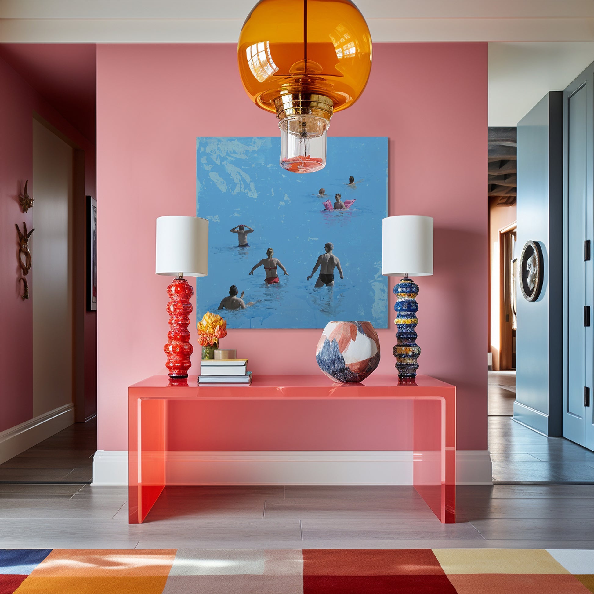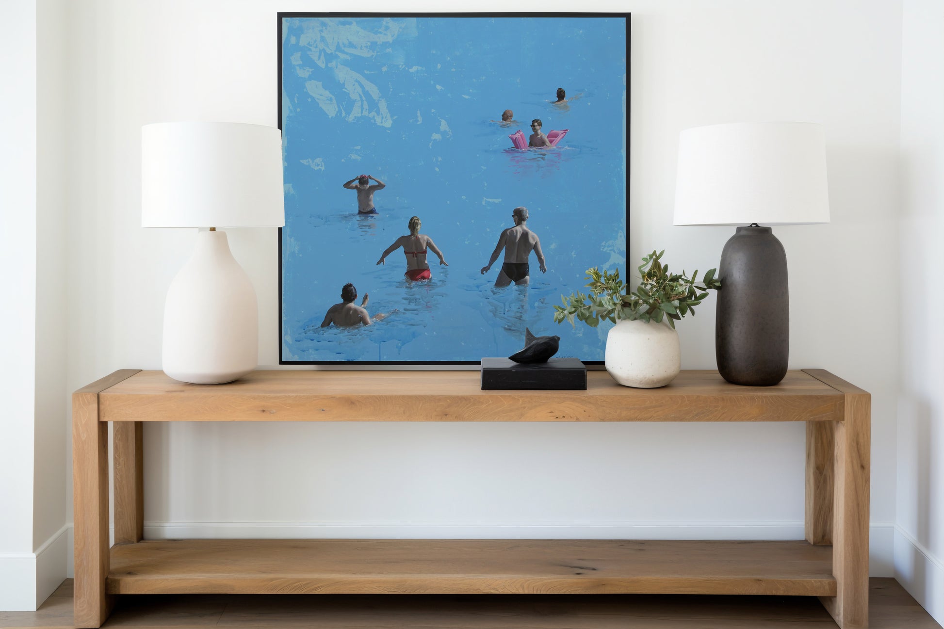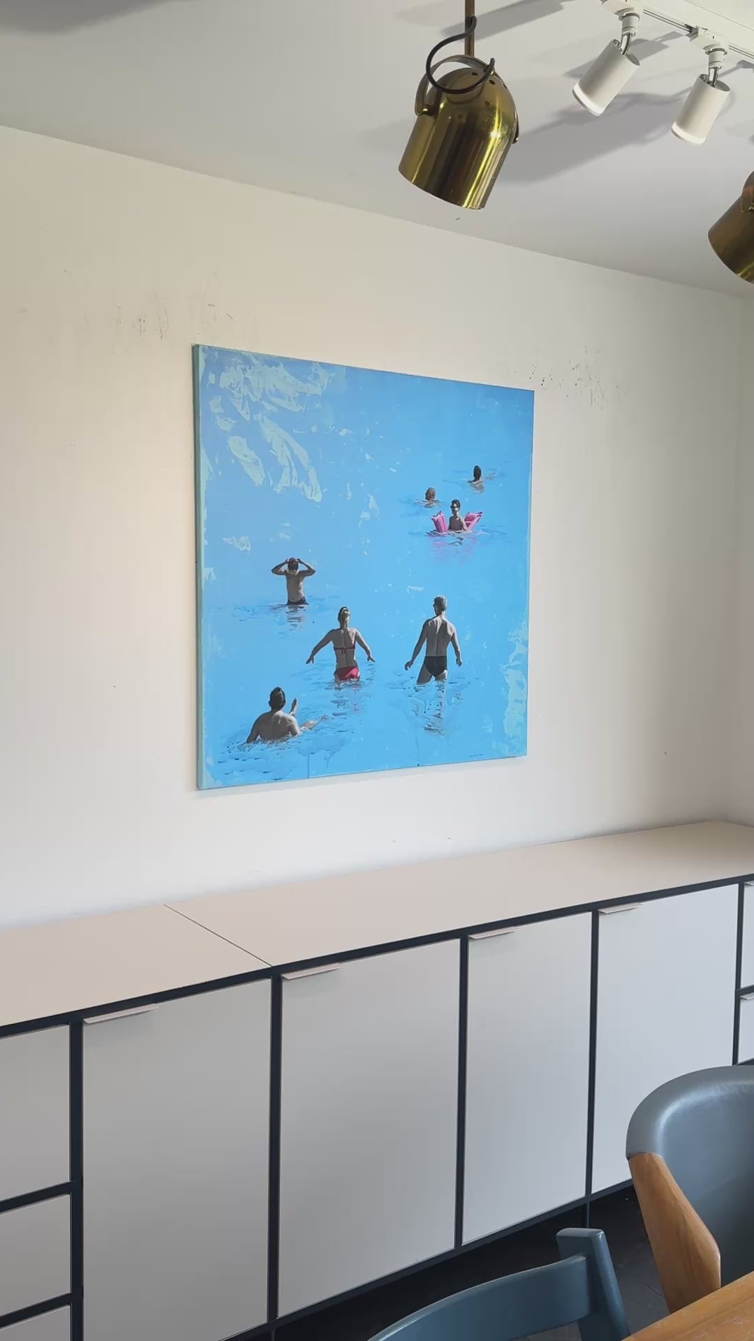 Drawing inspiration from her surroundings, loved ones, and public spaces, she captures photographs that serve as the foundation for composing and creating her paintings. Her recent works depict men, women, and sometimes children, often alone in a clear, abstract environment, placed in situations that reflect the contemporary world. However, her intention is not to tell a specific story. "Everything is open, possible," she says. "Each person can interpret these scenes as they wish. The canvas shows nothing beyond what we see. These people are simply there. We observe them, but in reality, it is a reflection of ourselves, the canvas is a mirror. What matters to me is capturing a moment of stillness, one that can reveal something in each of us."