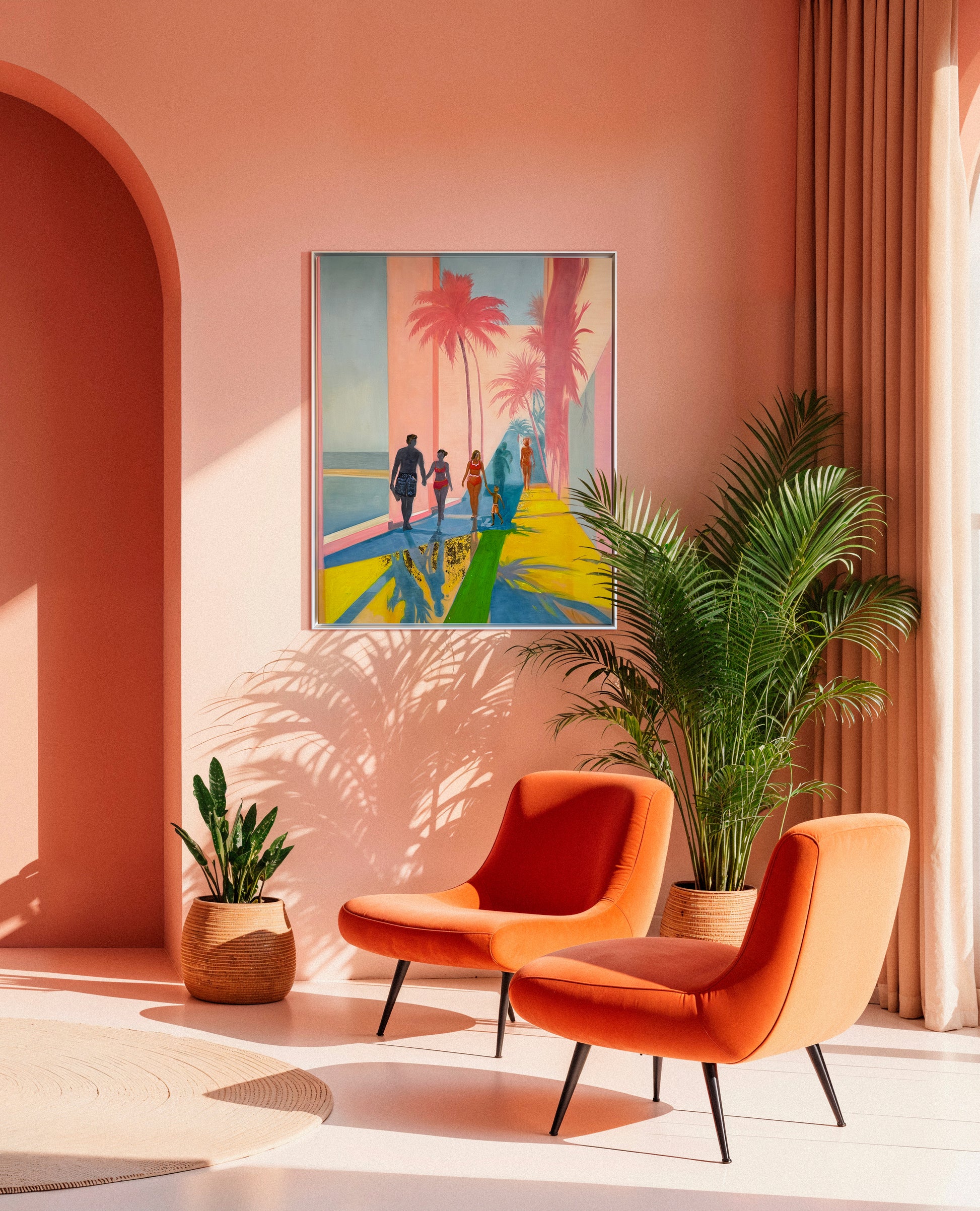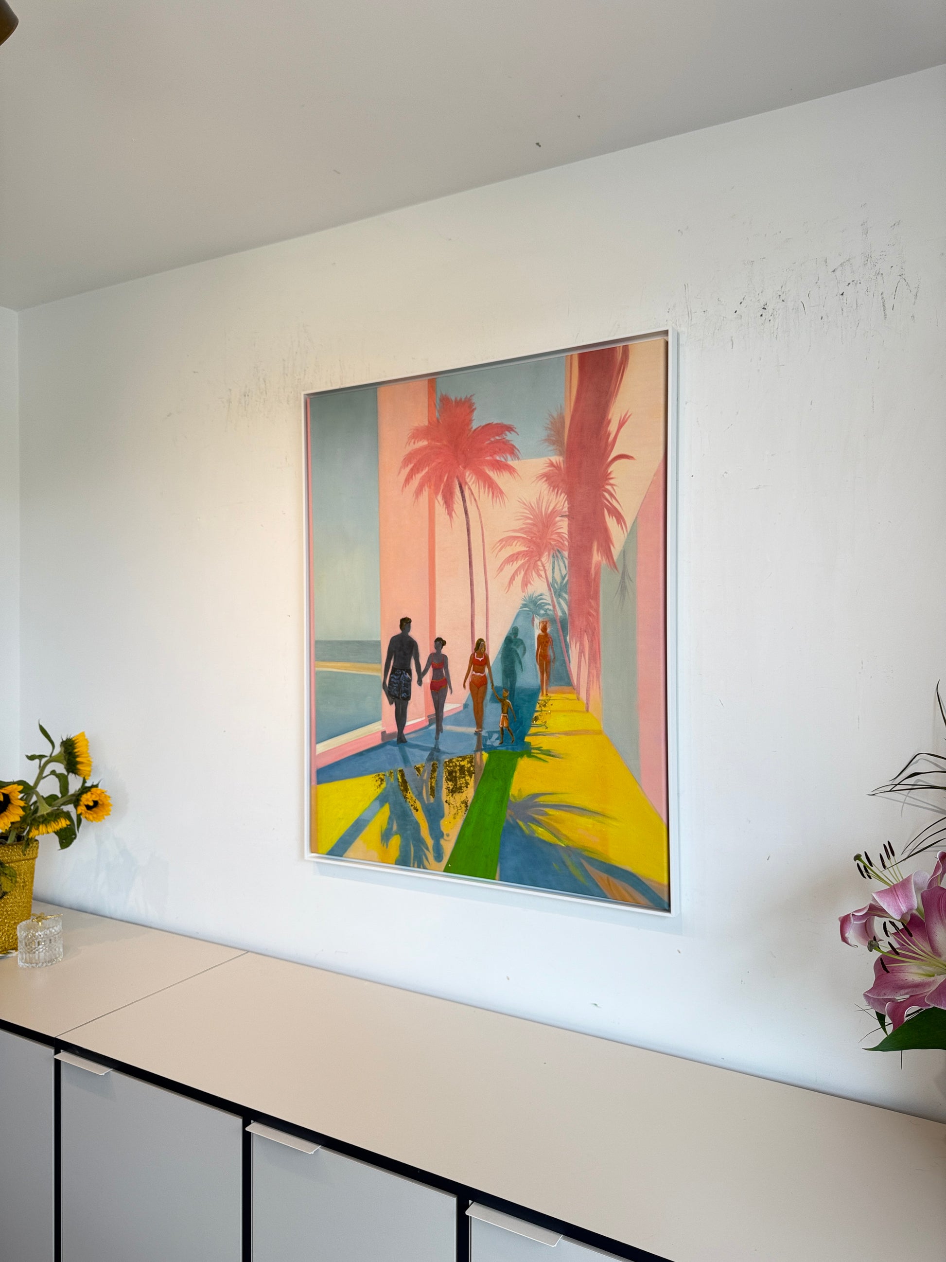 Unobtrusive yet full of movement, charm, and hidden details, Hormel’s work remains beautifully contemporary—now with a tropical twist that brings a sense of escape, happiness, and calm to every canvas.