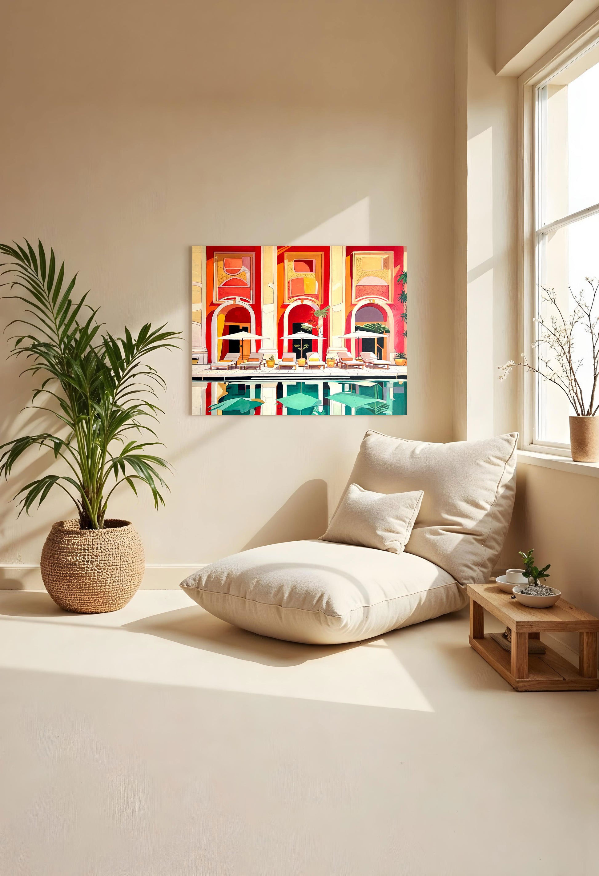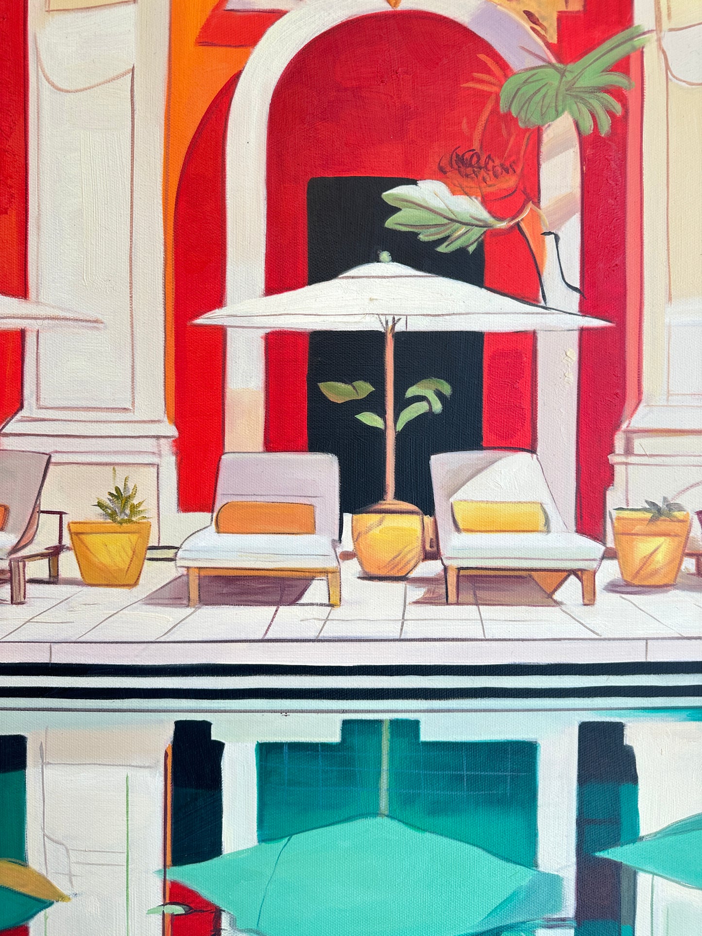 In essence, Lilly Muth's paintings beckon us to venture into a different world—one where architecture, pools, geometry, nature, and a kaleidoscope of colors converge to create a captivating dreamscape that transcends the ordinary and invites us to explore the boundless realms of artistic fantasy.