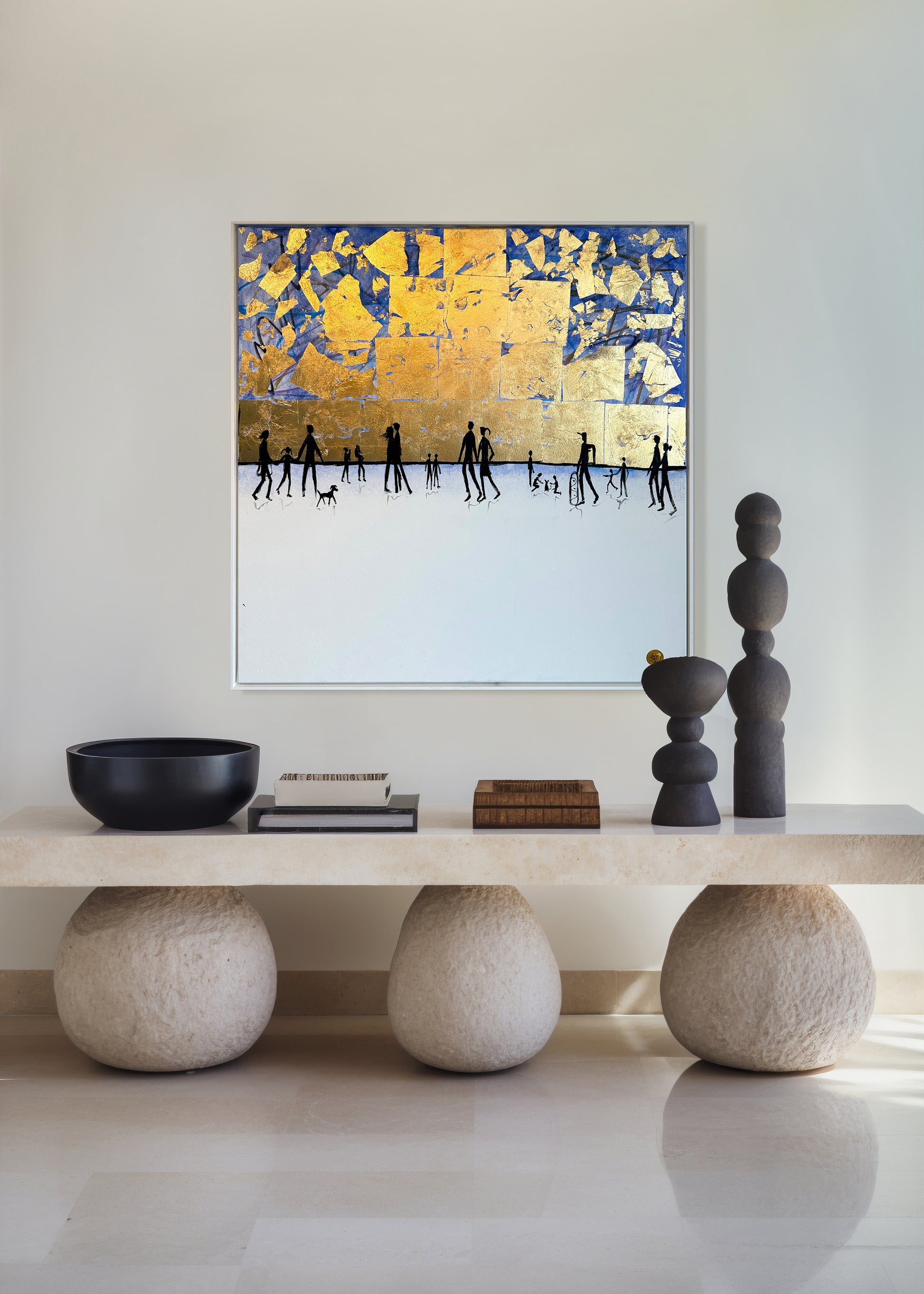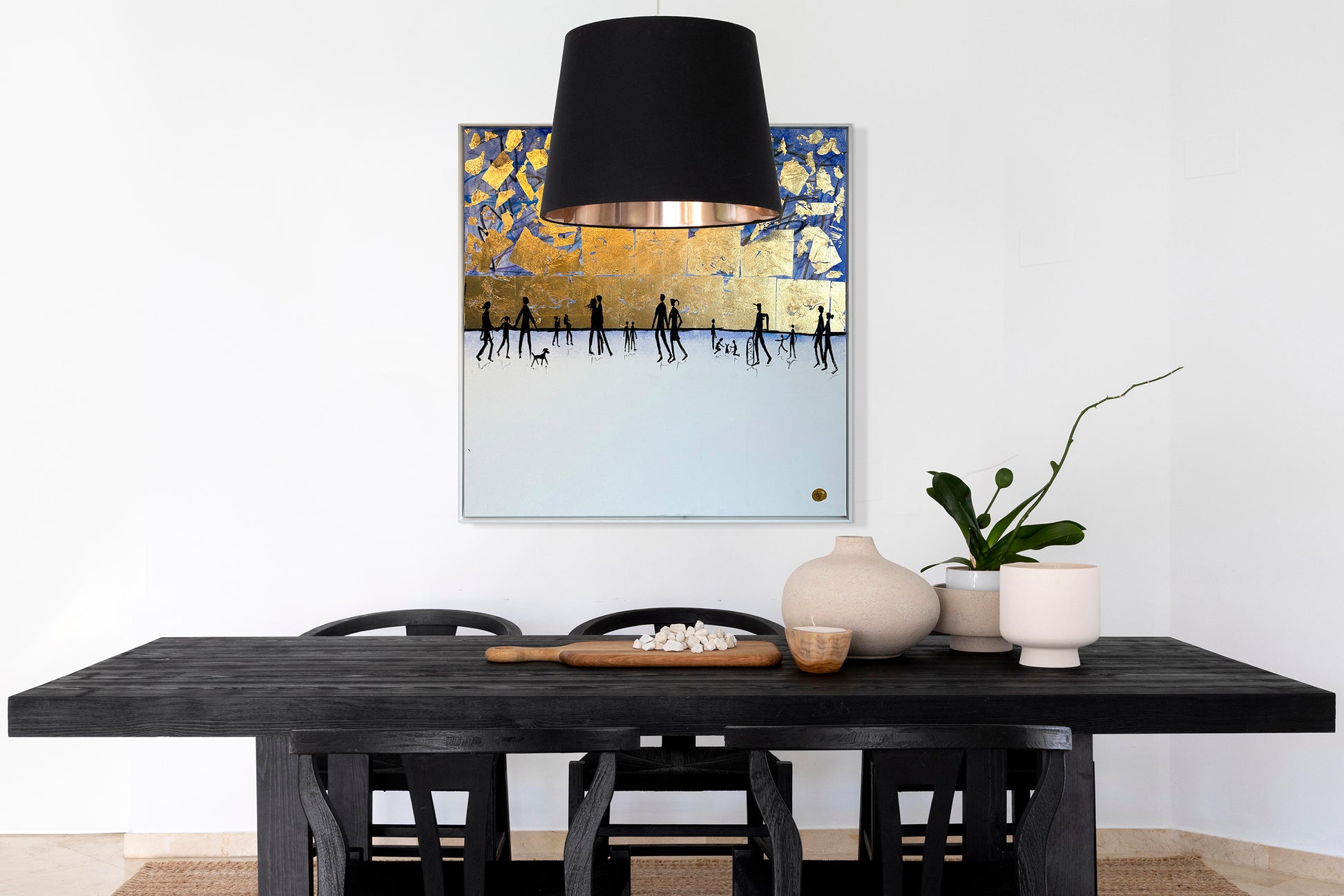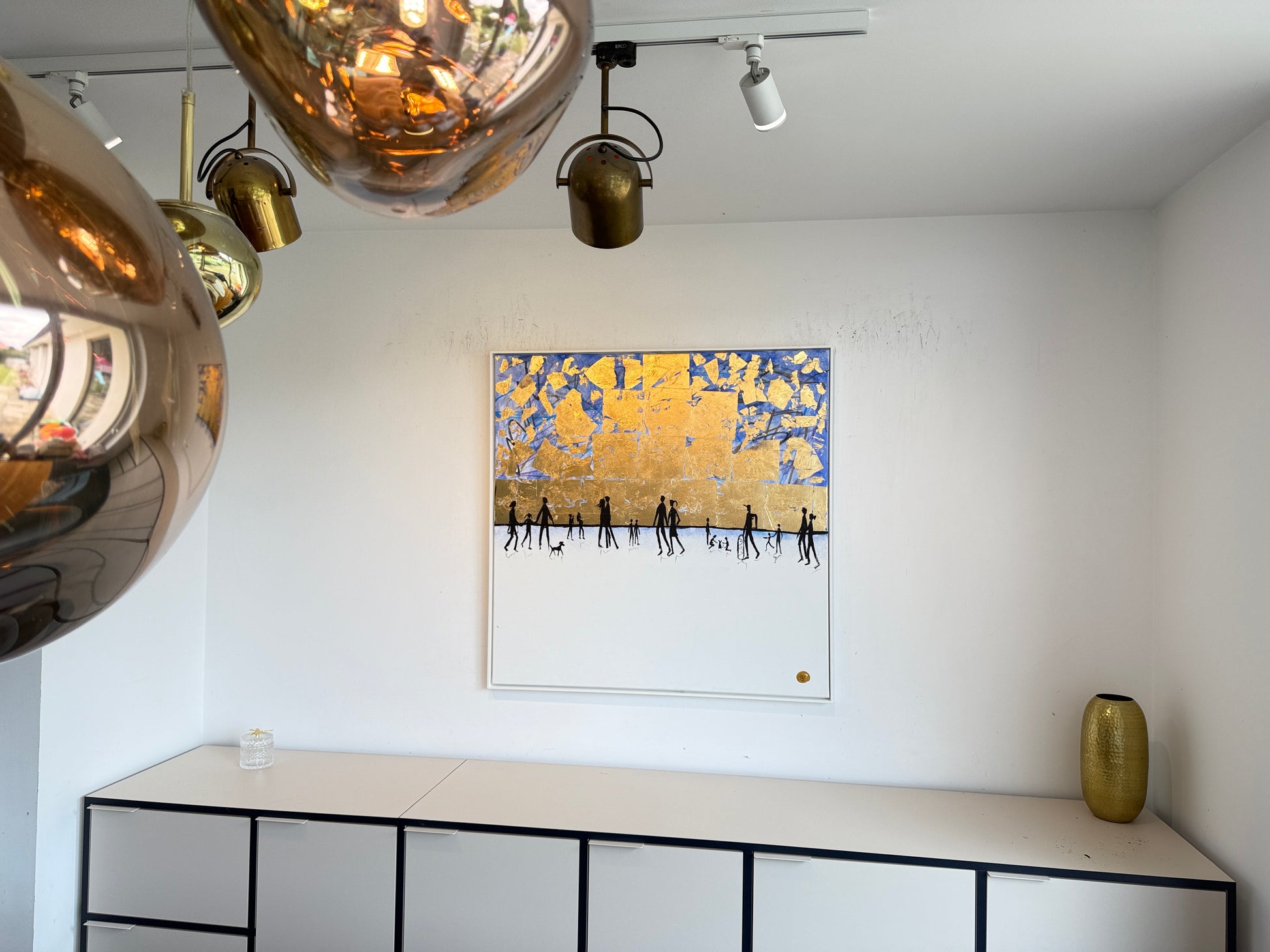 The gold changes depending on the light and makes for a warm contrast to the black, white and grey. Elegant in their color scheme Hormel's paintings are beautifully contemporary and unobtrusive, yet full of life, happiness and details.