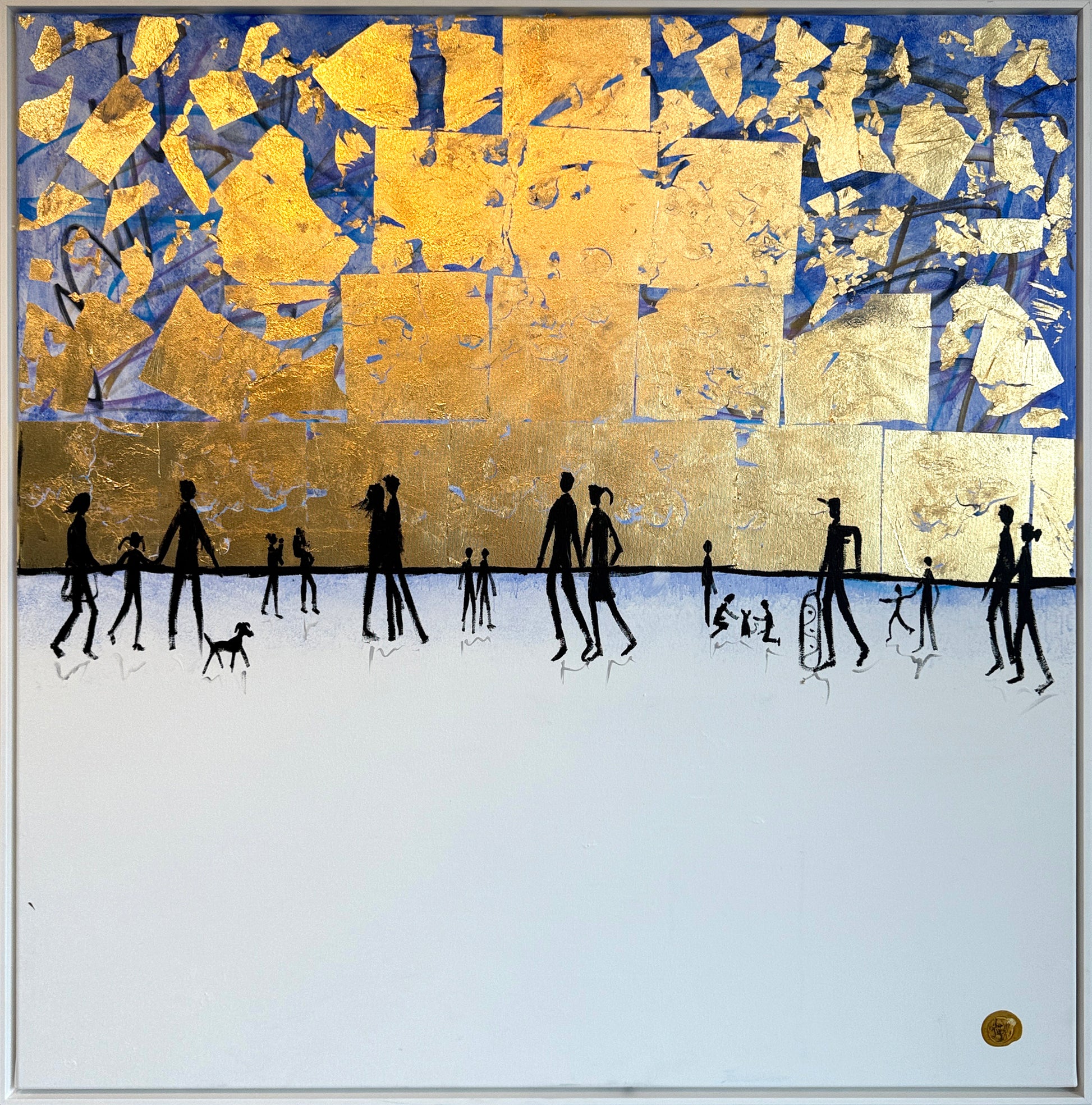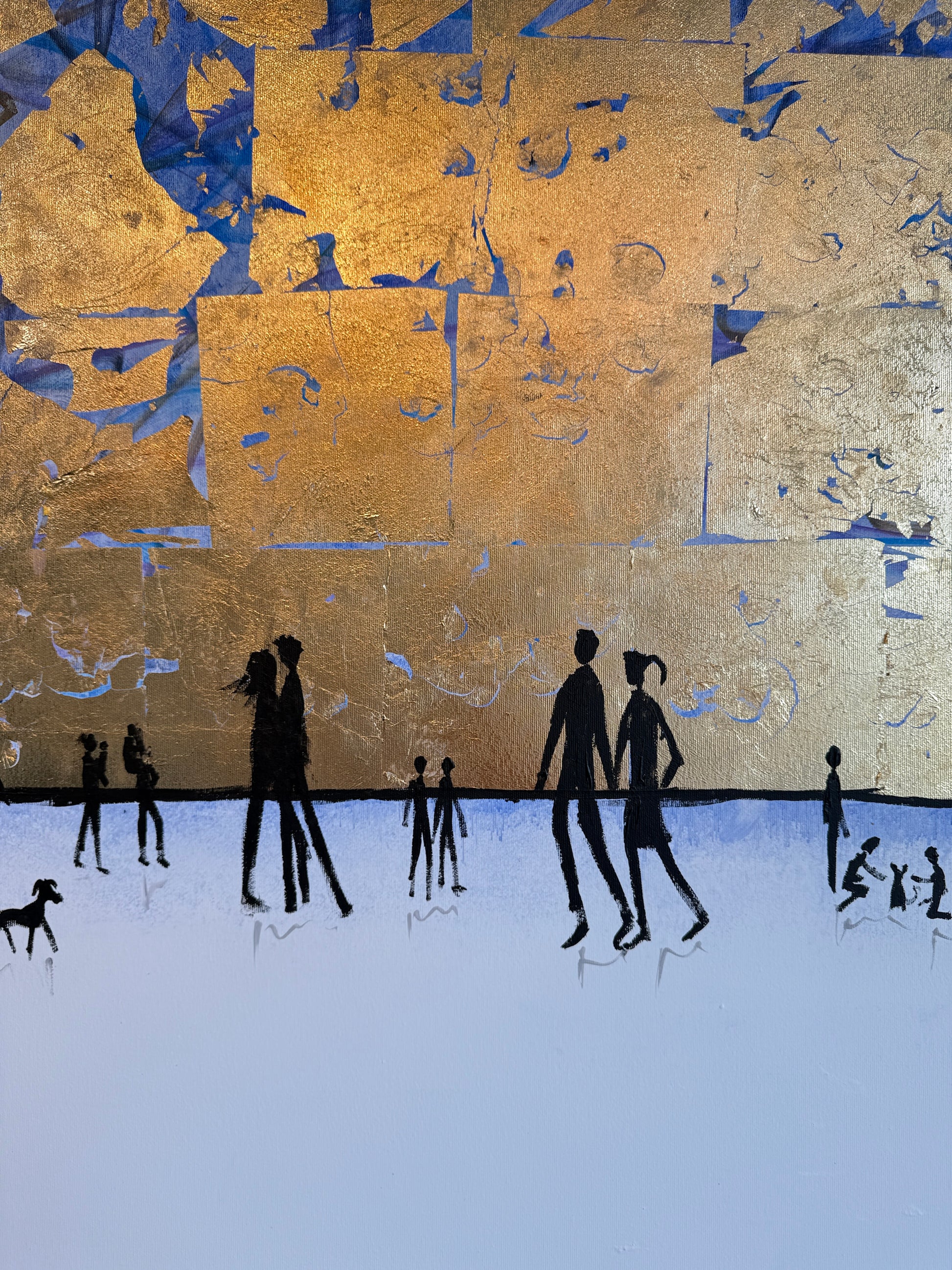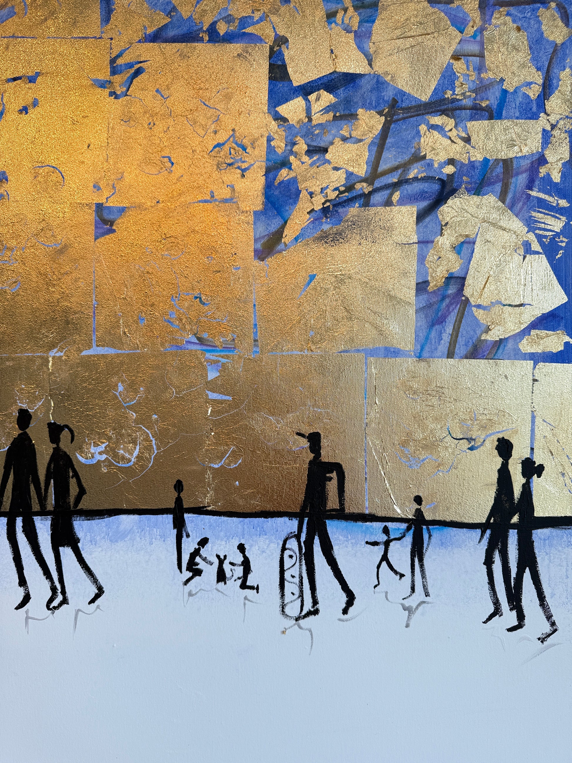 Katharina Hormel paints minimalistic every day scenes of life. The people she portrays are out and about going about their daily life, enjoying a walk in the park, cycling, playing football etc.