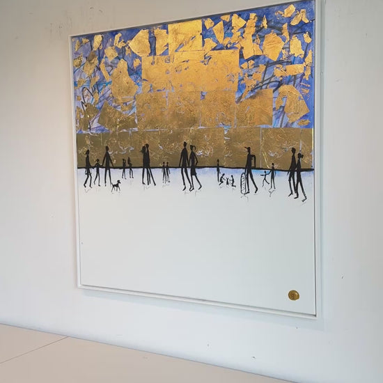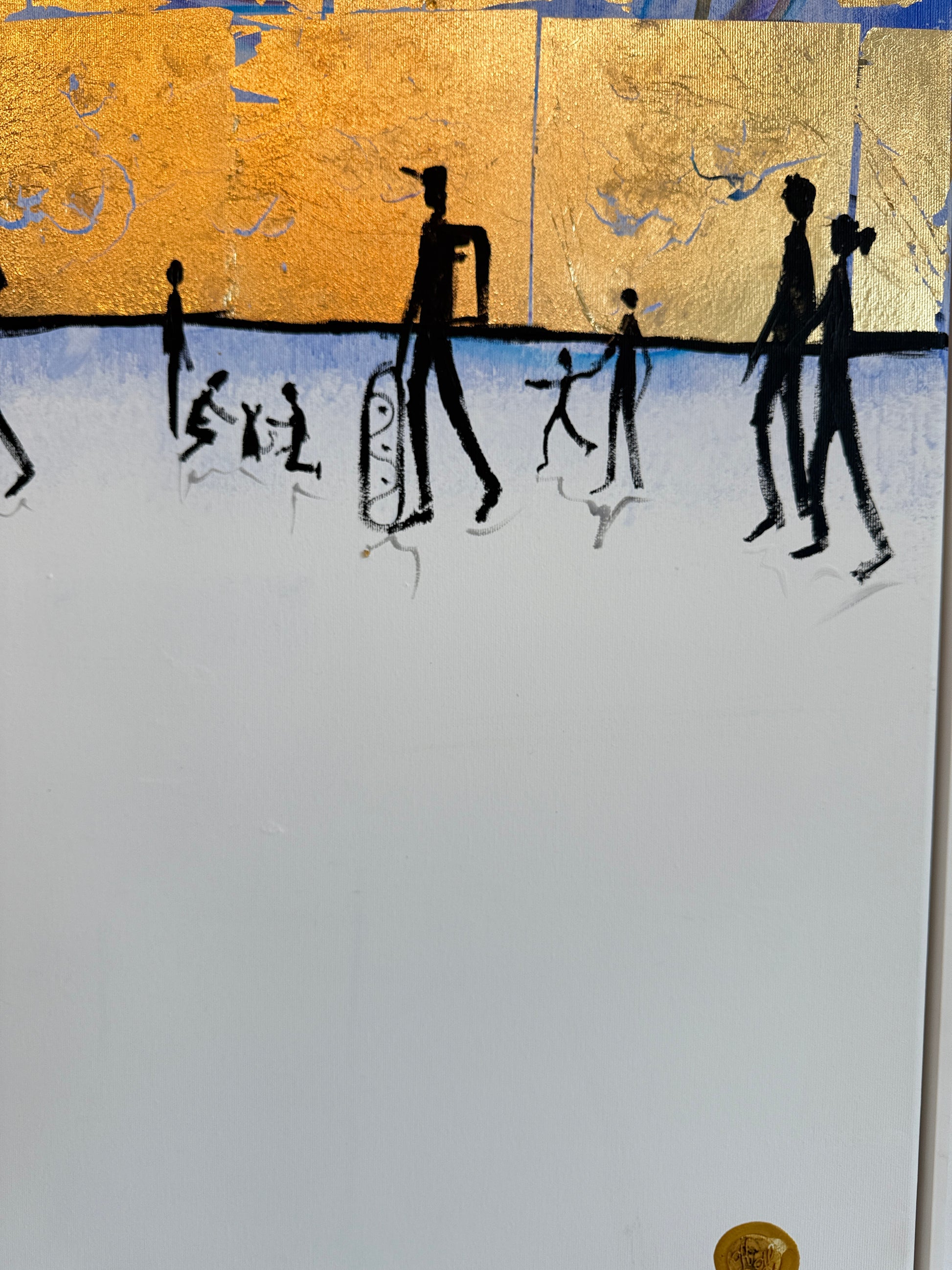 Medium: Acrylics, Waterbased Oil, Spraypaint on Linen Canvas in wood shadow box frame