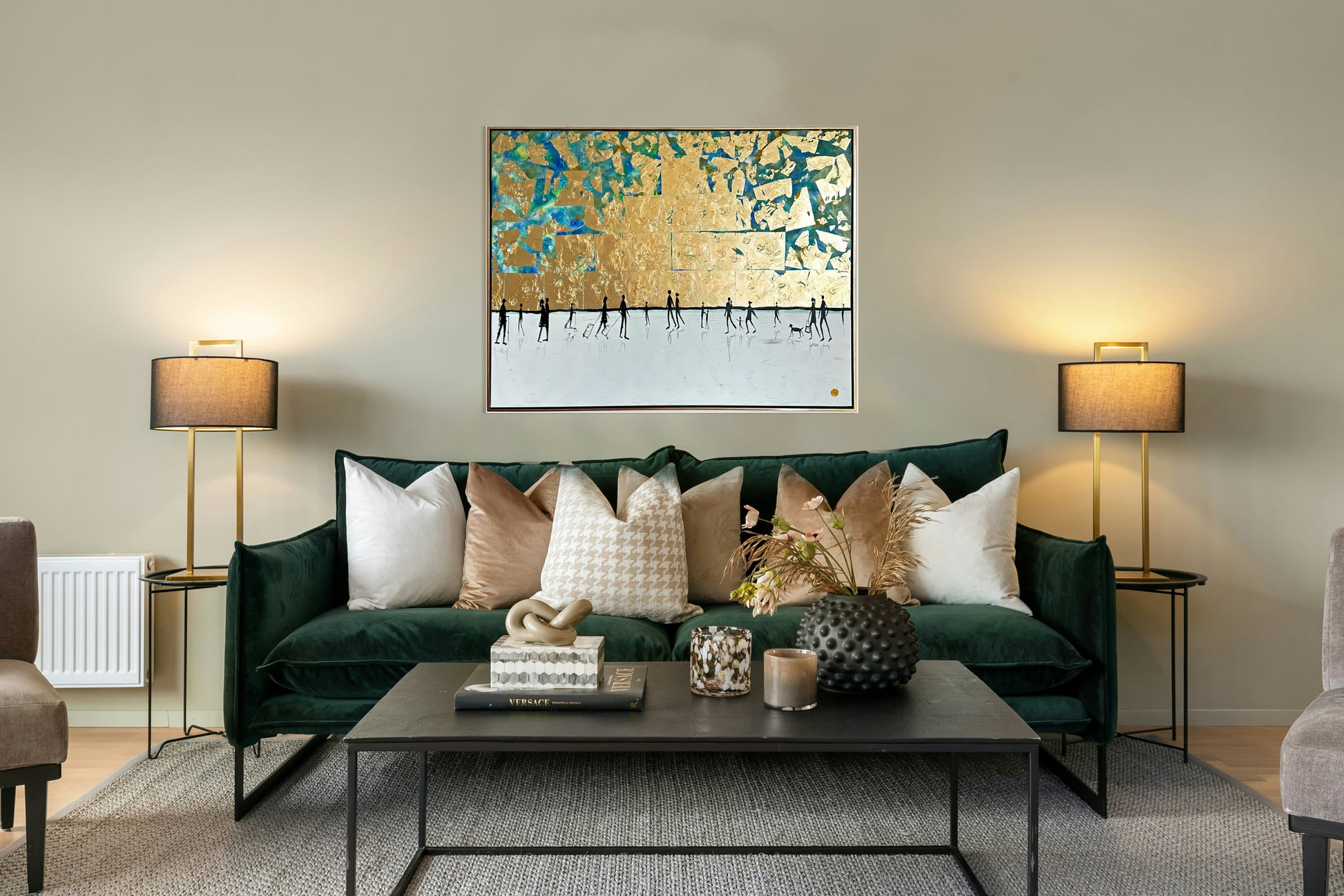 The gold changes depending on the light and makes for a warm contrast to the black, white and grey. Elegant in their color scheme Hormel's paintings are beautifully contemporary and unobtrusive, yet full of life, happiness and details.