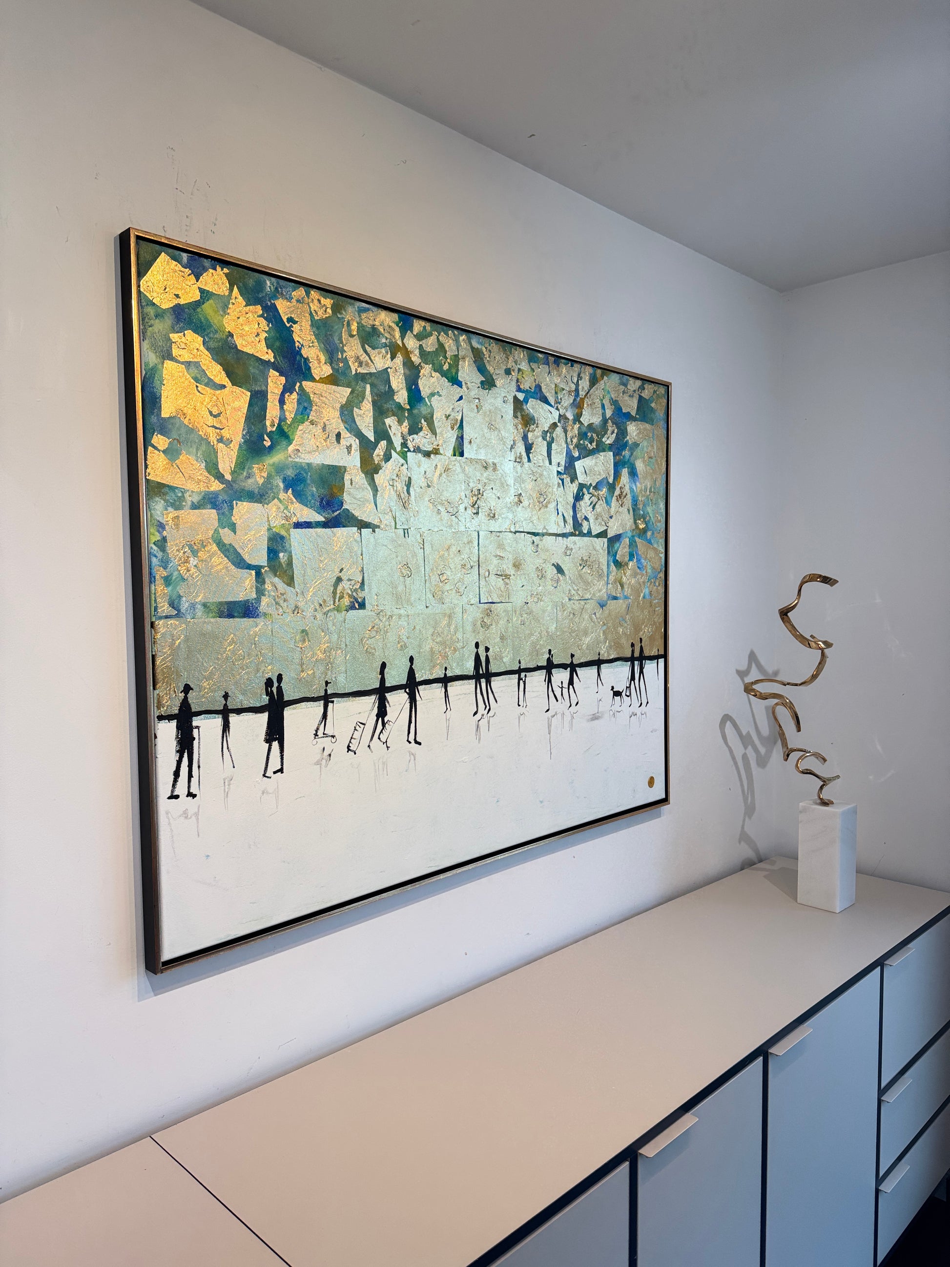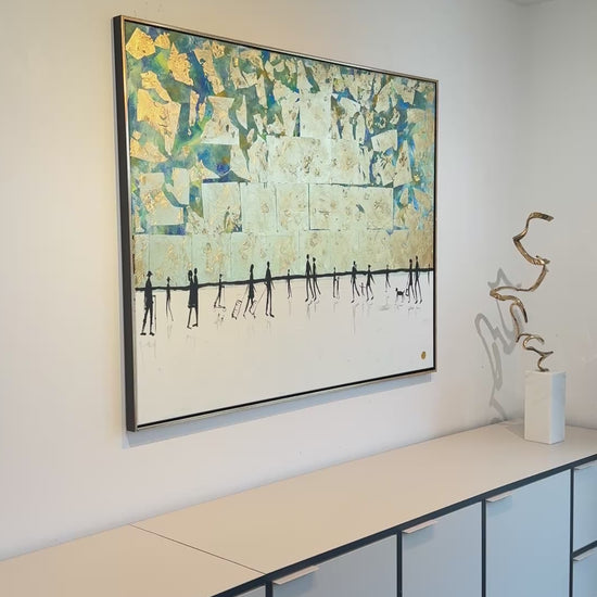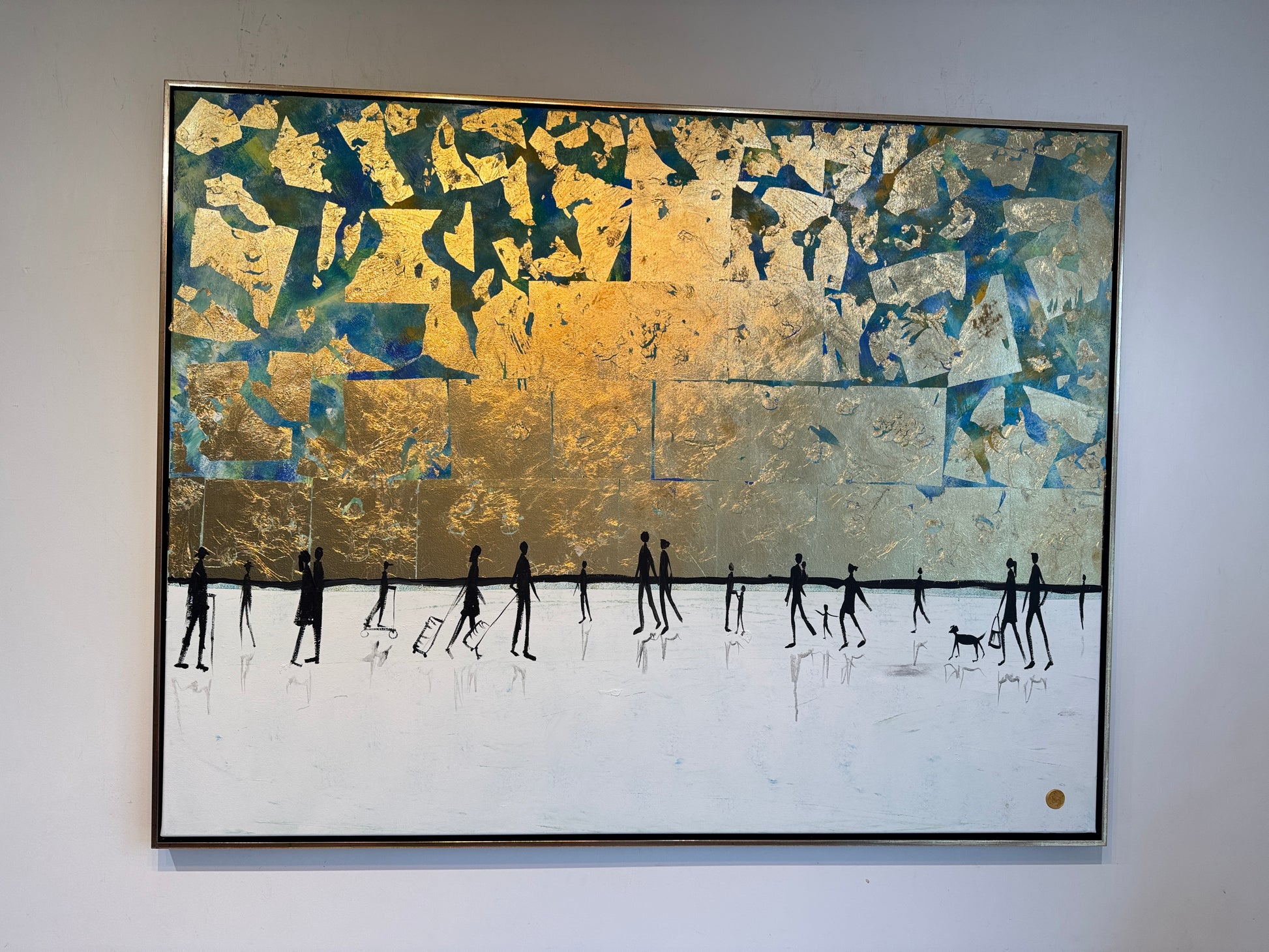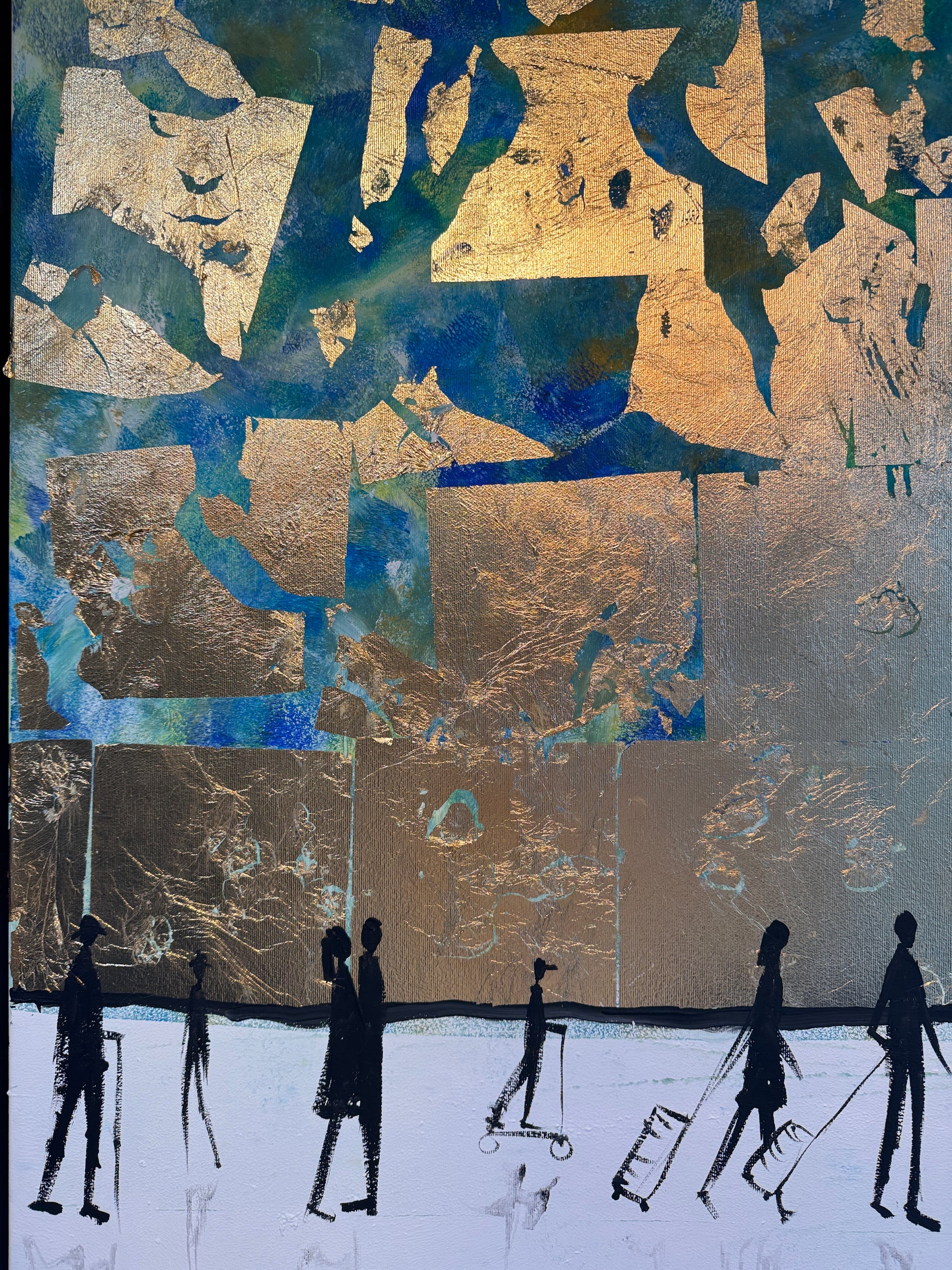 Medium: Acrylics and gold leaf on wood framed board