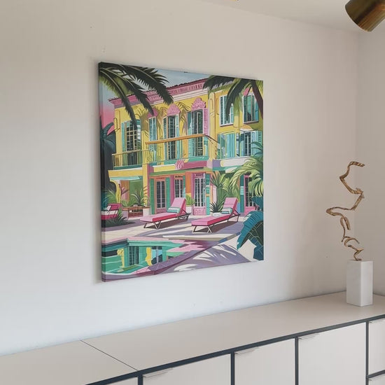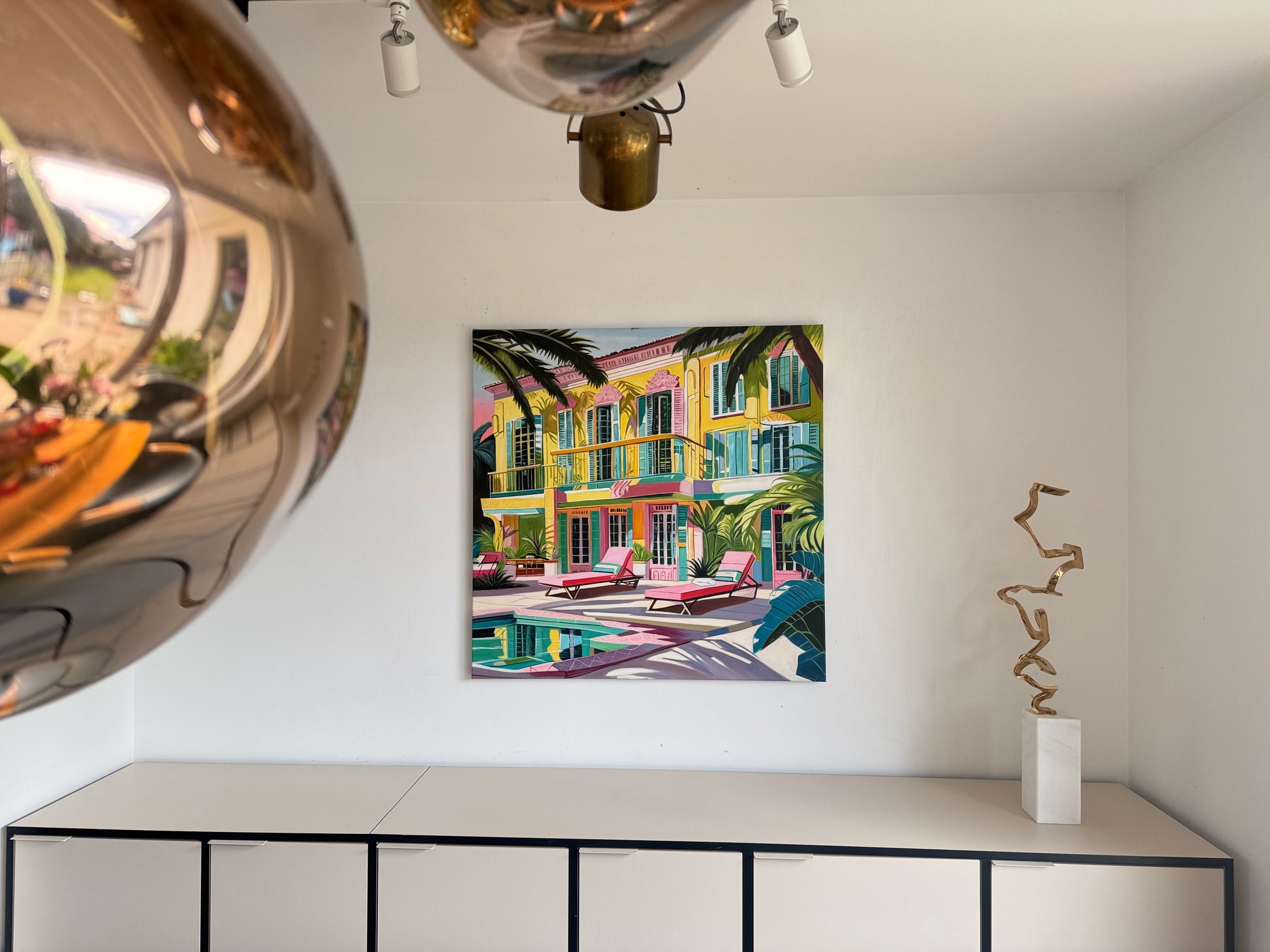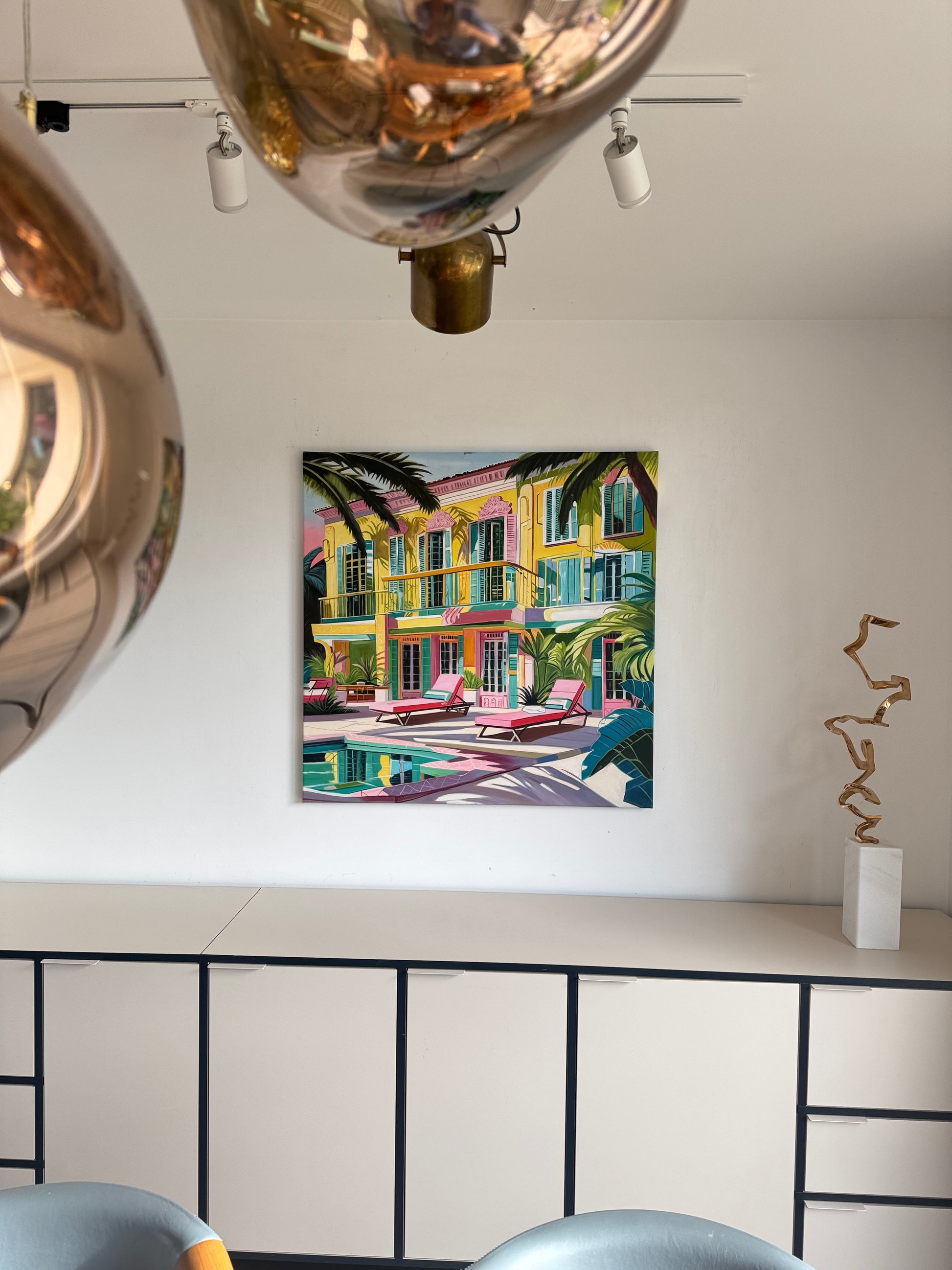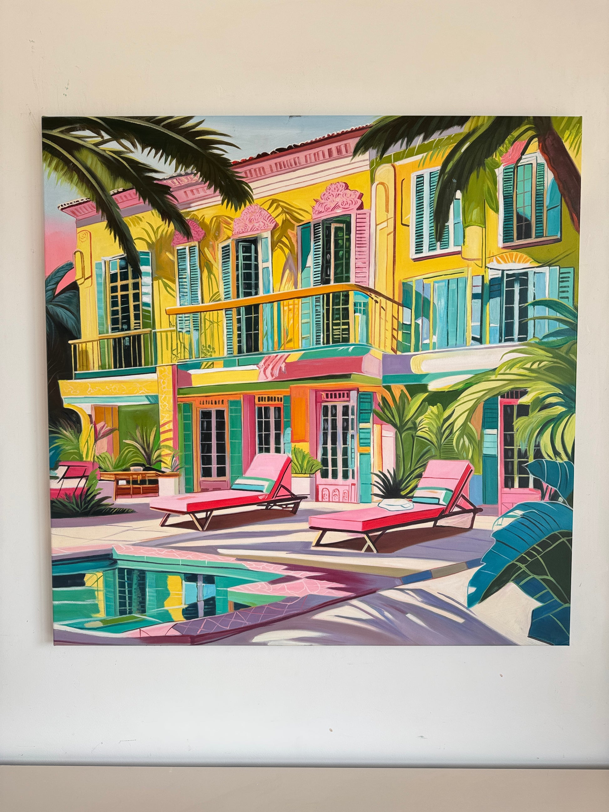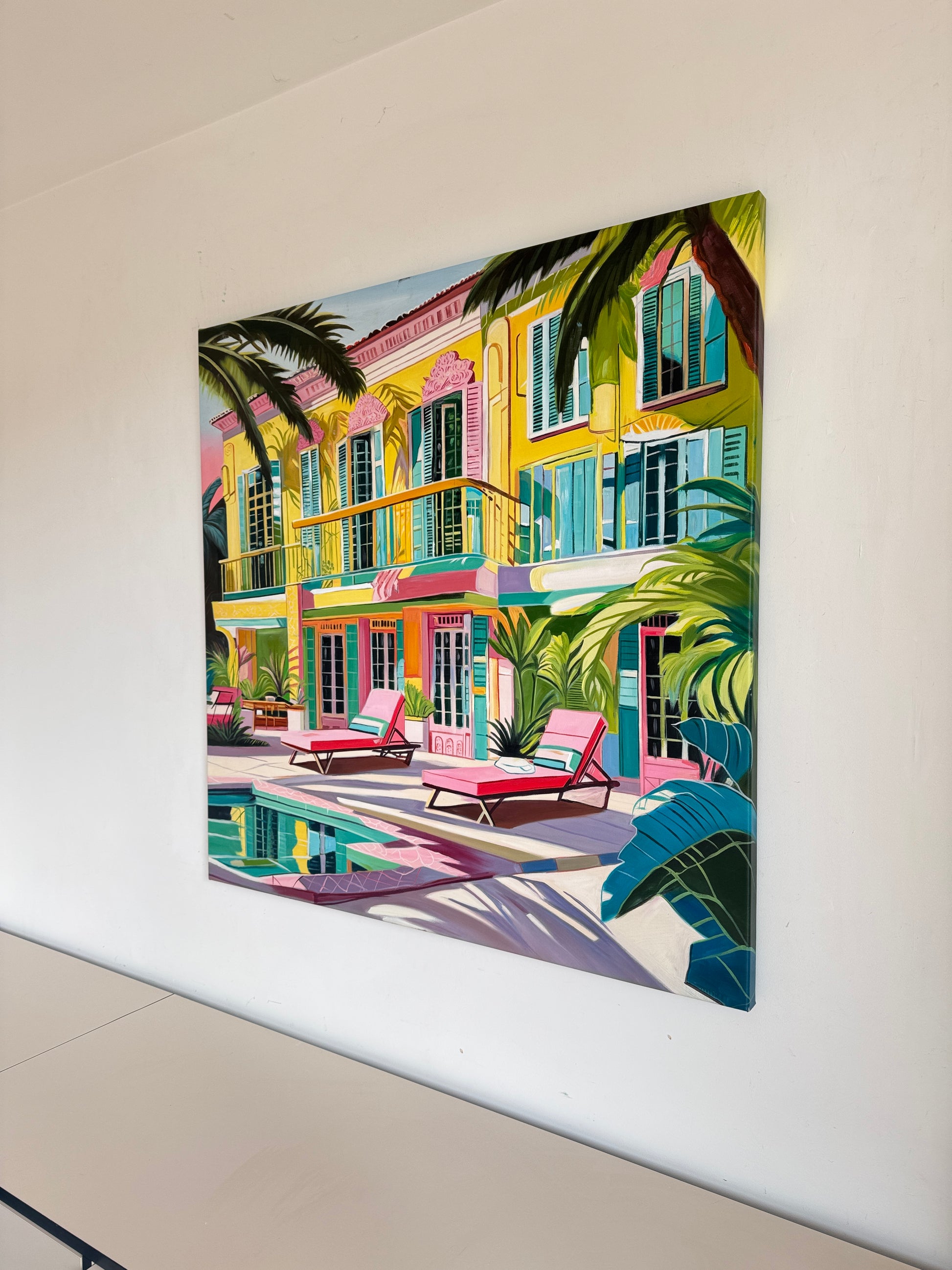 In essence, Lilly Muth's paintings beckon us to venture into a different world—one where architecture, pools, geometry, nature, and a kaleidoscope of colors converge to create a captivating dreamscape that transcends the ordinary and invites us to explore the boundless realms of artistic fantasy.