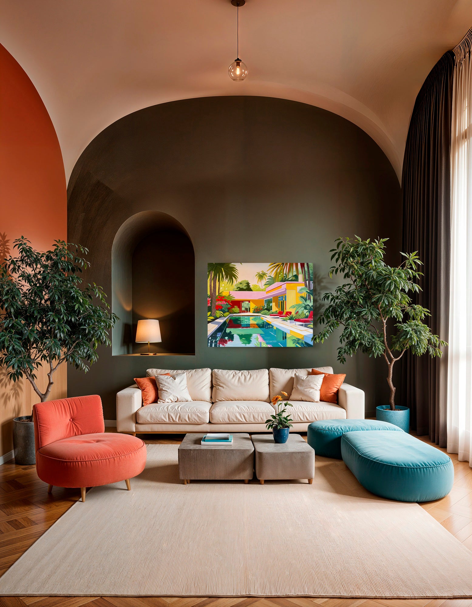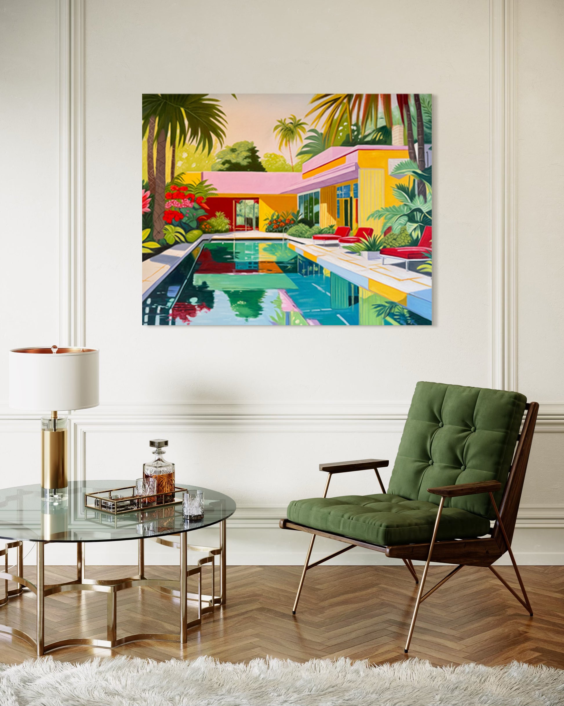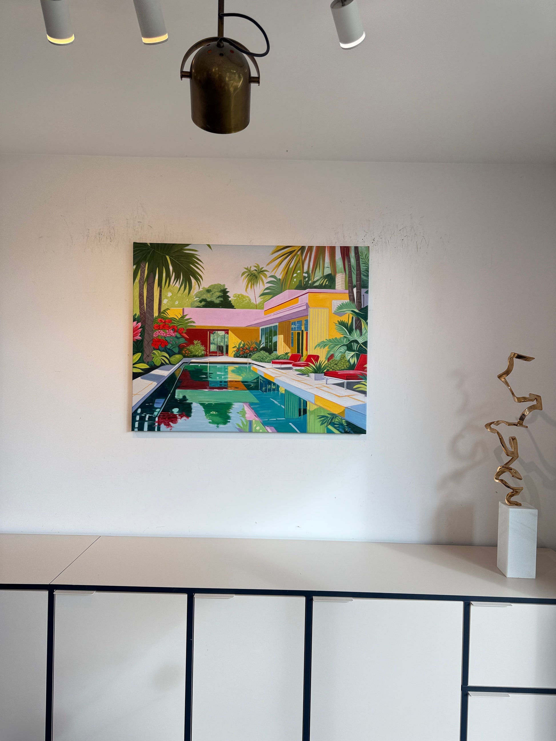 In essence, Lilly Muth's paintings beckon us to venture into a different world—one where architecture, pools, geometry, nature, and a kaleidoscope of colors converge to create a captivating dreamscape that transcends the ordinary and invites us to explore the boundless realms of artistic fantasy.