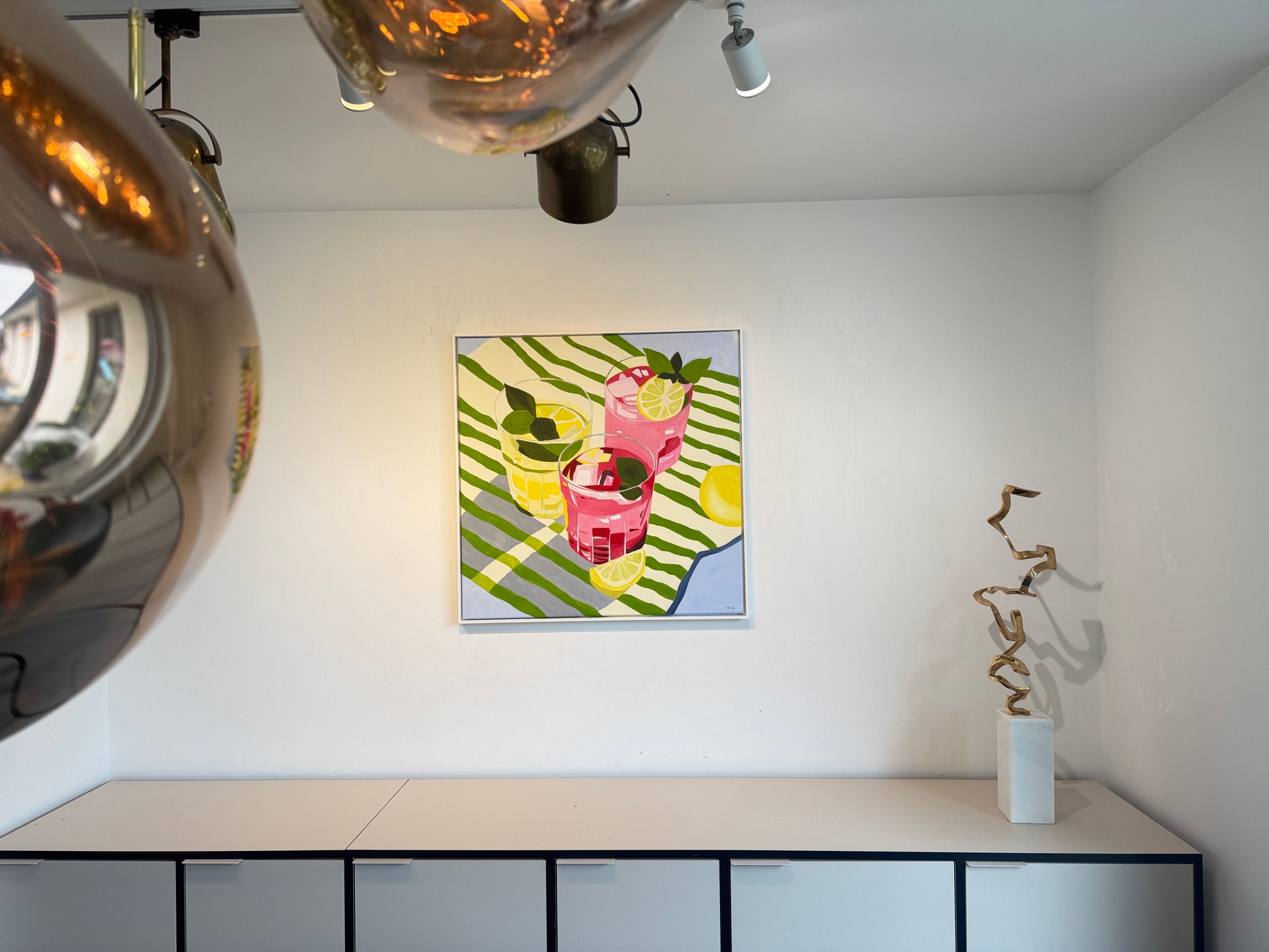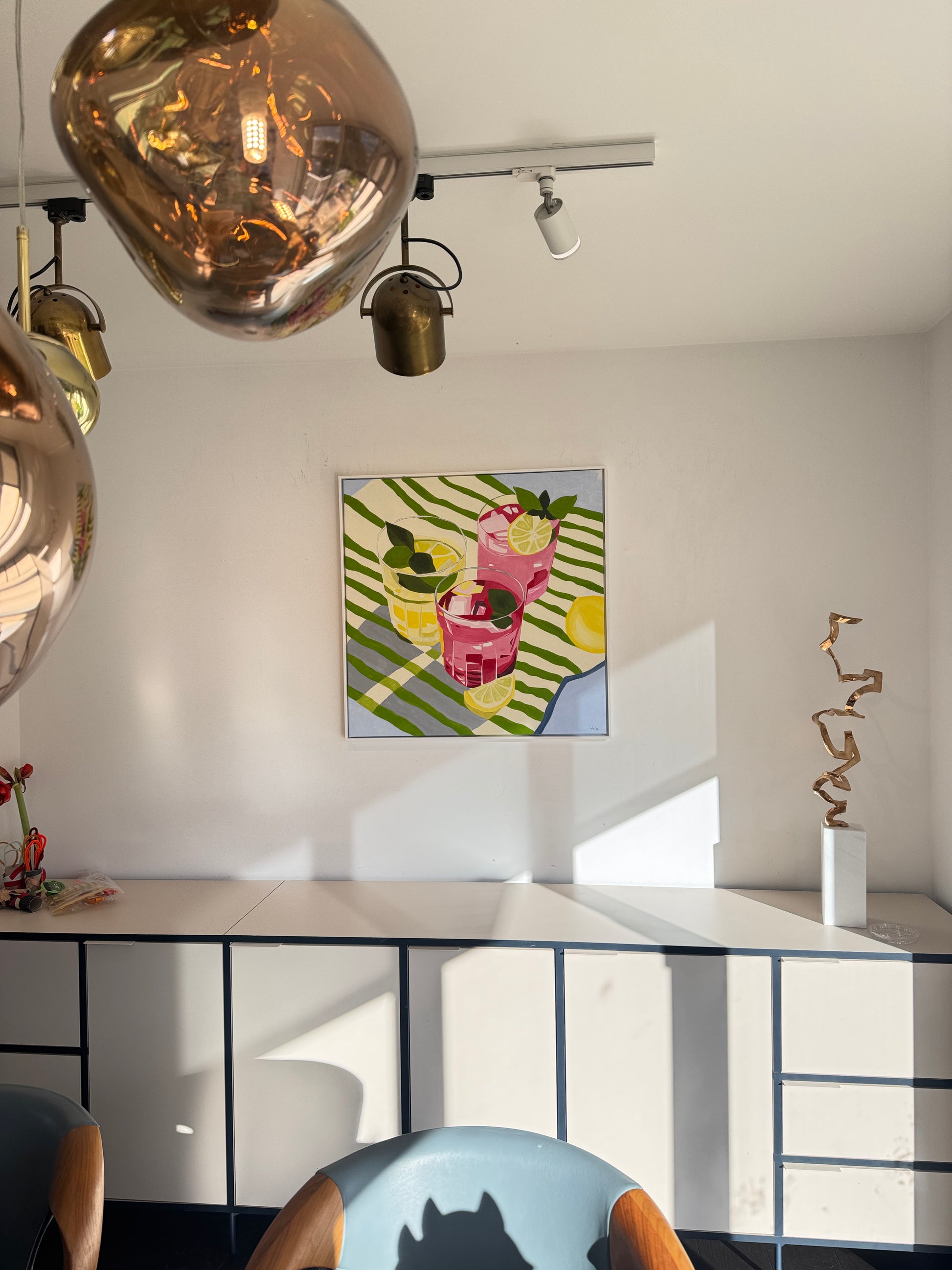 Hela is an emerging contemporary artist whose vibrant and playful paintings celebrate the quiet glamour of everyday life. With a focus on table settings, cocktails, glassware, and elegantly arranged tables, she creates modern still lifes that blend simplicity with bold color and charm. Her pared-back yet colorful style transforms ordinary moments into joyful visual statements.
