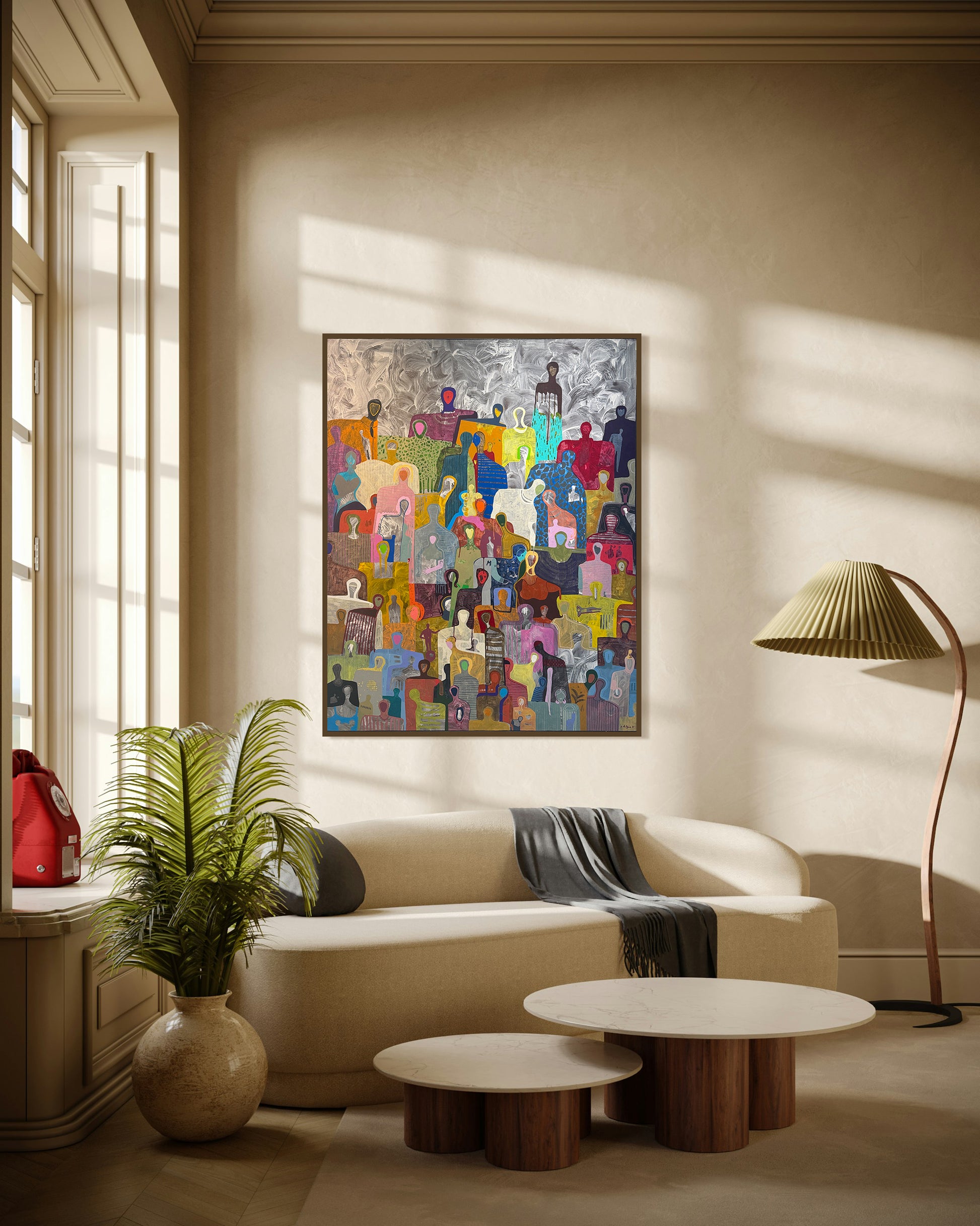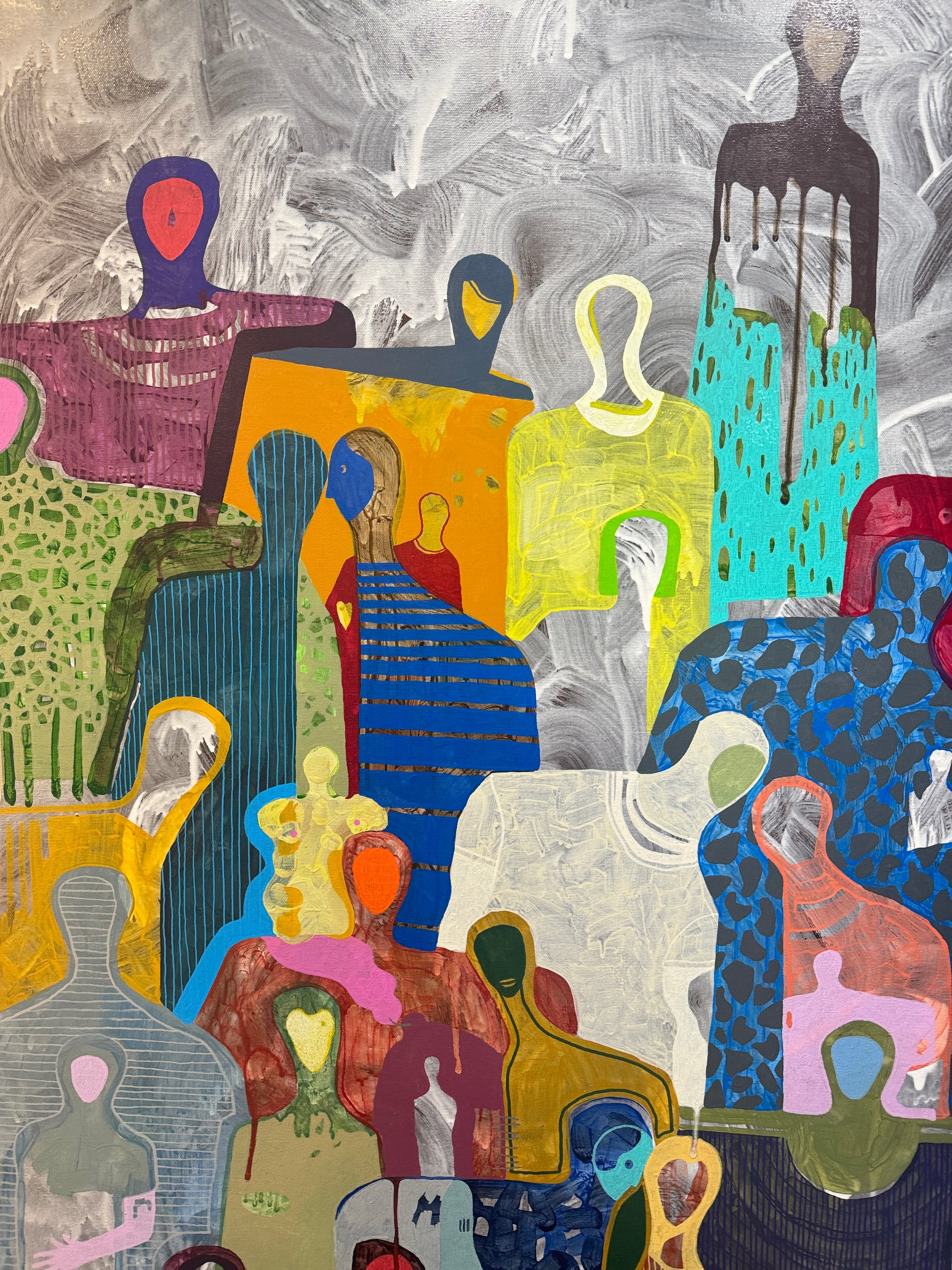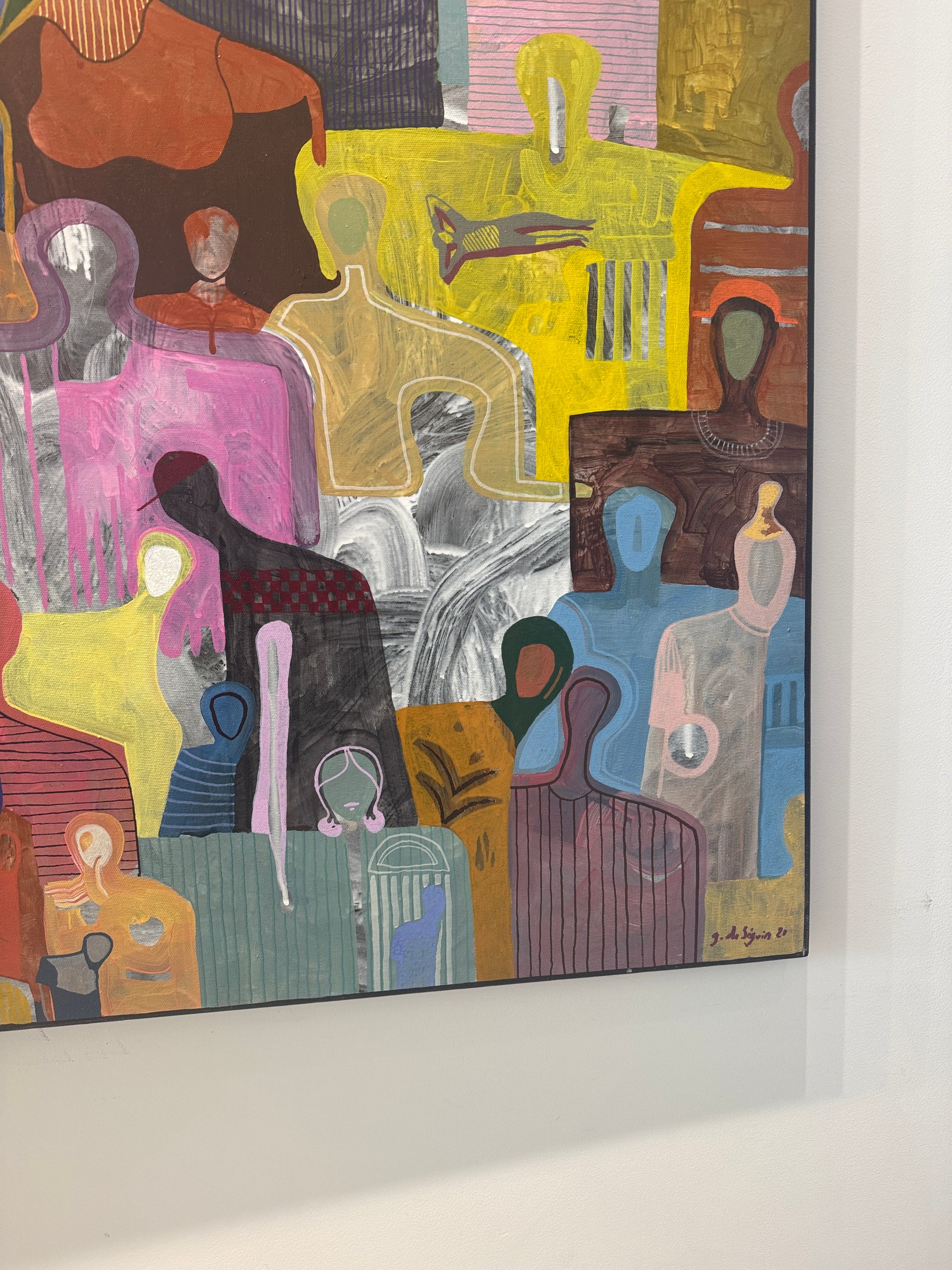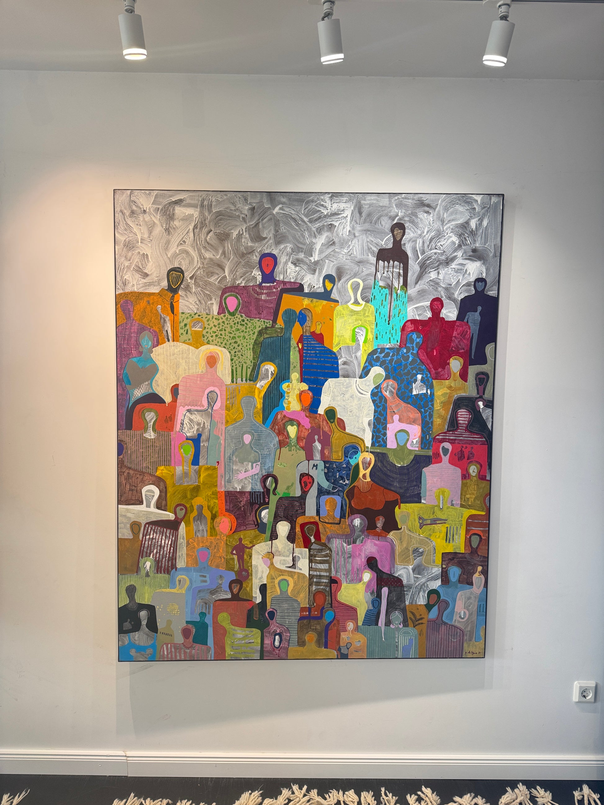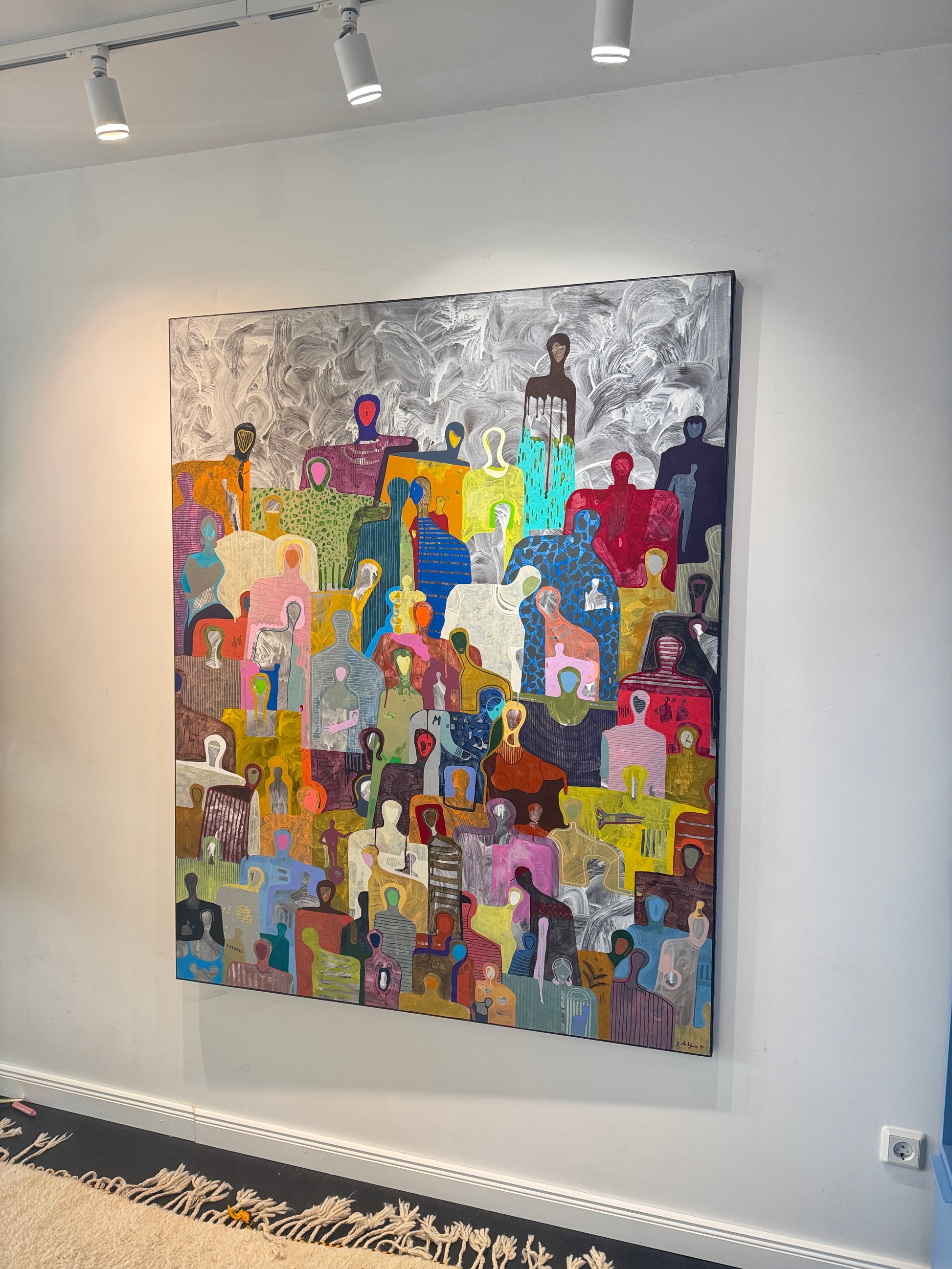 His paintings are figurative works, with an abstract character. The various colors highlight that not one person is the same, and celebrates this individuality in contemporary and elegant way.