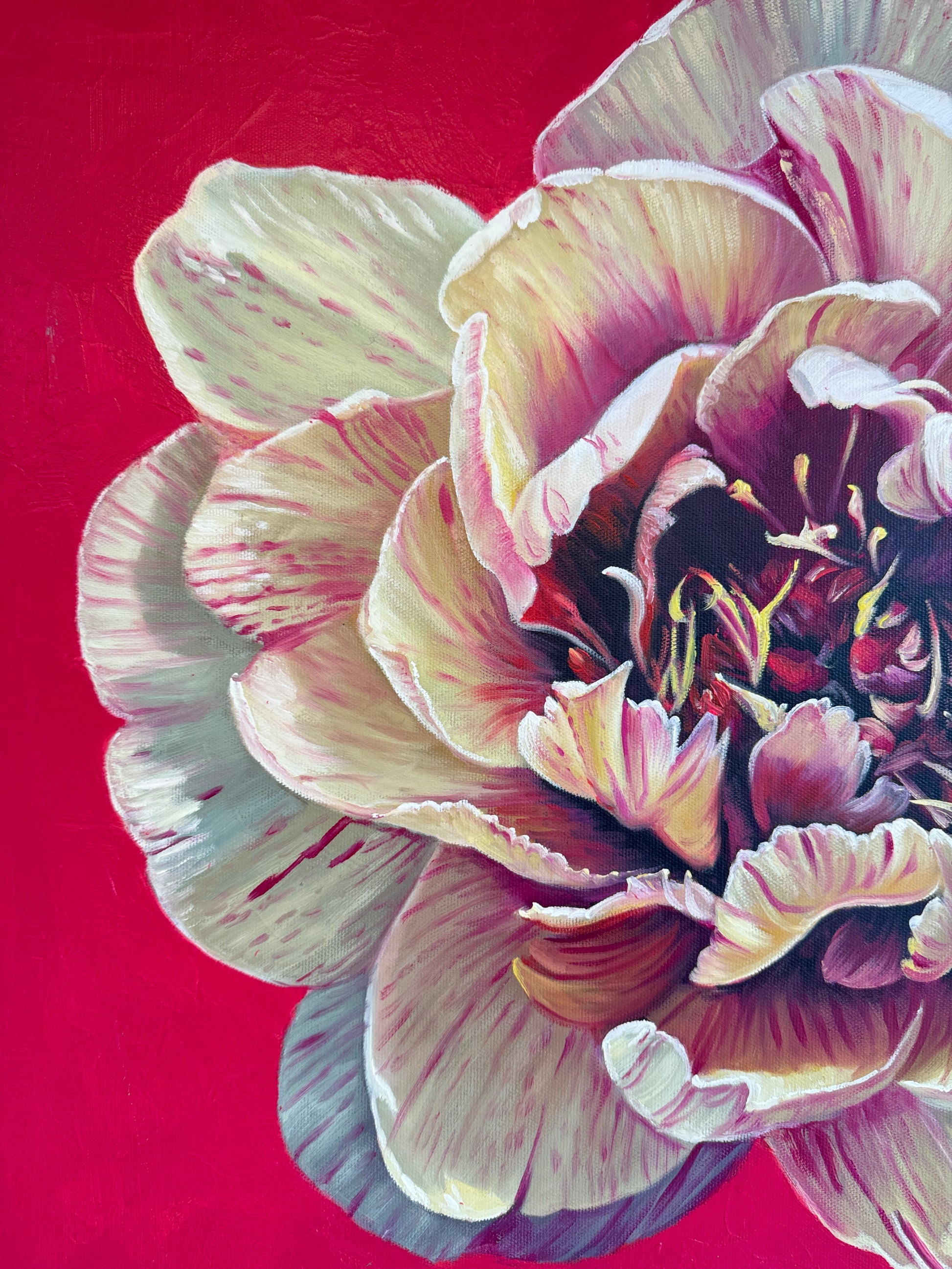 Katharina Husslein's new body of work are still life paintings of blossoming flowers in a range of vases and settings. Looking at old master paintings and today's flower photography, she creates contemporary oil paintings radiating color, art history and the joy of a moment in time where everything seems quietly perfect and the flowers are in full bloom. A metaphor as old as time, to seize the moment and enjoy it to its full extend.