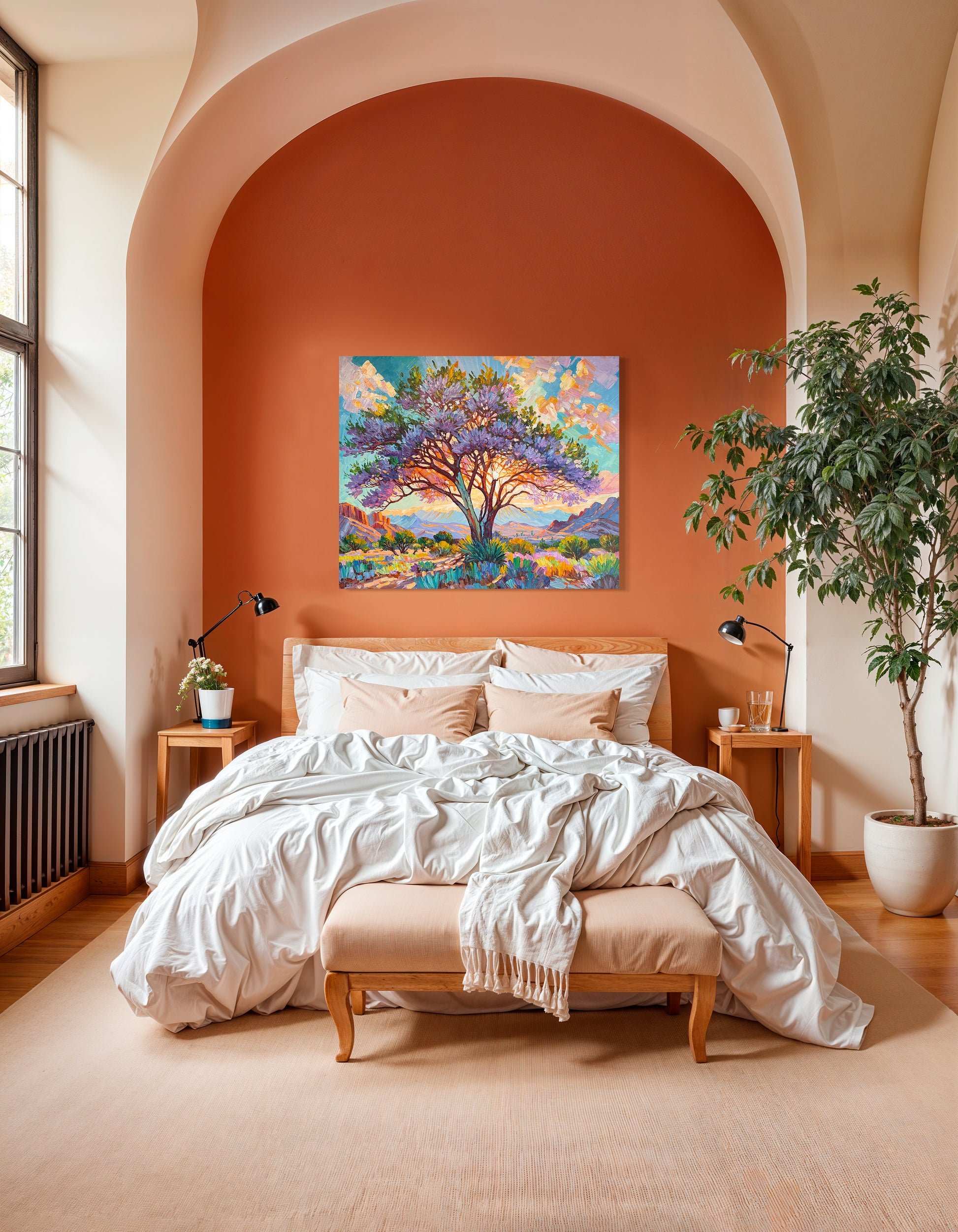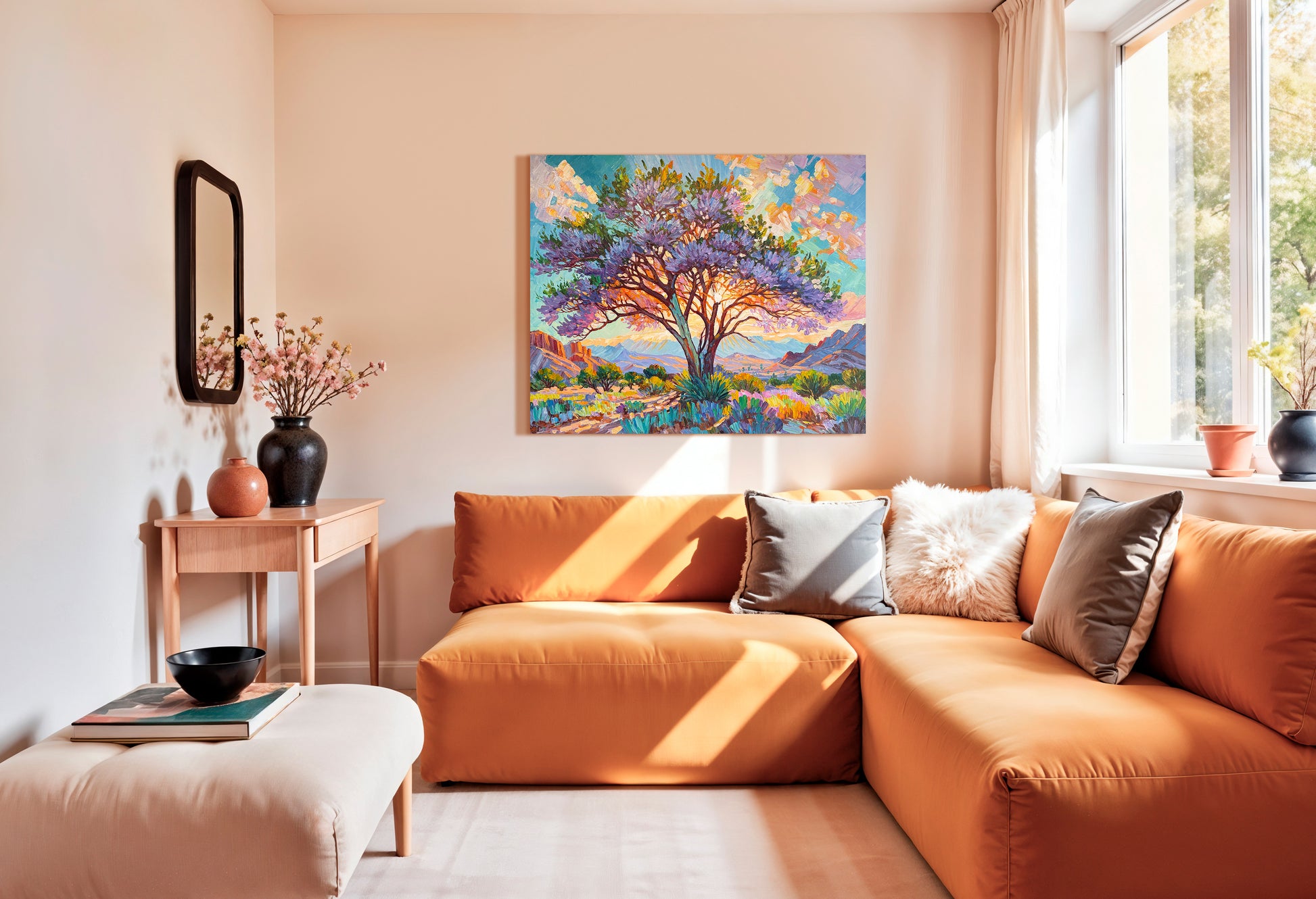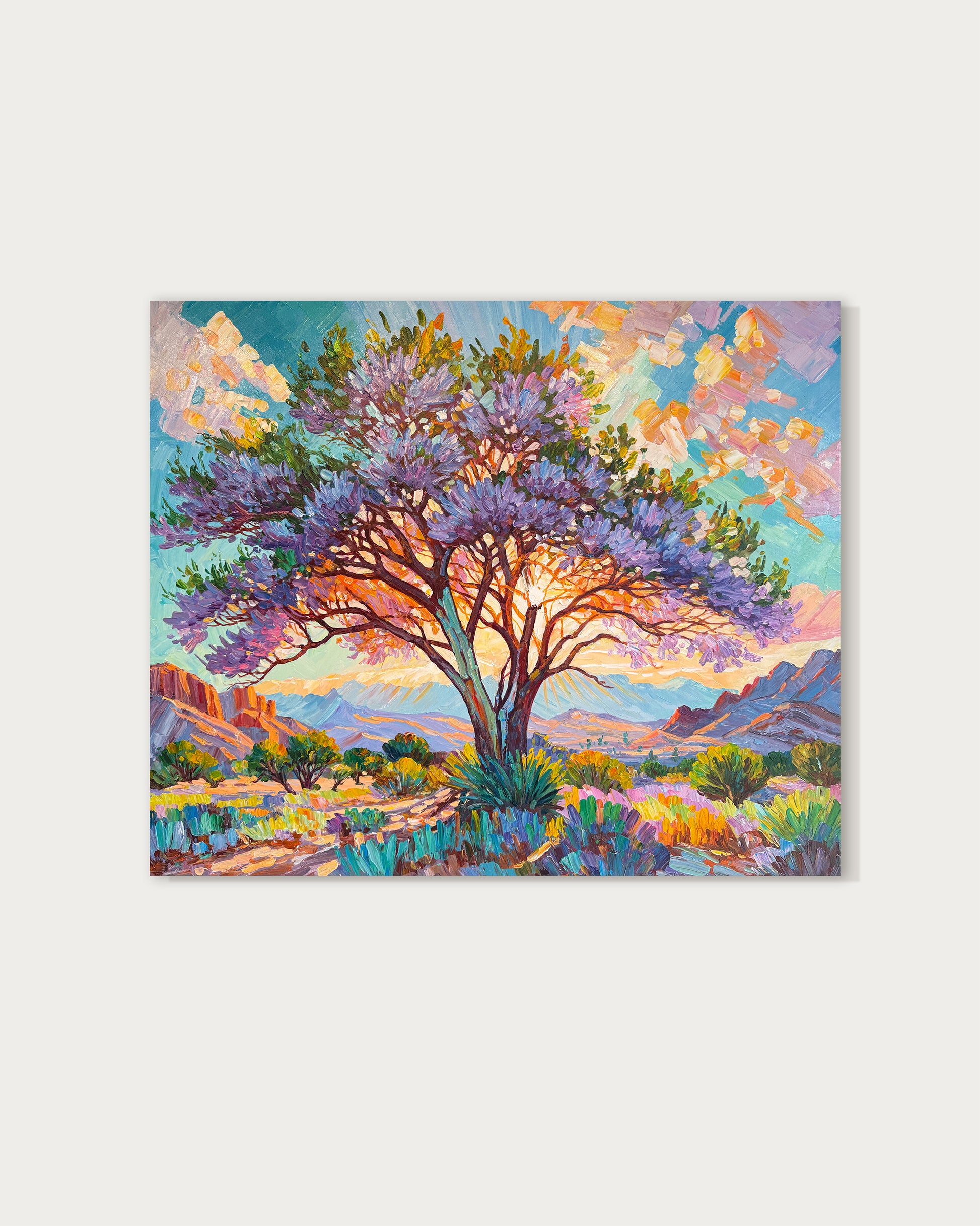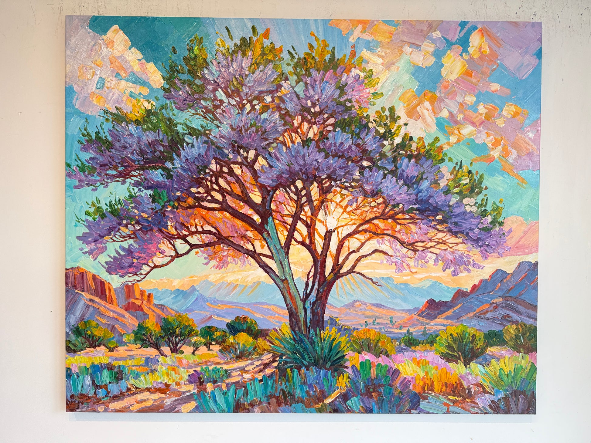 This one-of-a-kind oil painting is signed by Husslein on the back. The painting is ready to hang and includes professional wiring for easy installation. The sides are painted as a continuation of the front and it does not require framing.