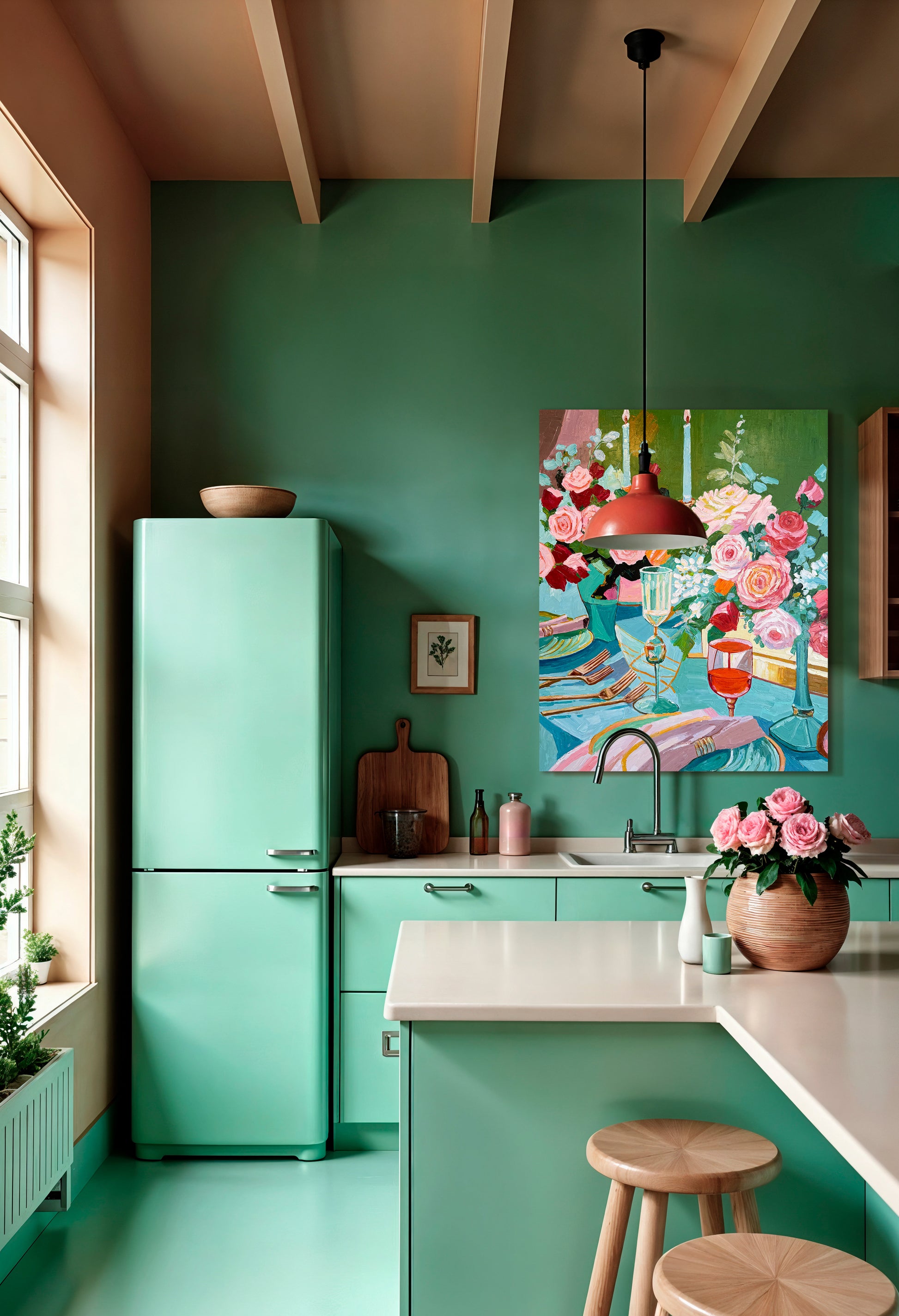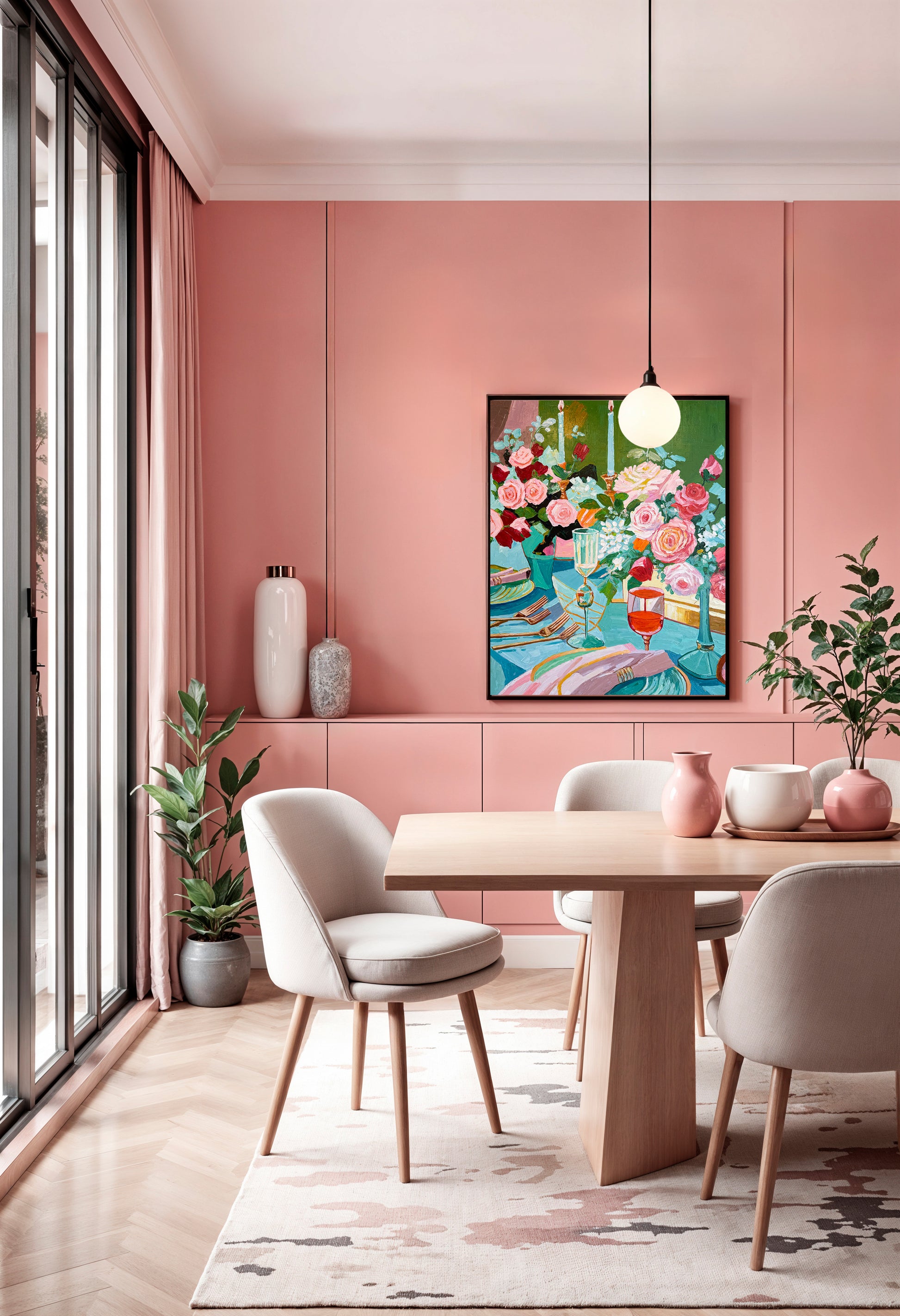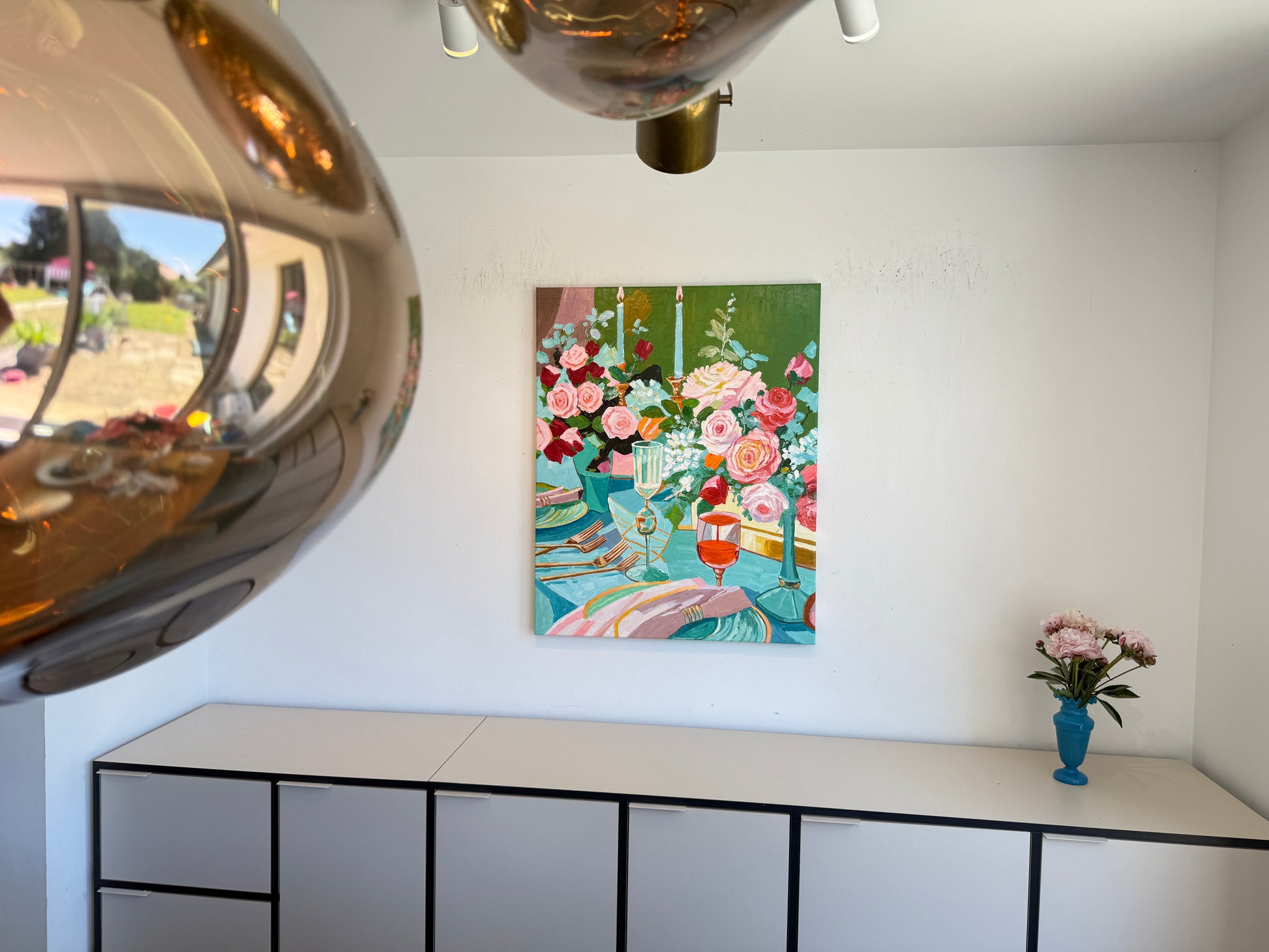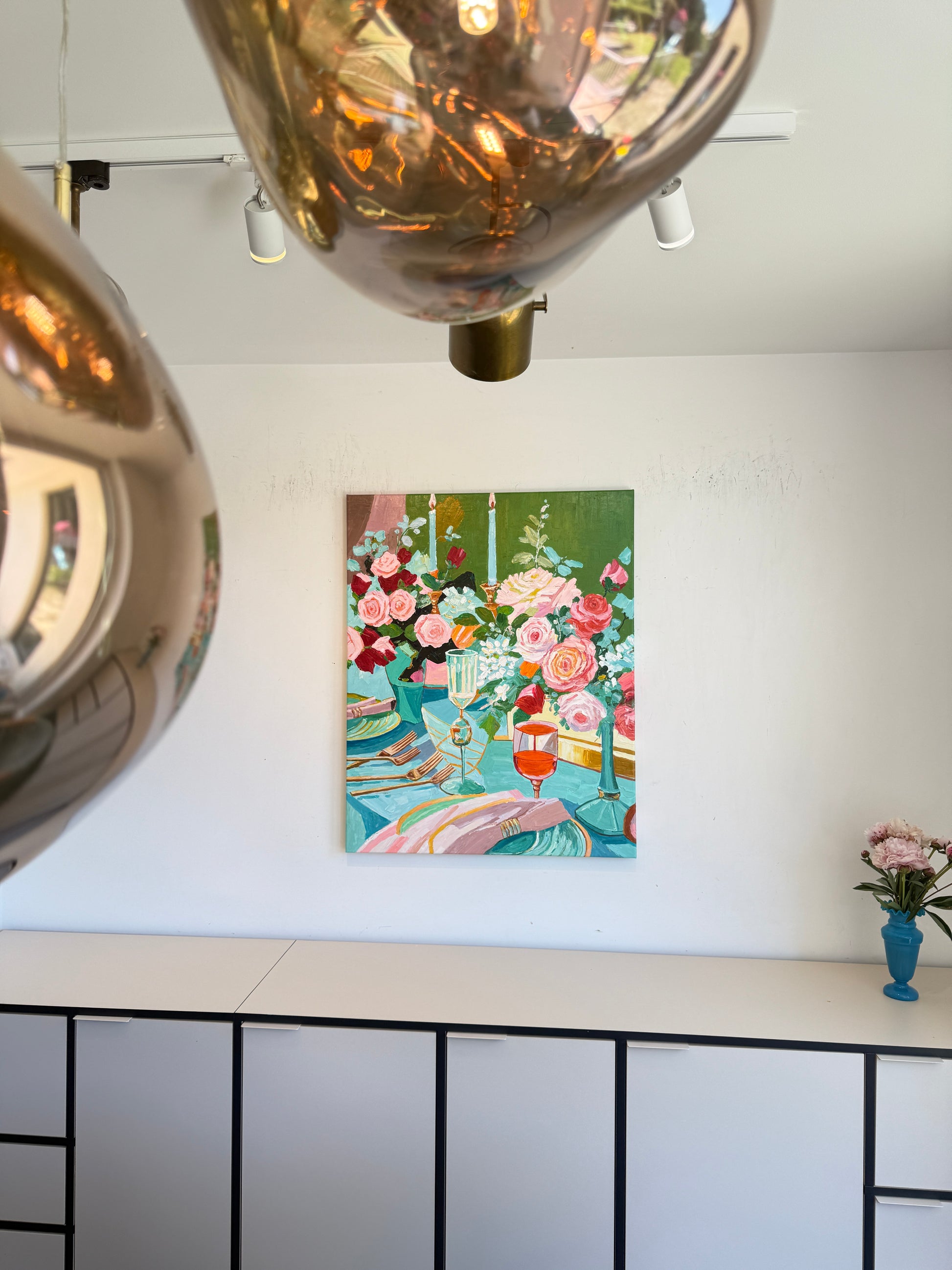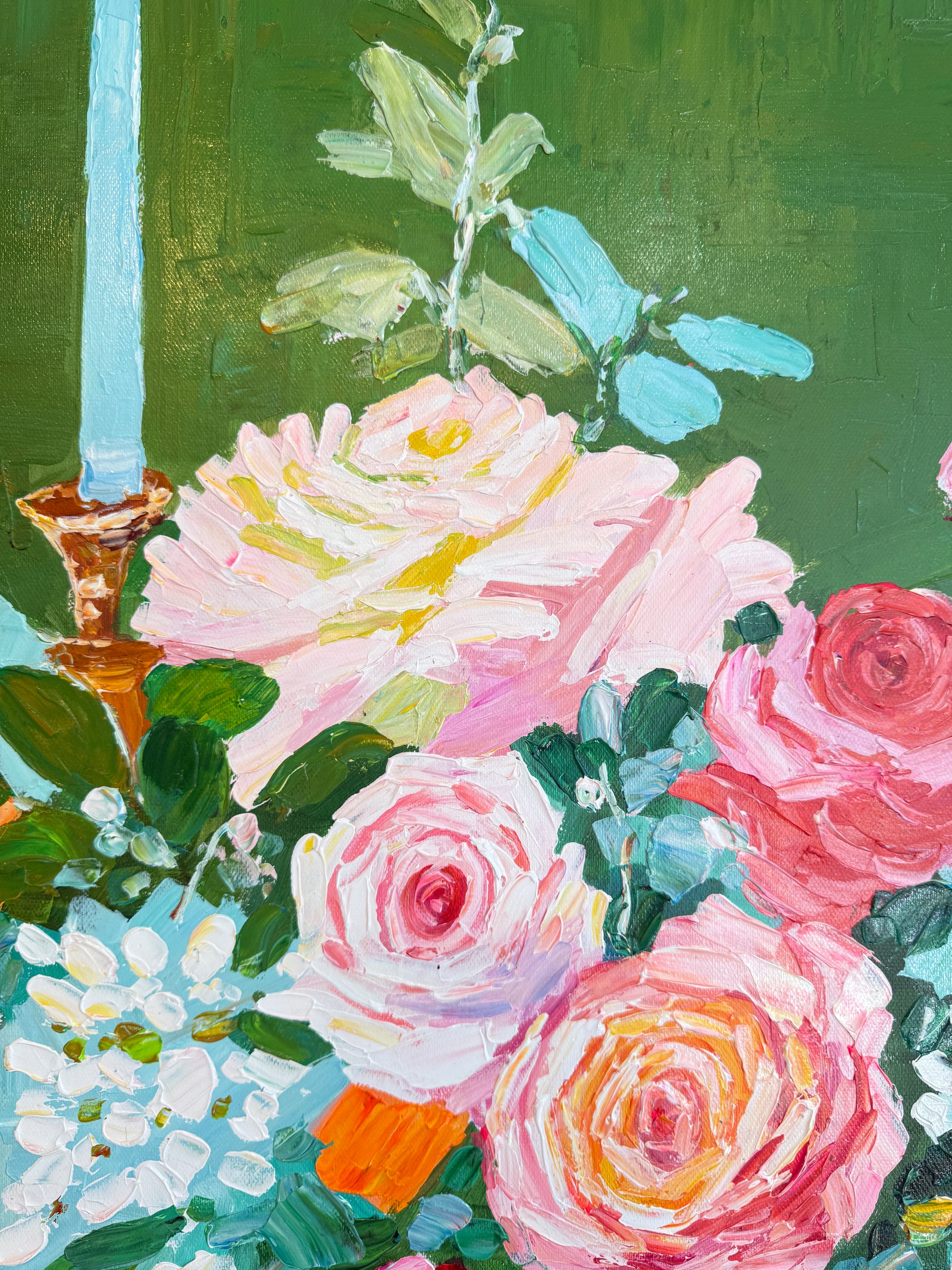 Through bold brushwork and thick, sculptural layers of oil paint, she captures the essence of fleeting moments — the gleam of cutlery, the spill of wine, the quiet aftermath of a gathering. This series diverges from her more polished, historically influenced floral still lifes, embracing a raw, tactile approach that elevates the ordinary into the extraordinary.