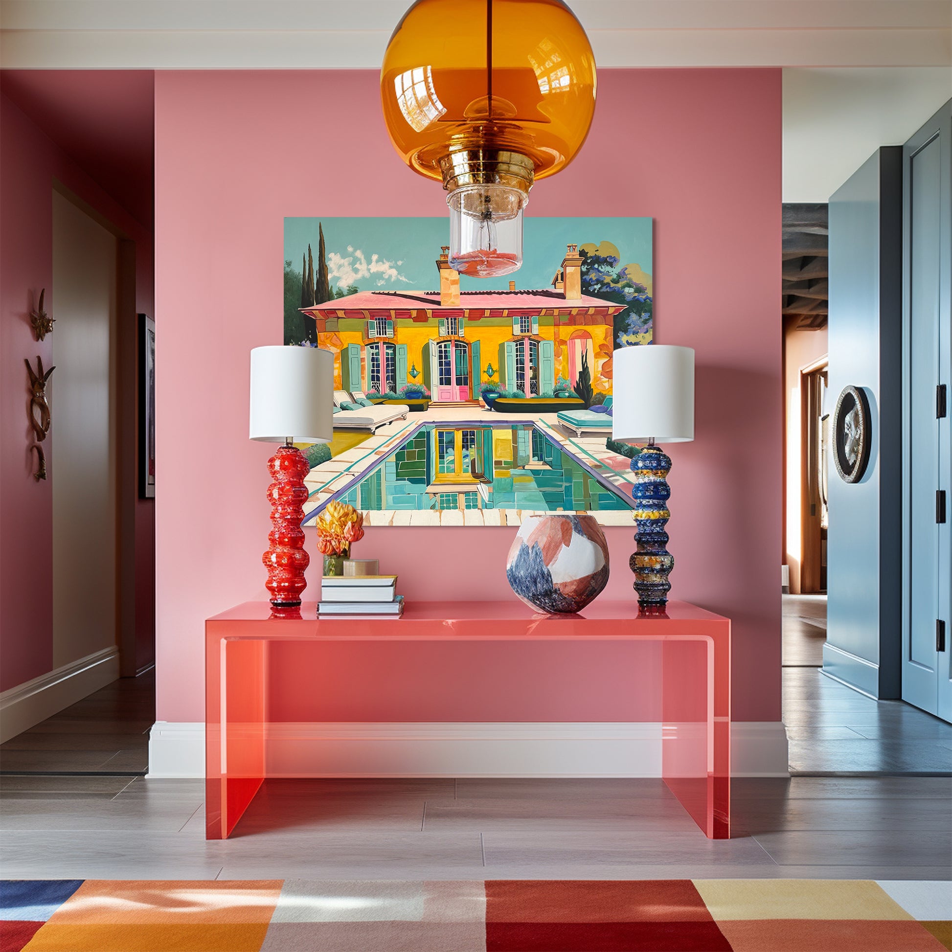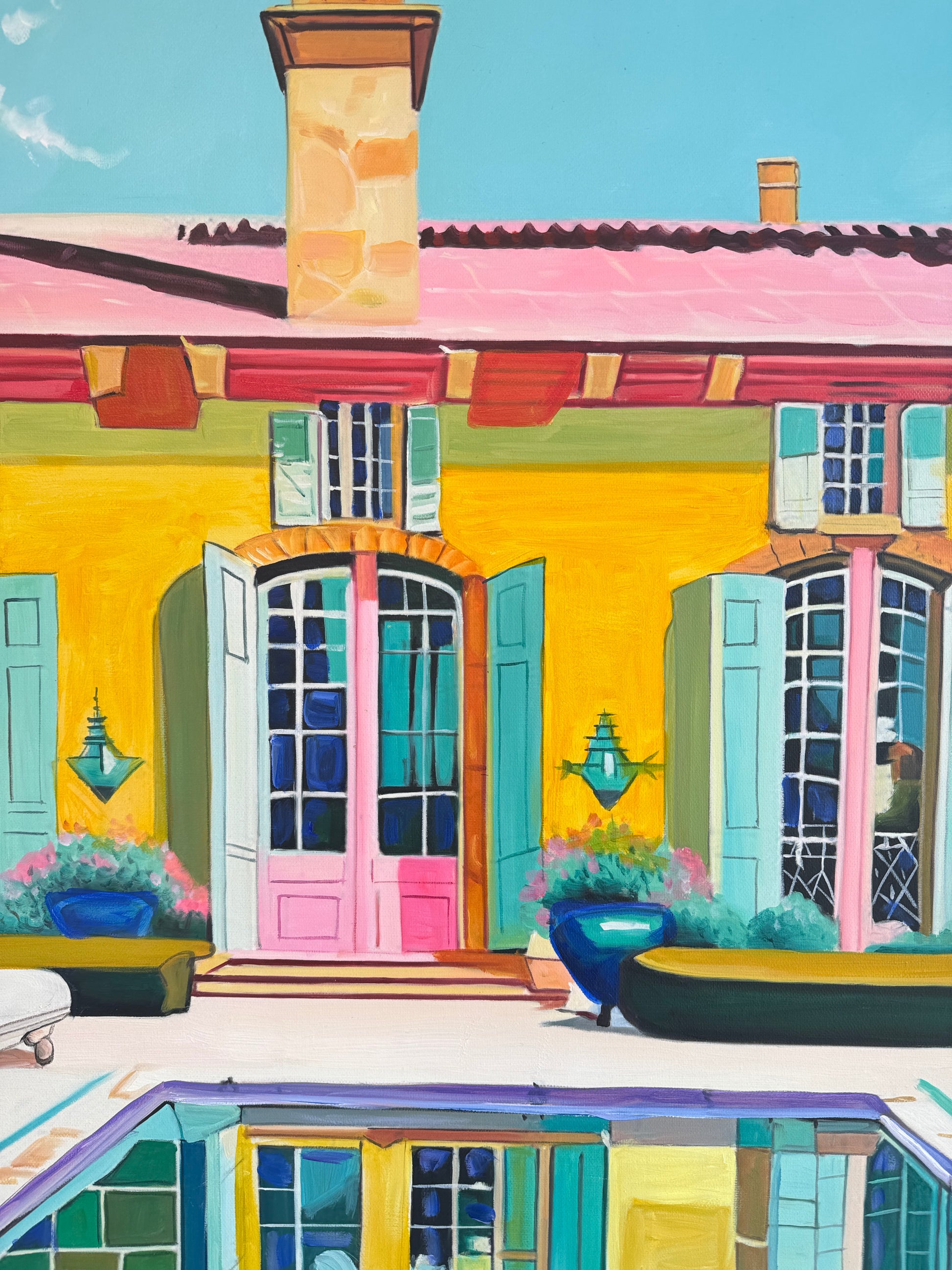 In essence, Lilly Muth's paintings beckon us to venture into a different world—one where architecture, pools, geometry, nature, and a kaleidoscope of colors converge to create a captivating dreamscape that transcends the ordinary and invites us to explore the boundless realms of artistic fantasy.
