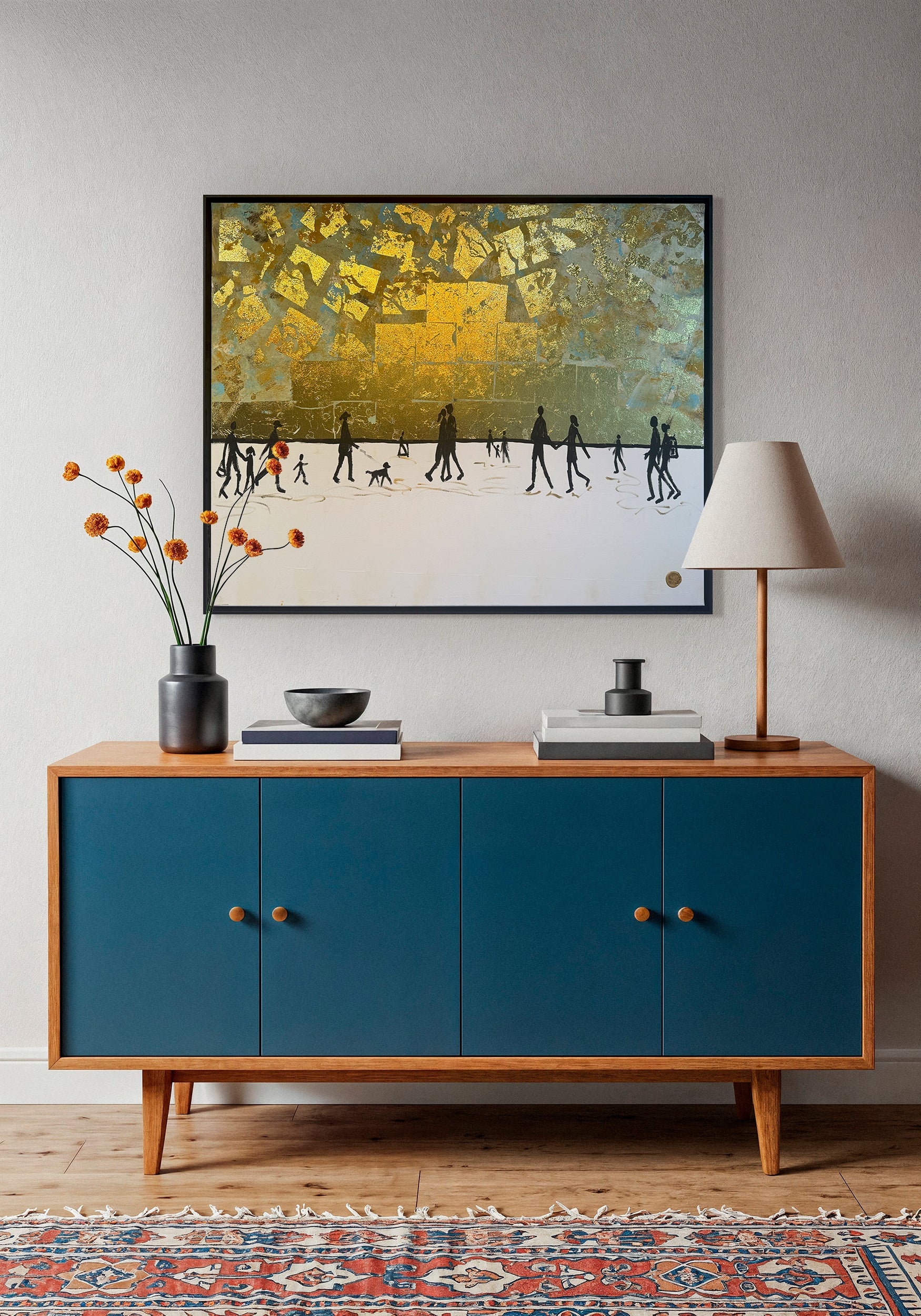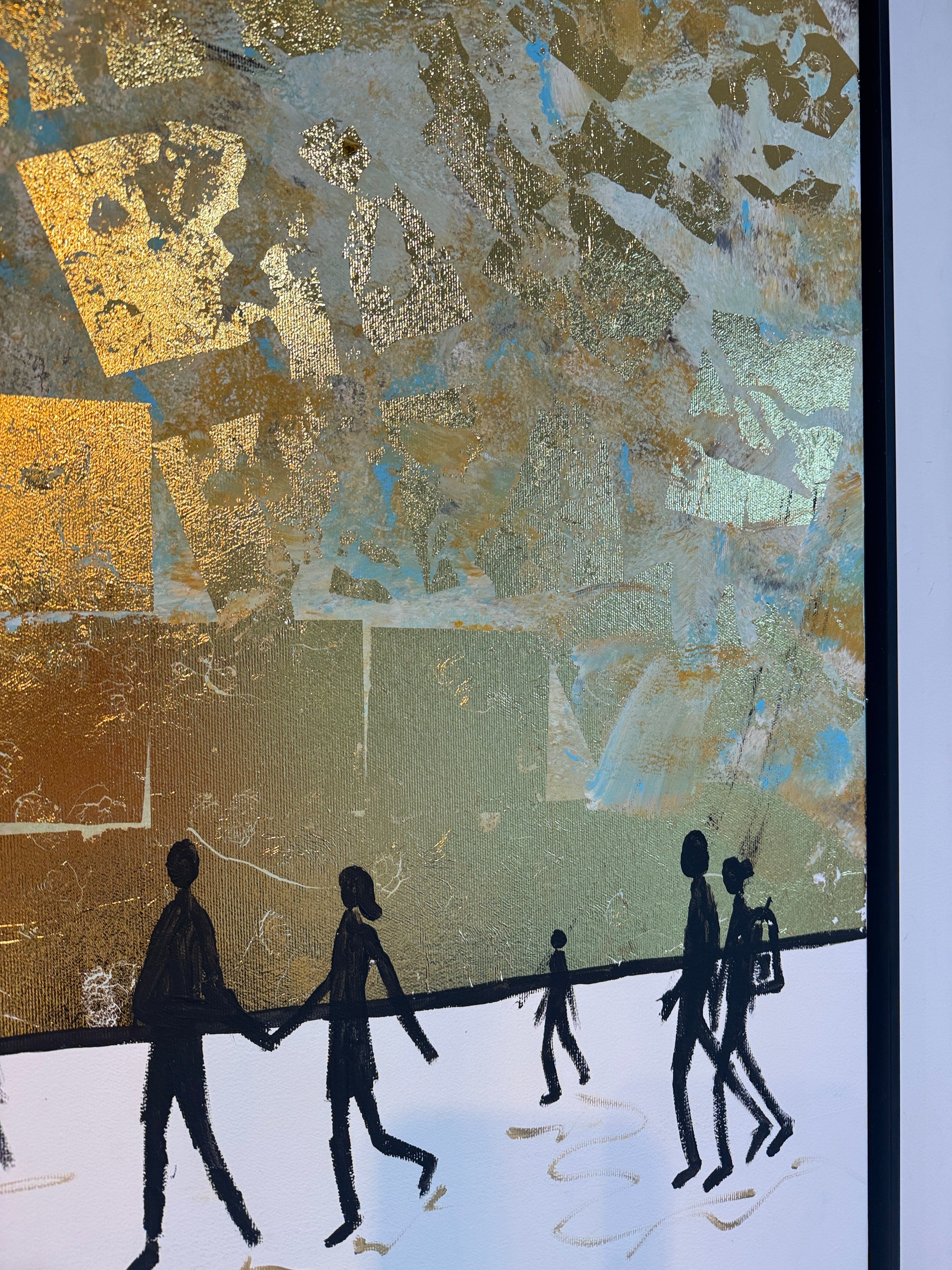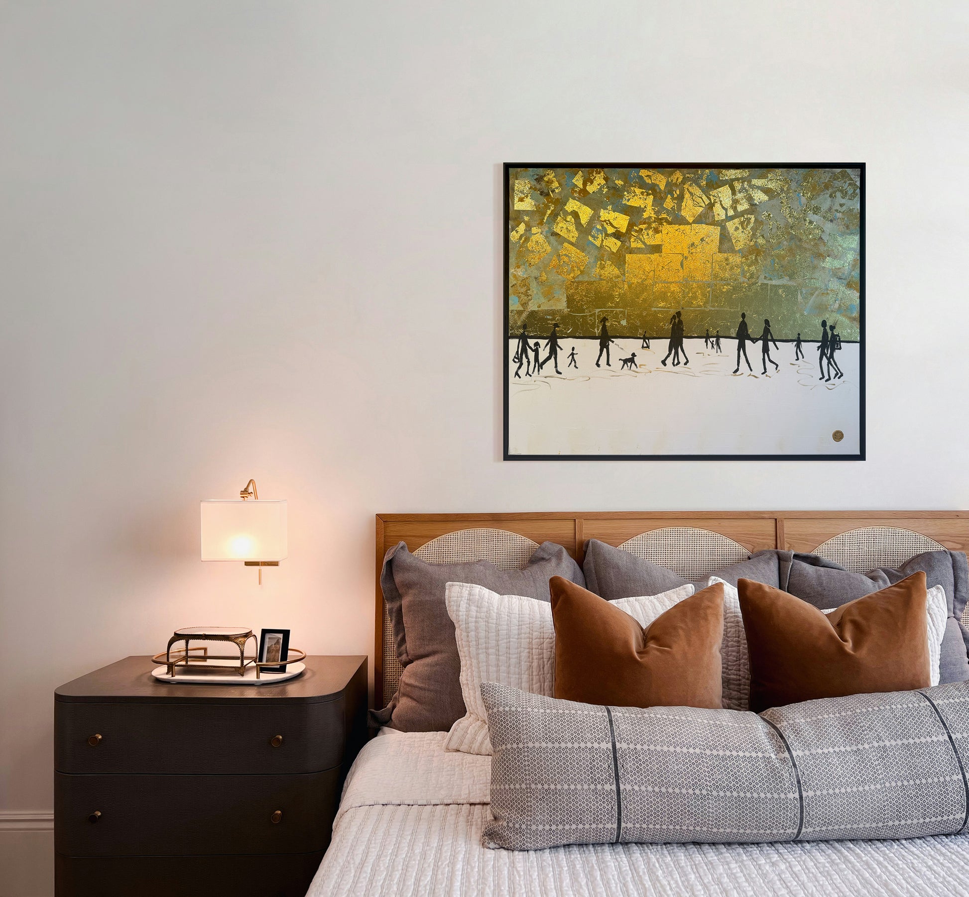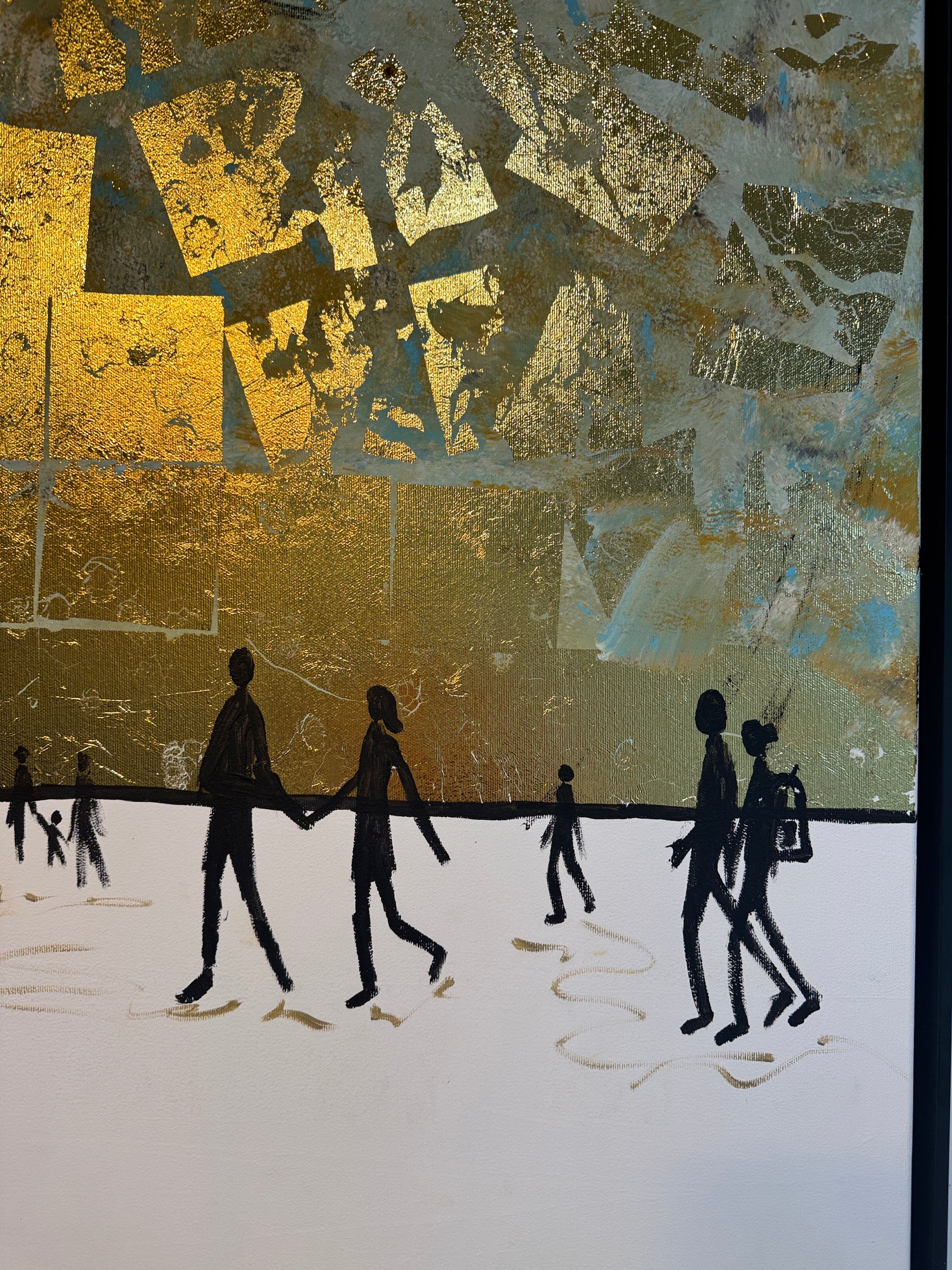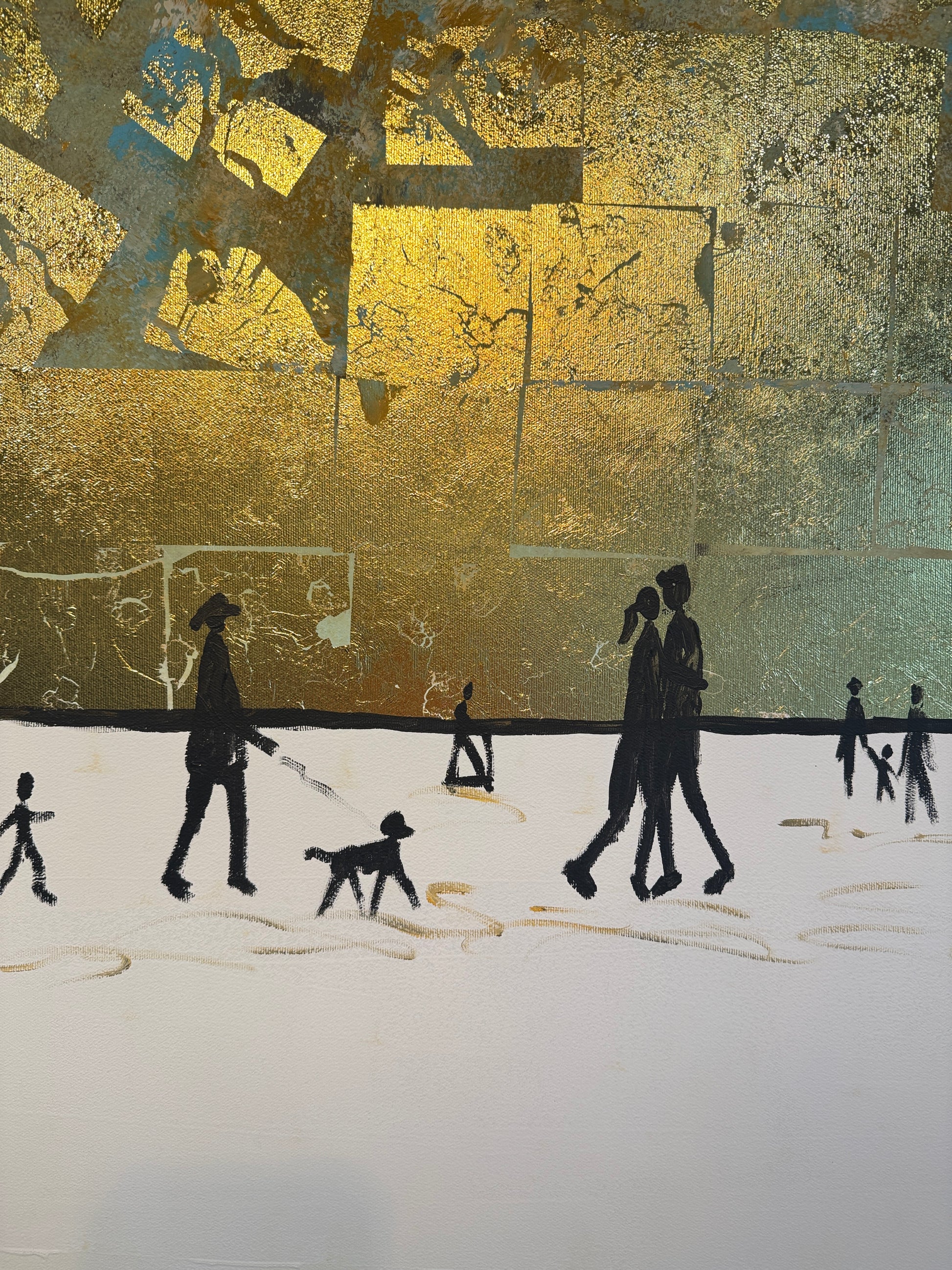 The gold changes depending on the light and makes for a warm contrast to the black, white and grey. Elegant in their color scheme Hormel's paintings are beautifully contemporary and unobtrusive, yet full of life, happiness and details.