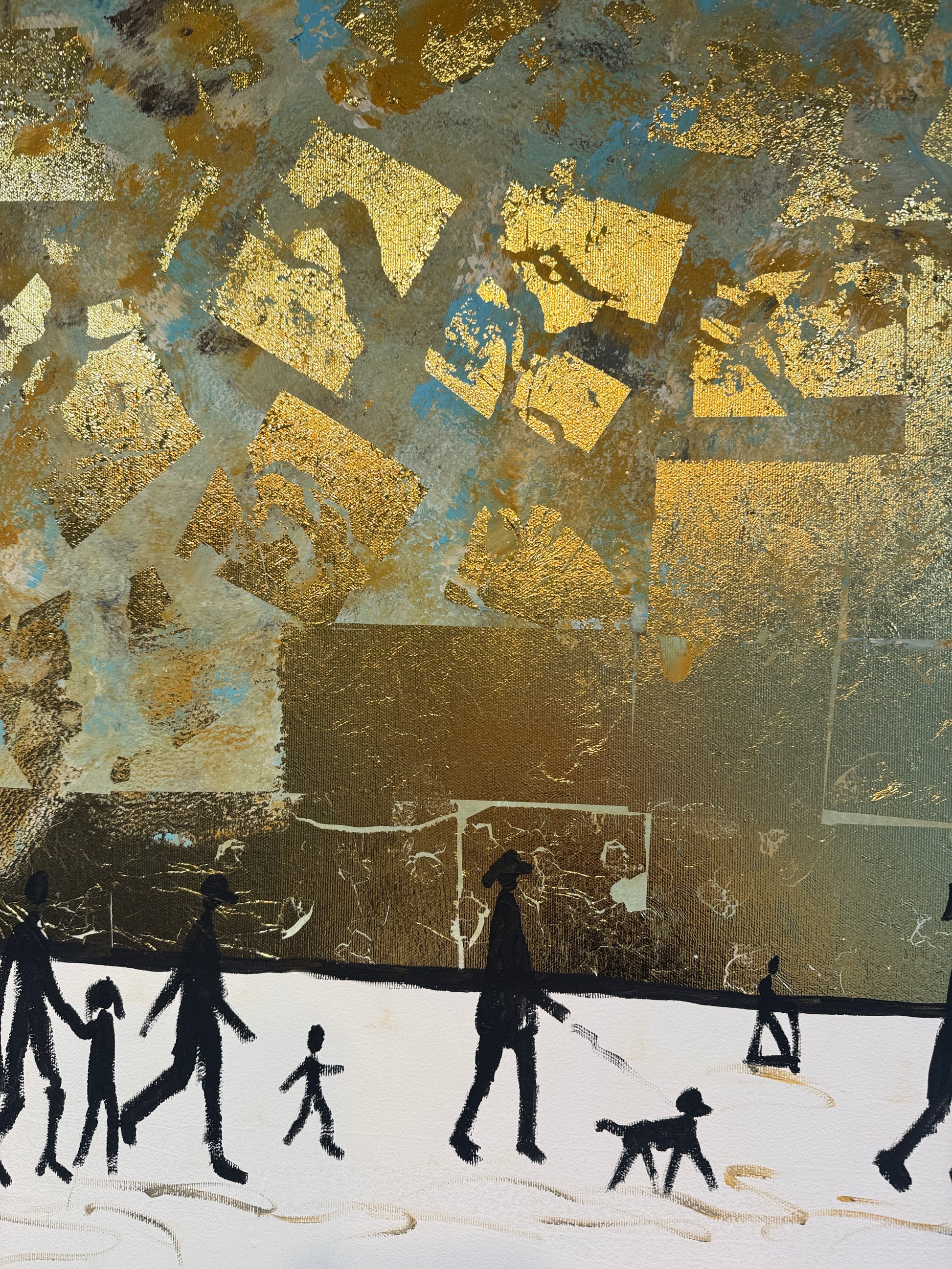 Katharina Hormel paints minimalistic every day scenes of life. The people she portrays are out and about going about their daily life, enjoying a walk in the park, cycling, playing football etc.